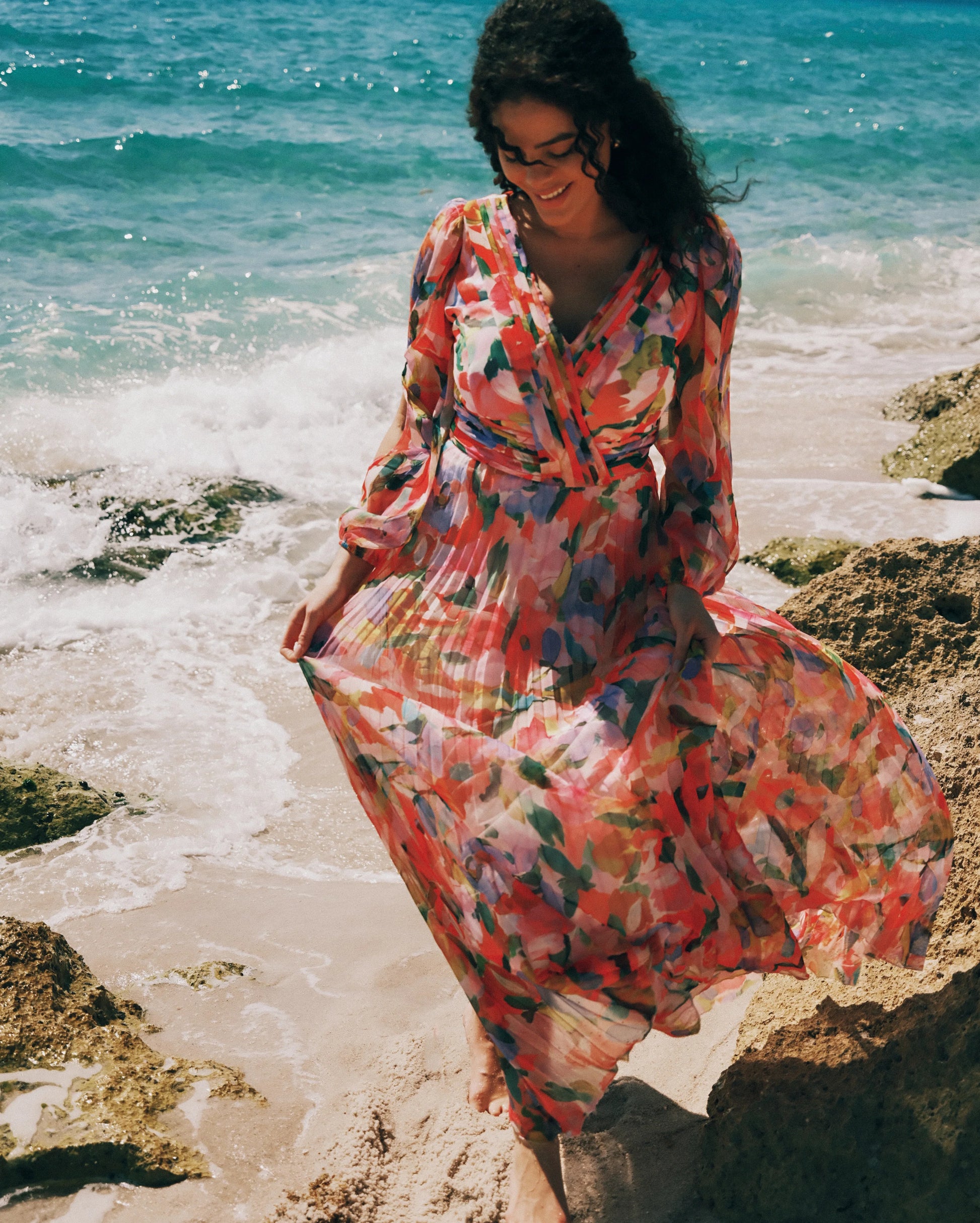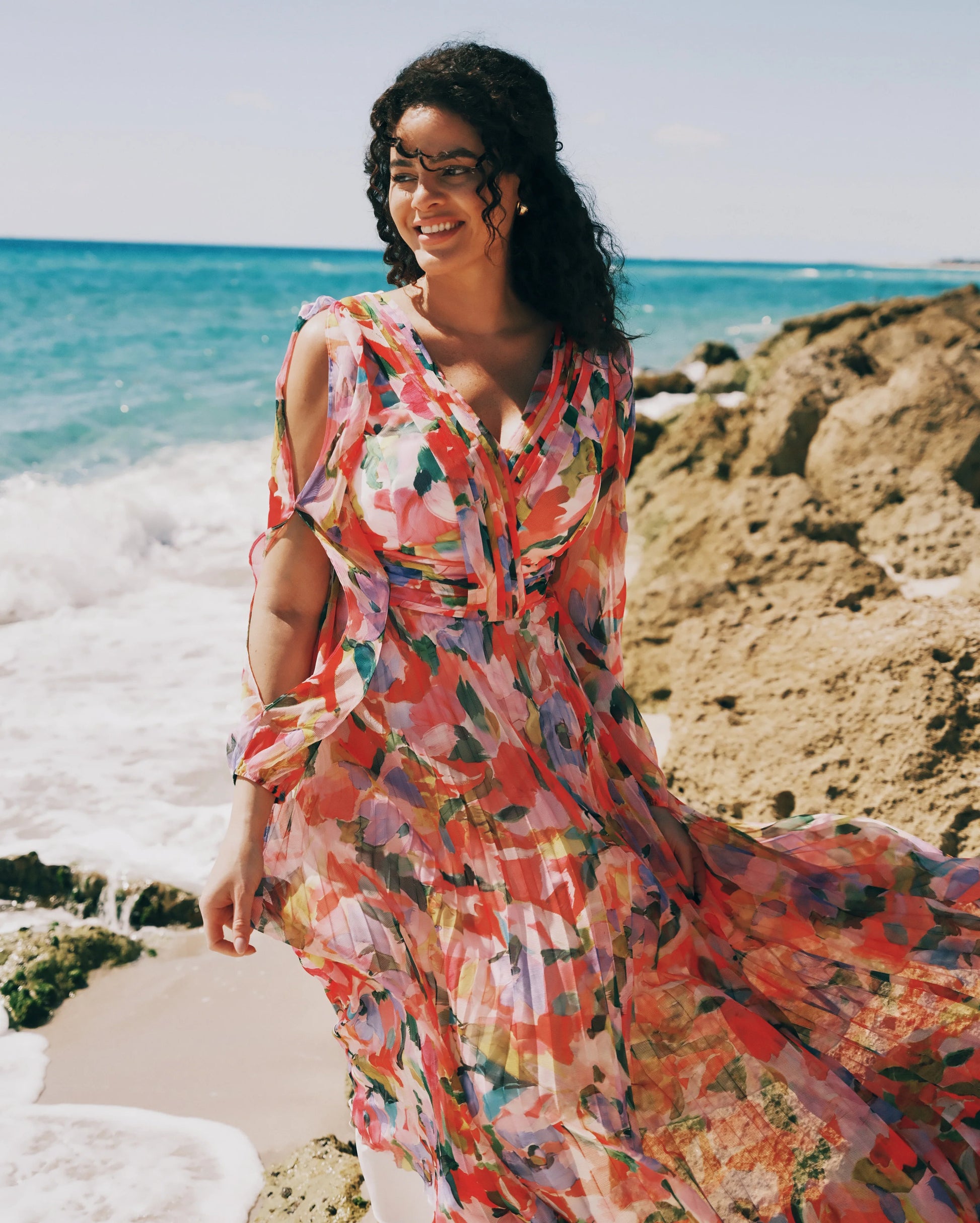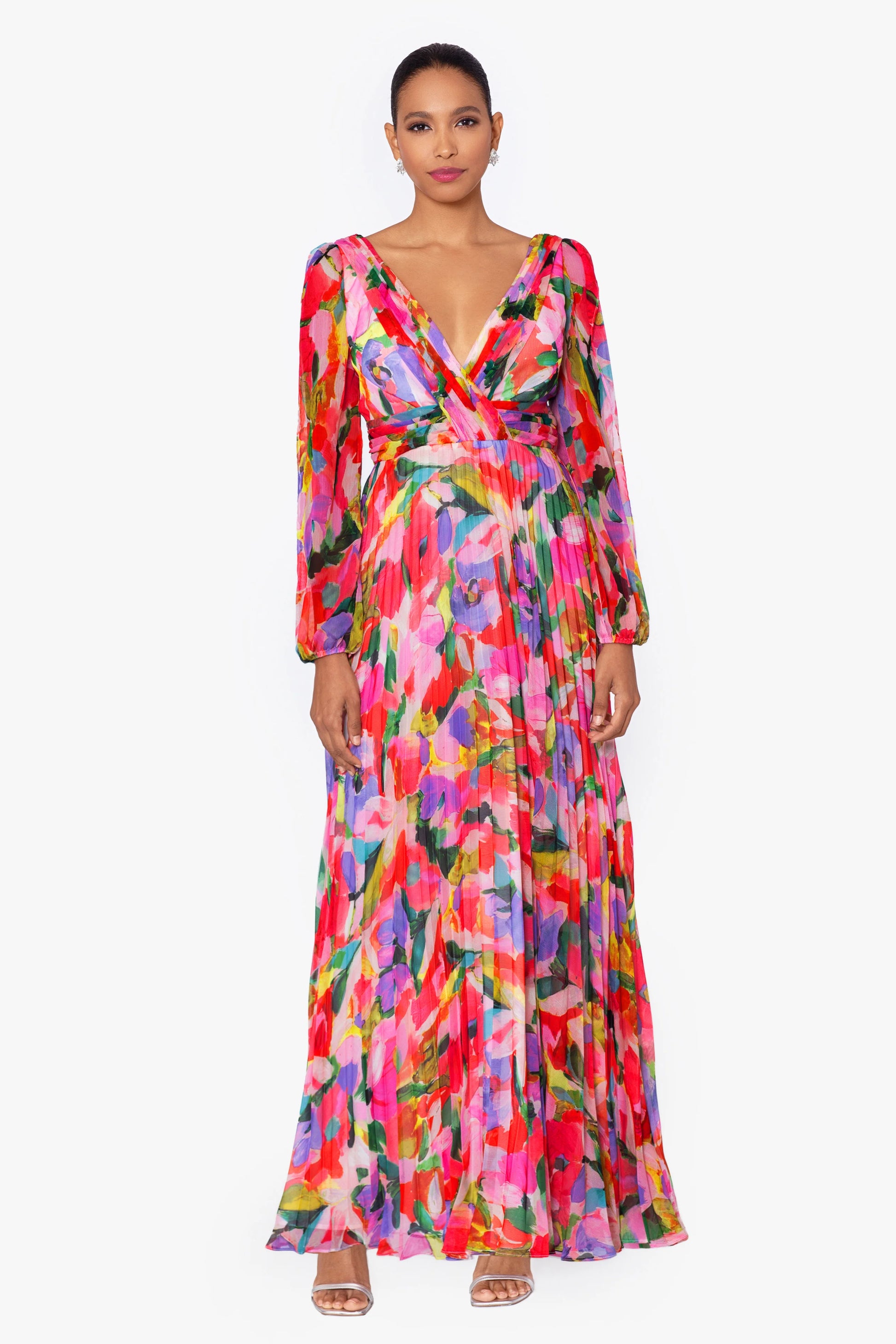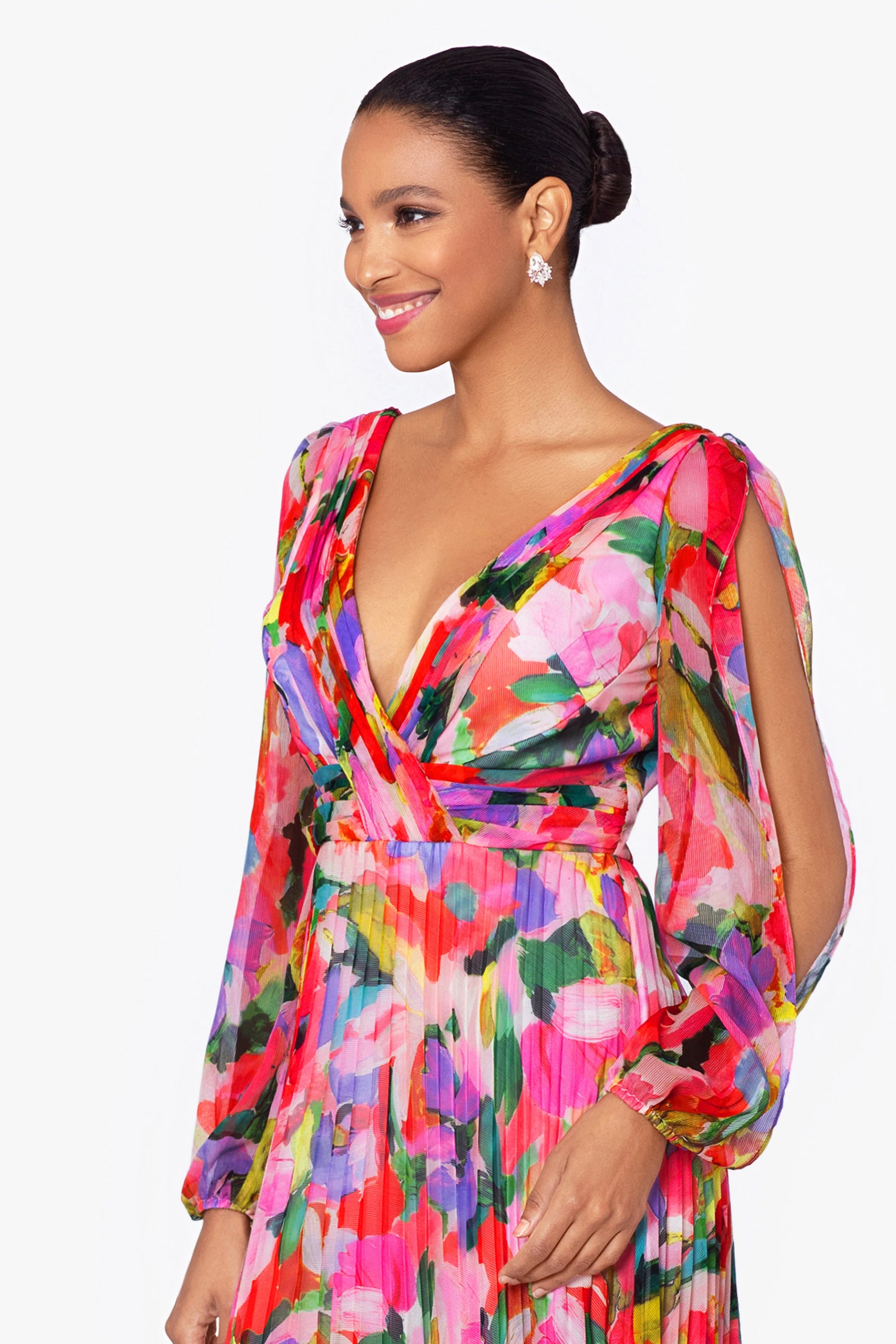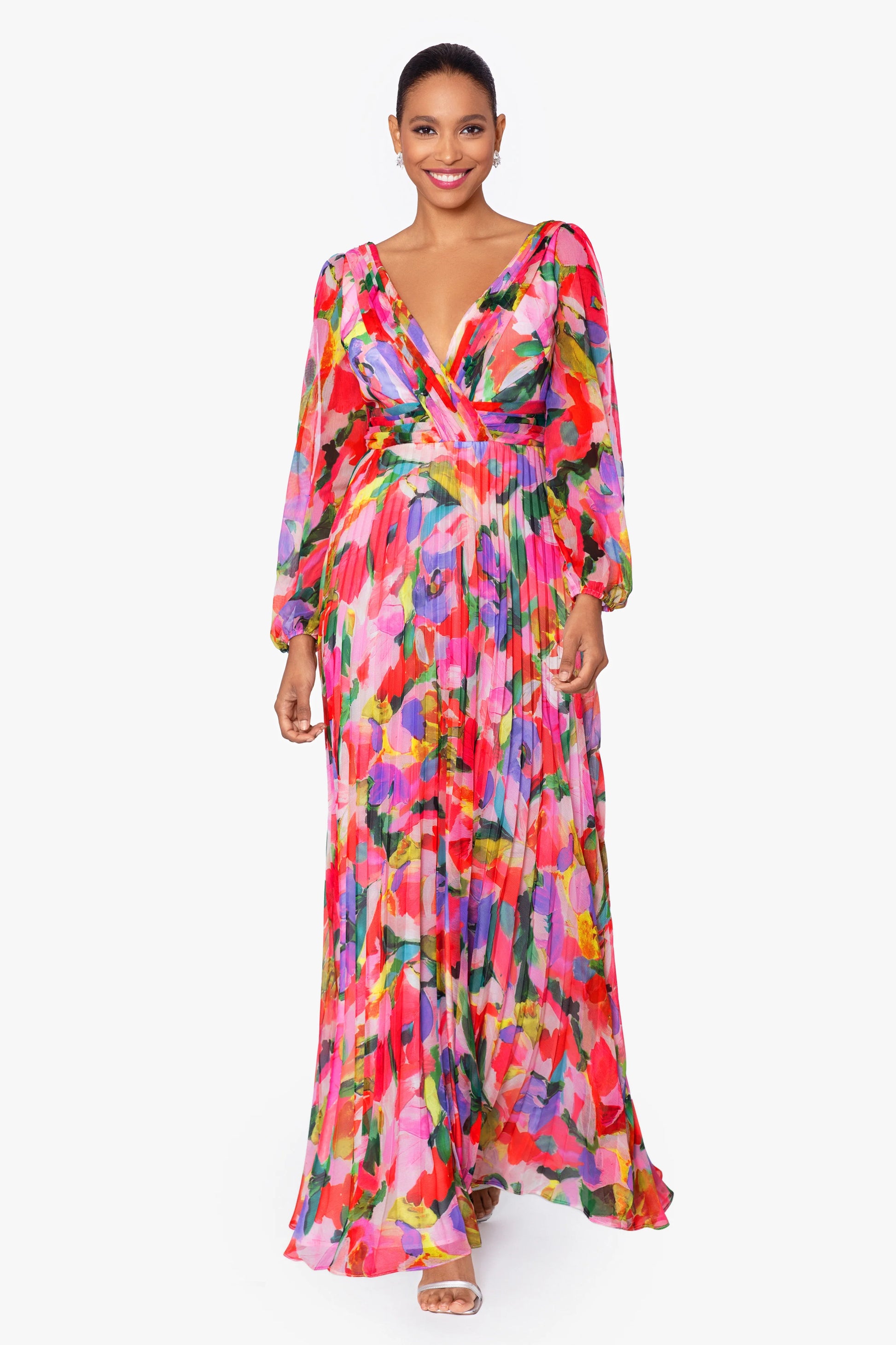 "Amber" Long Sleeve Chiffon Print Floor Length Dress