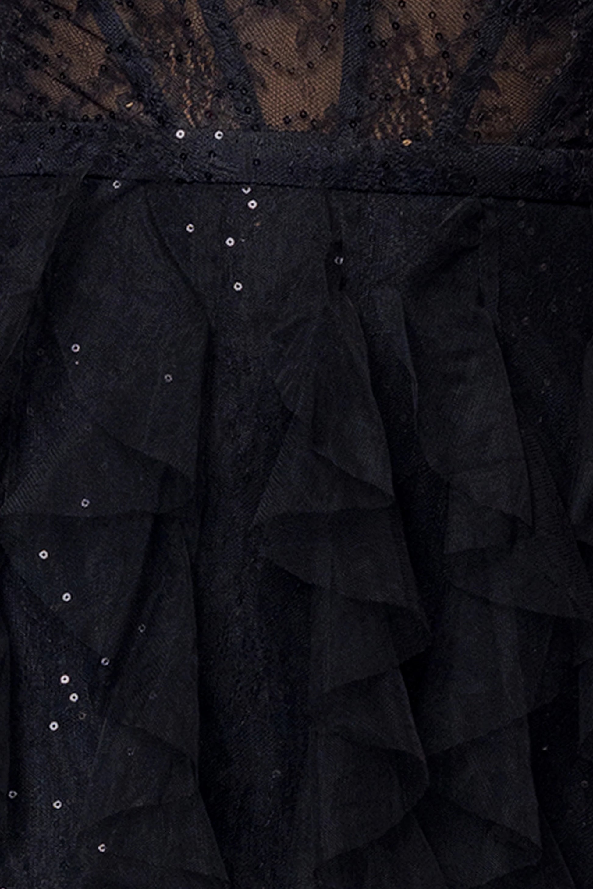 "Angelina" Long Strapless Mesh Floor Length Ruffle Dress