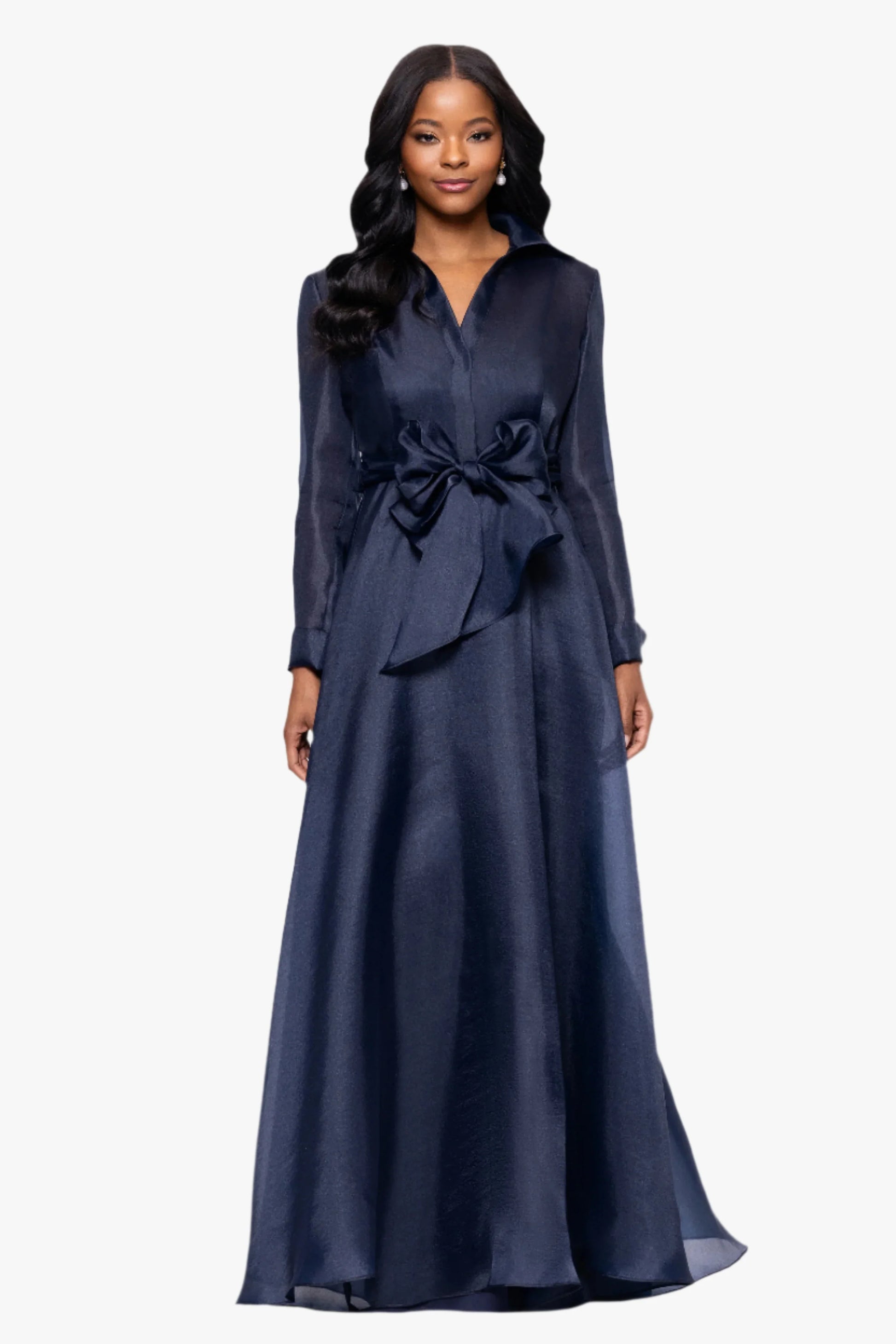 "Athena" Organza Long Sleeve Collared Floor Length Dress