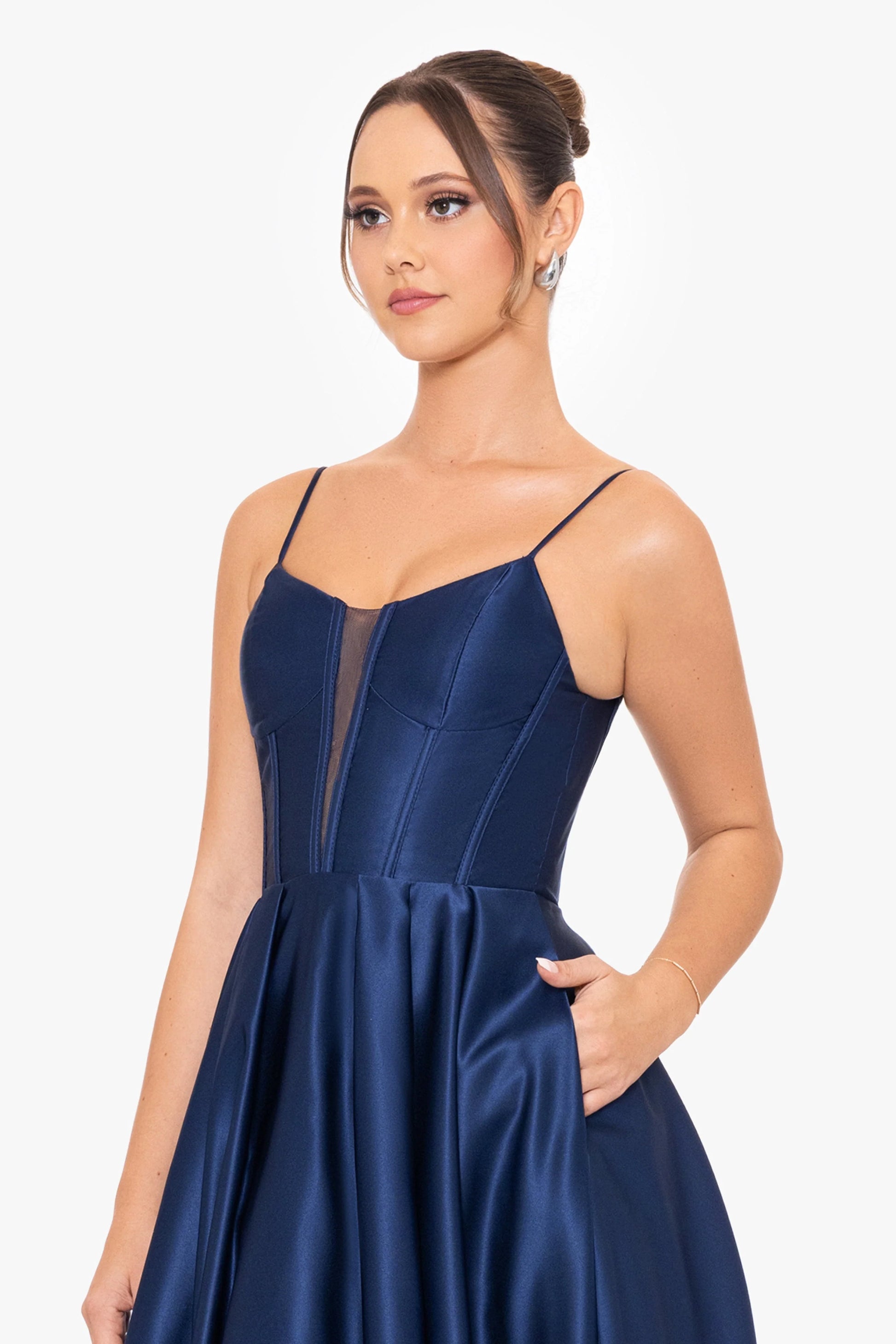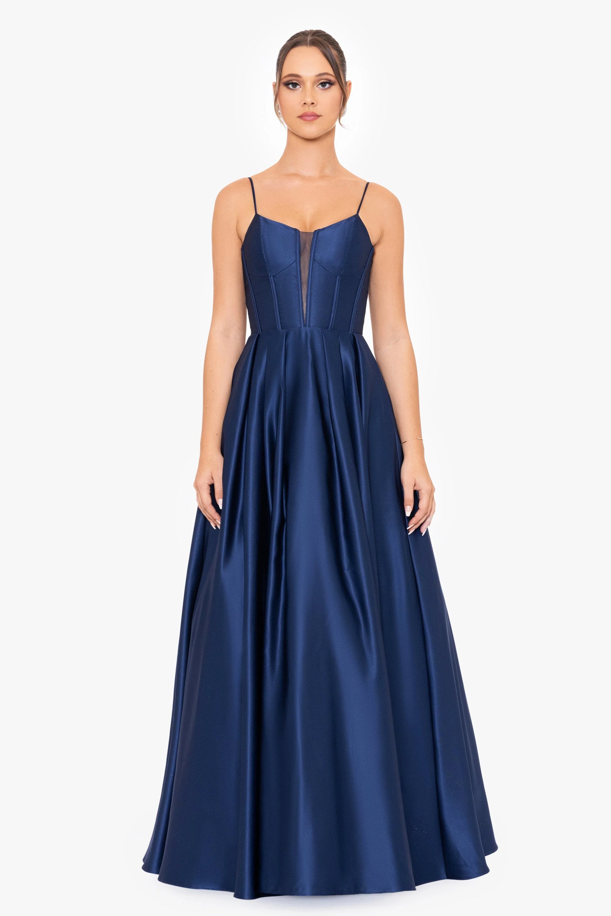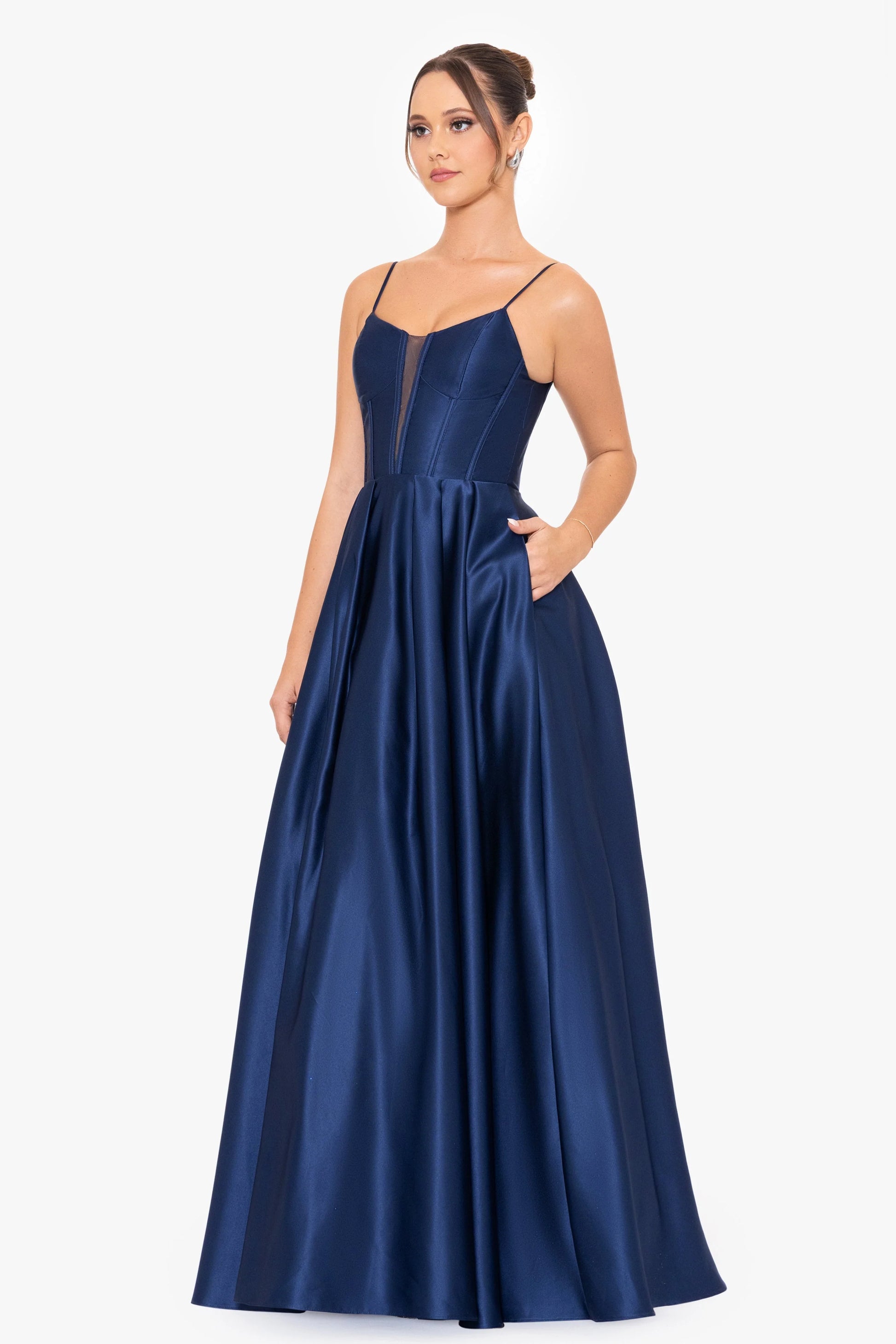 Blondie Nites "Carol" Long Satin Mesh Insert Ballgown