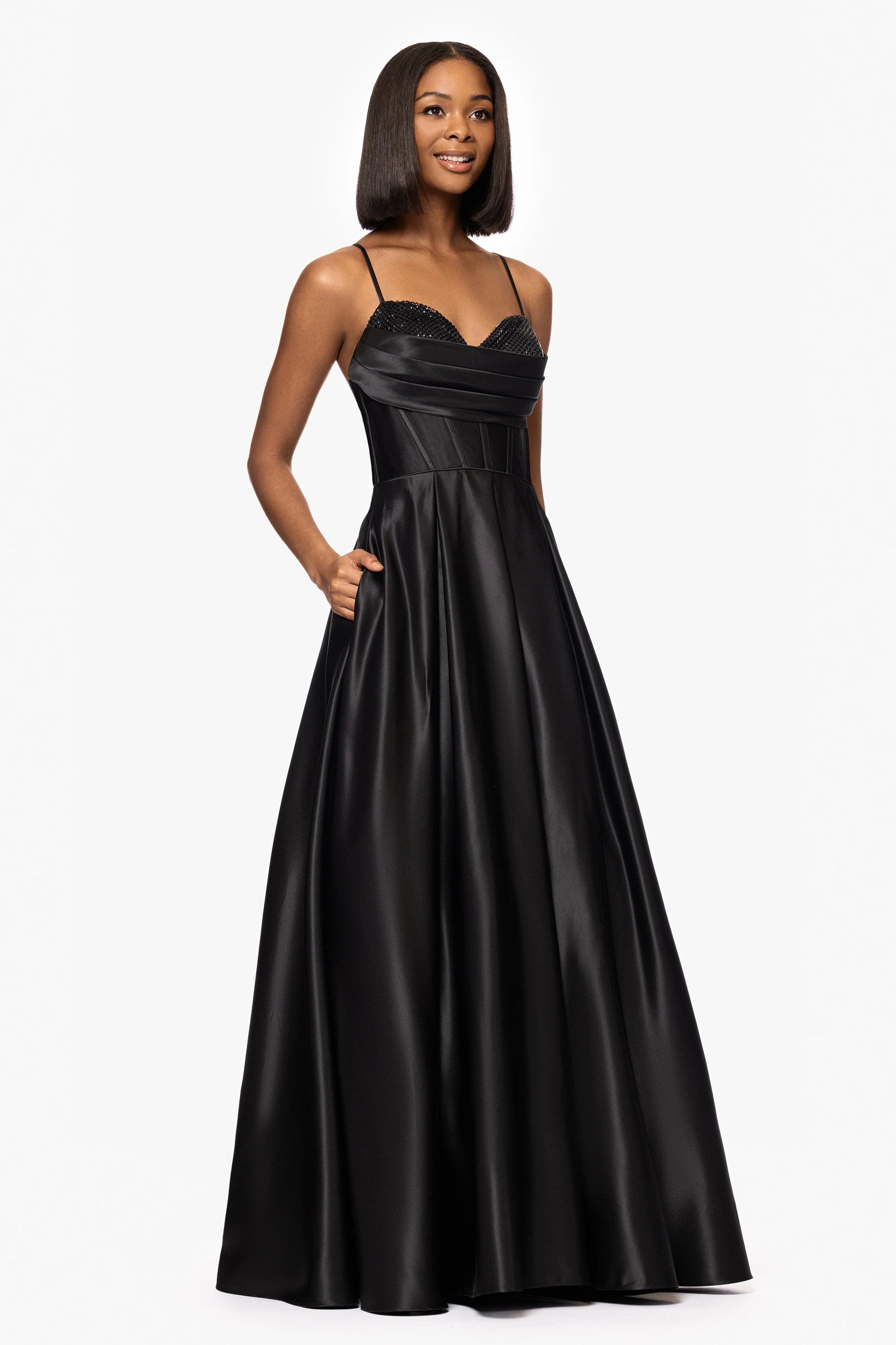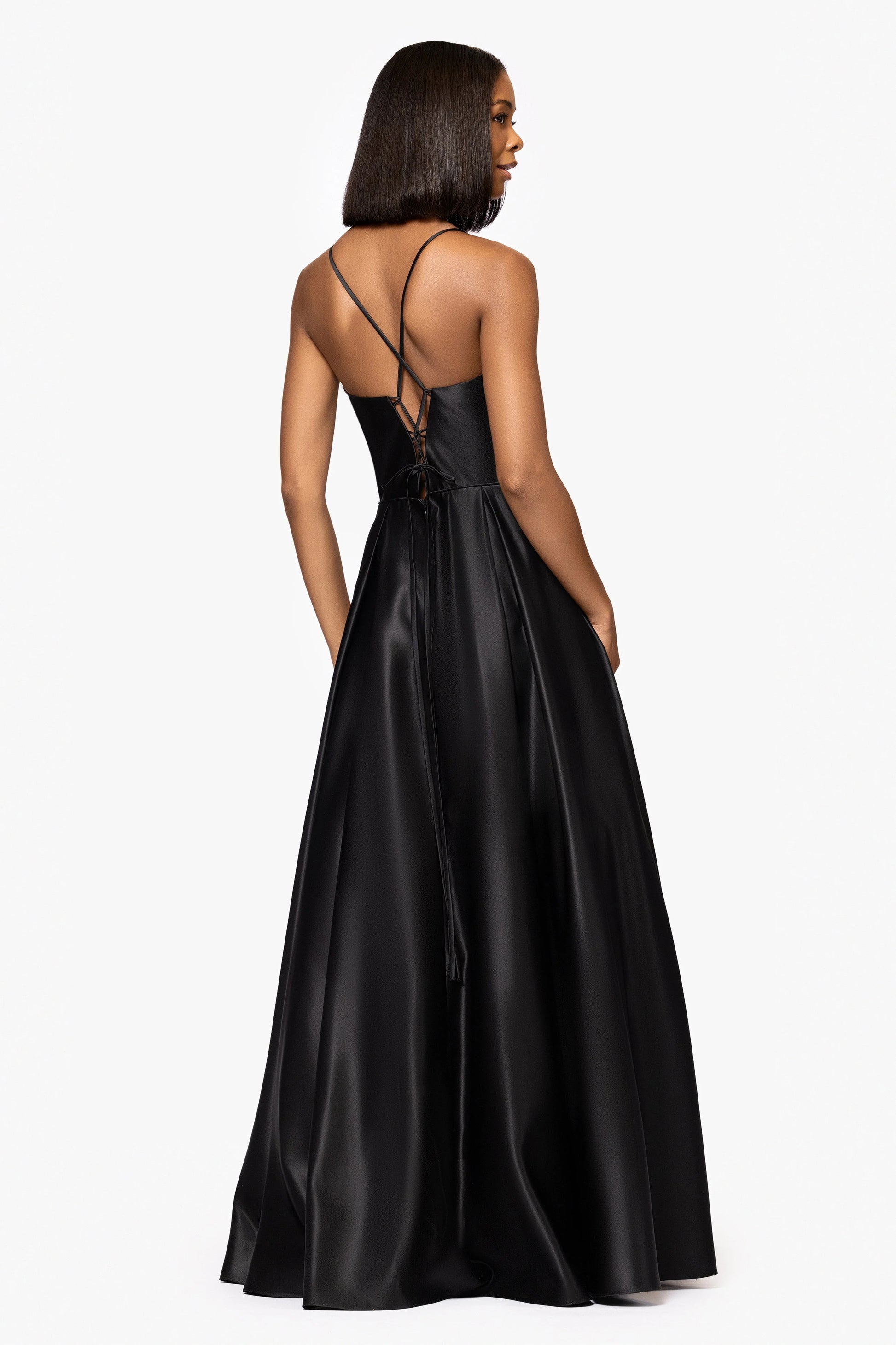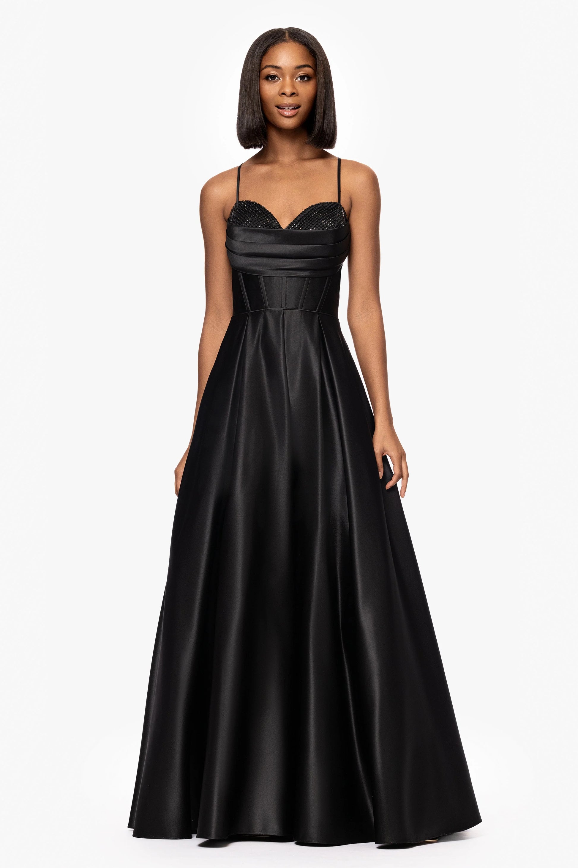 Blondie Nites "Leah" Satin Stone Cowl Neck Floor Length Gown