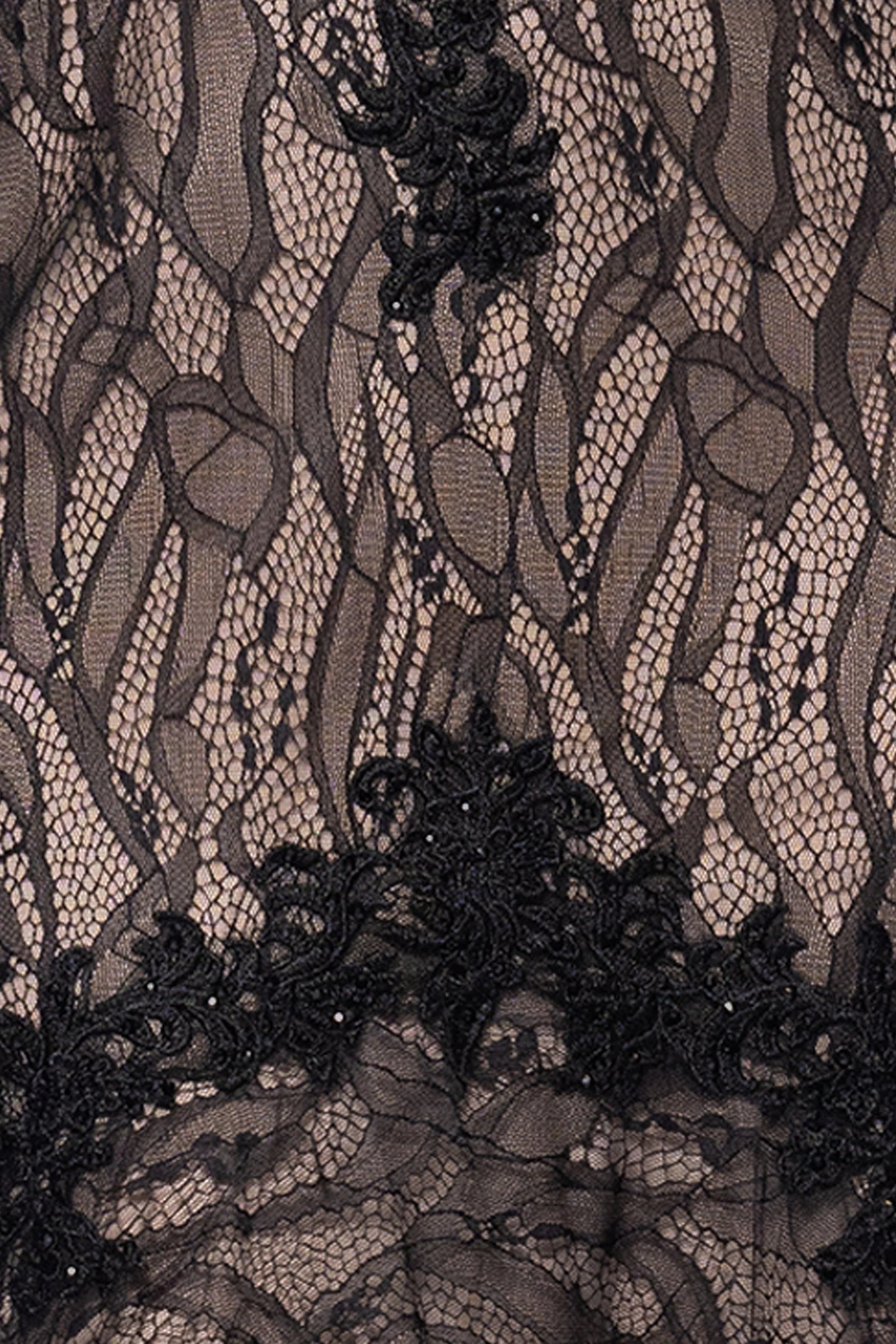 This stunning dress features intricate lace detailing that beautifully contrasts with the nude underlay, creating an elegant yet daring look. The figure-flattering silhouette is accentuated with a mermaid-style bottom for added drama and sophistication. Perfect for formal events, this dress combines boldness with timeless elegance.