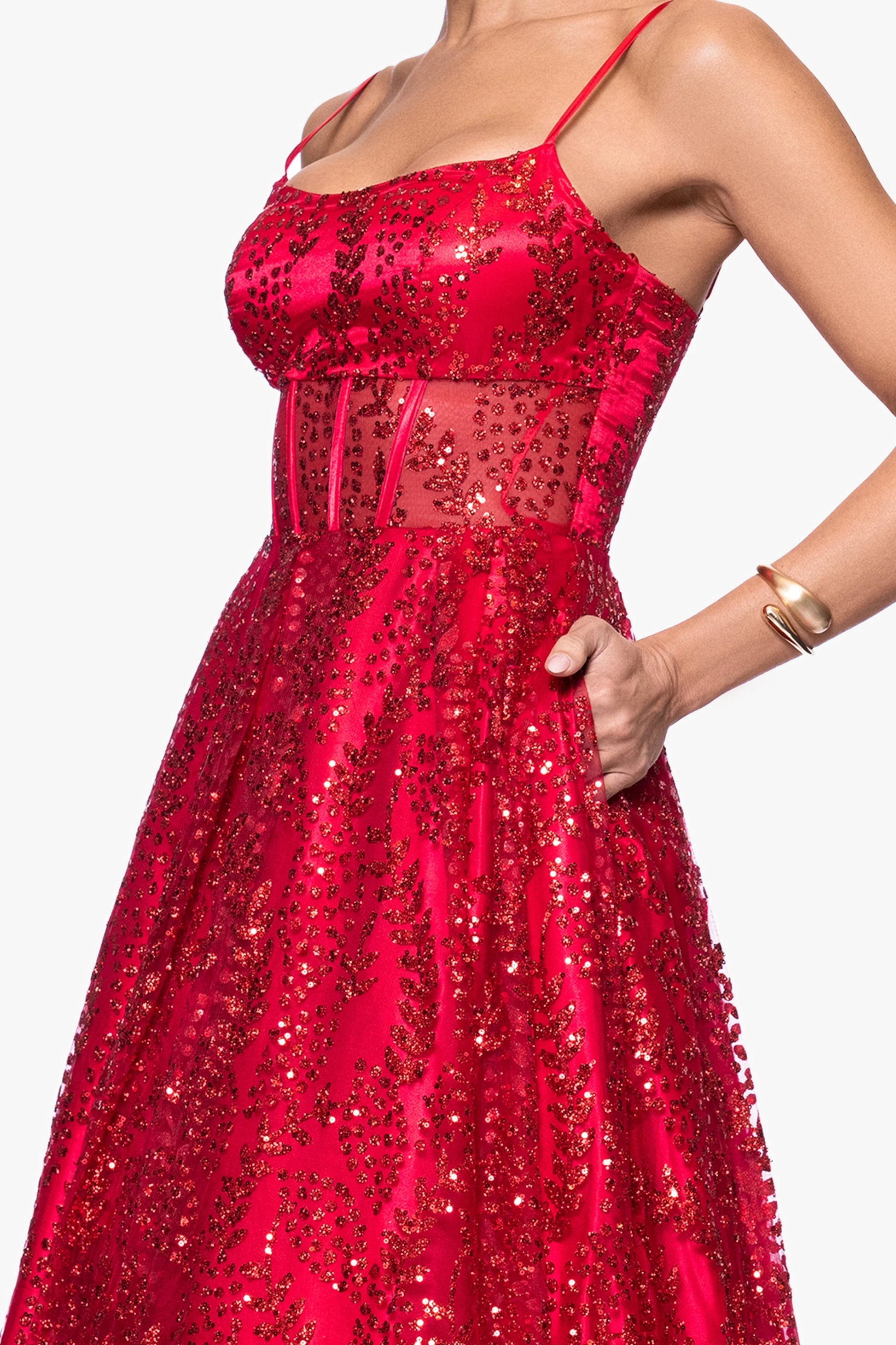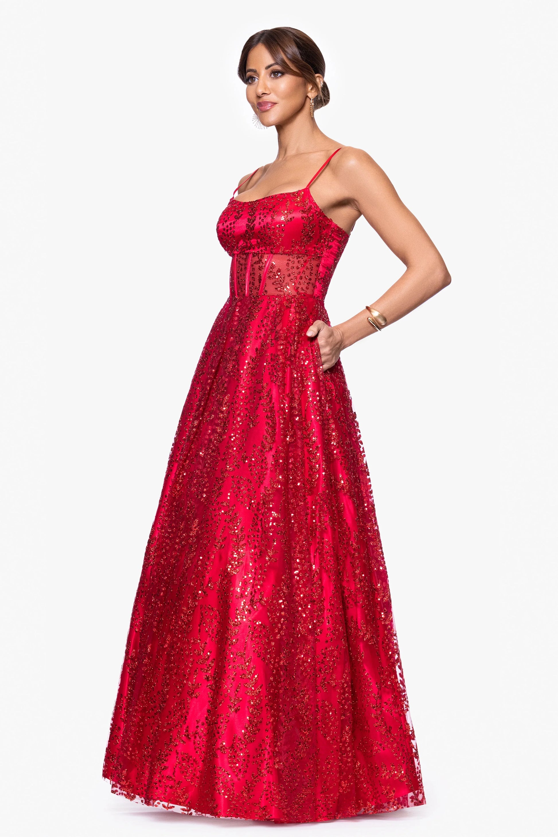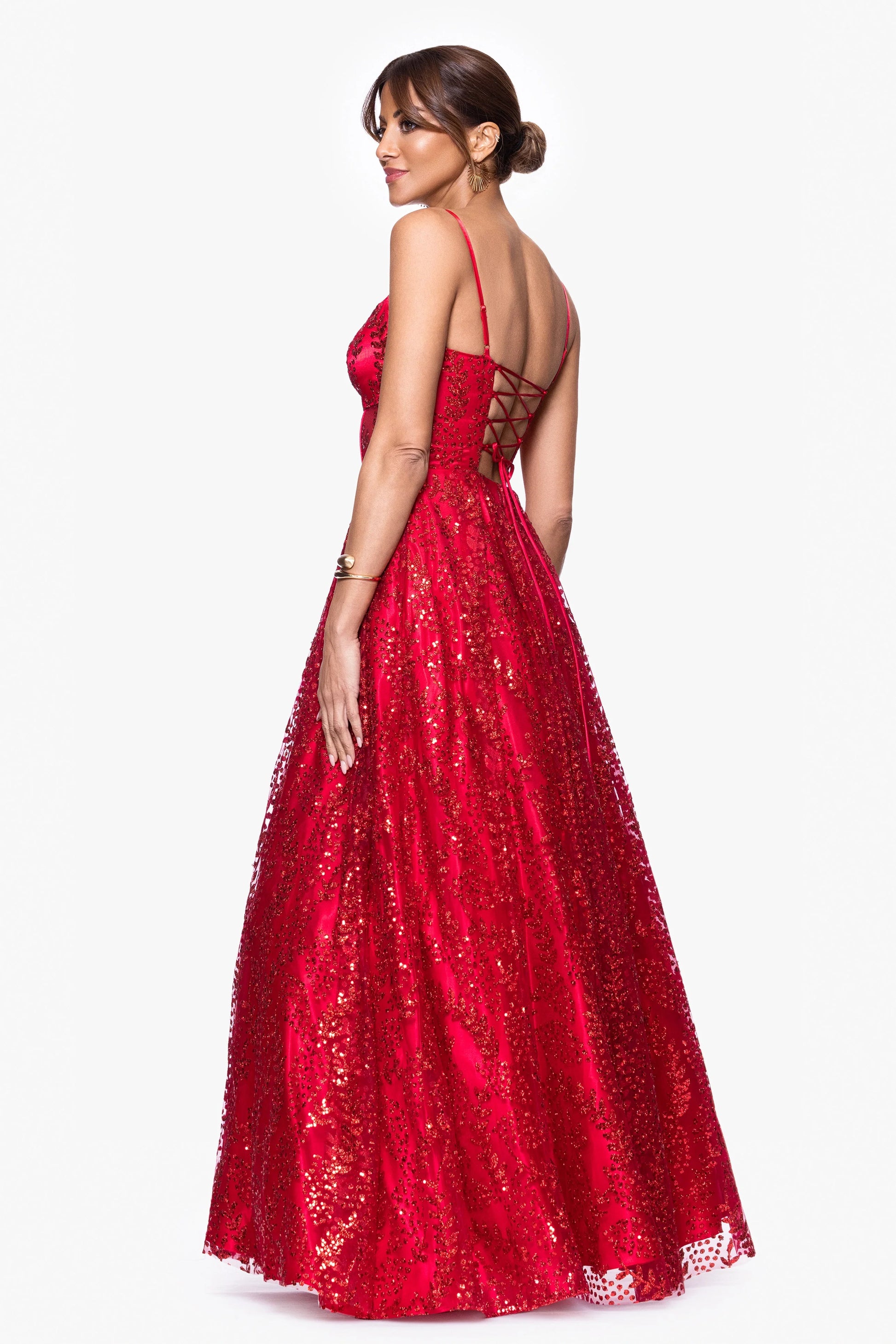 Blondie Nites "Mona" Glitter Illusion Lace Up Floor Length Dress