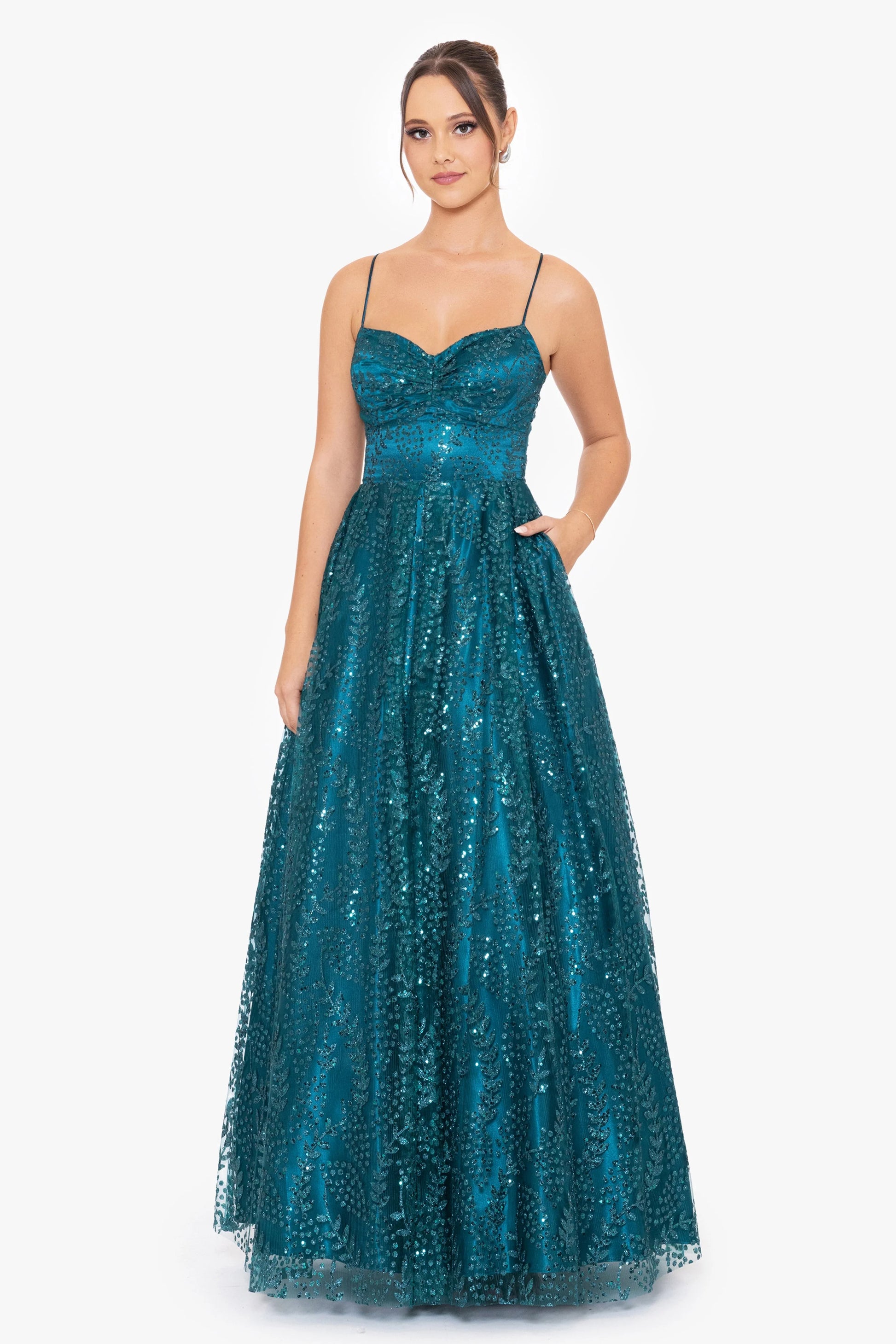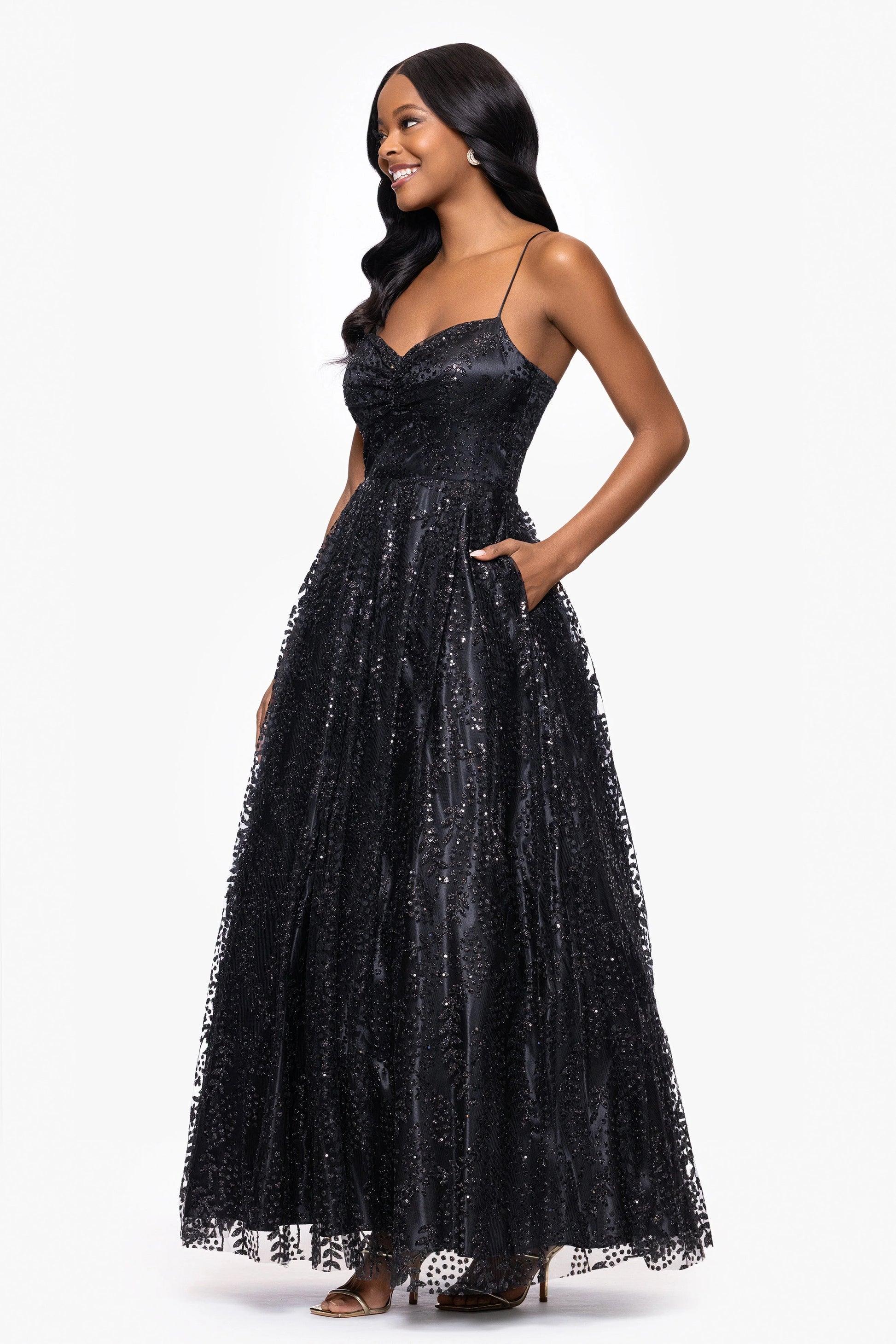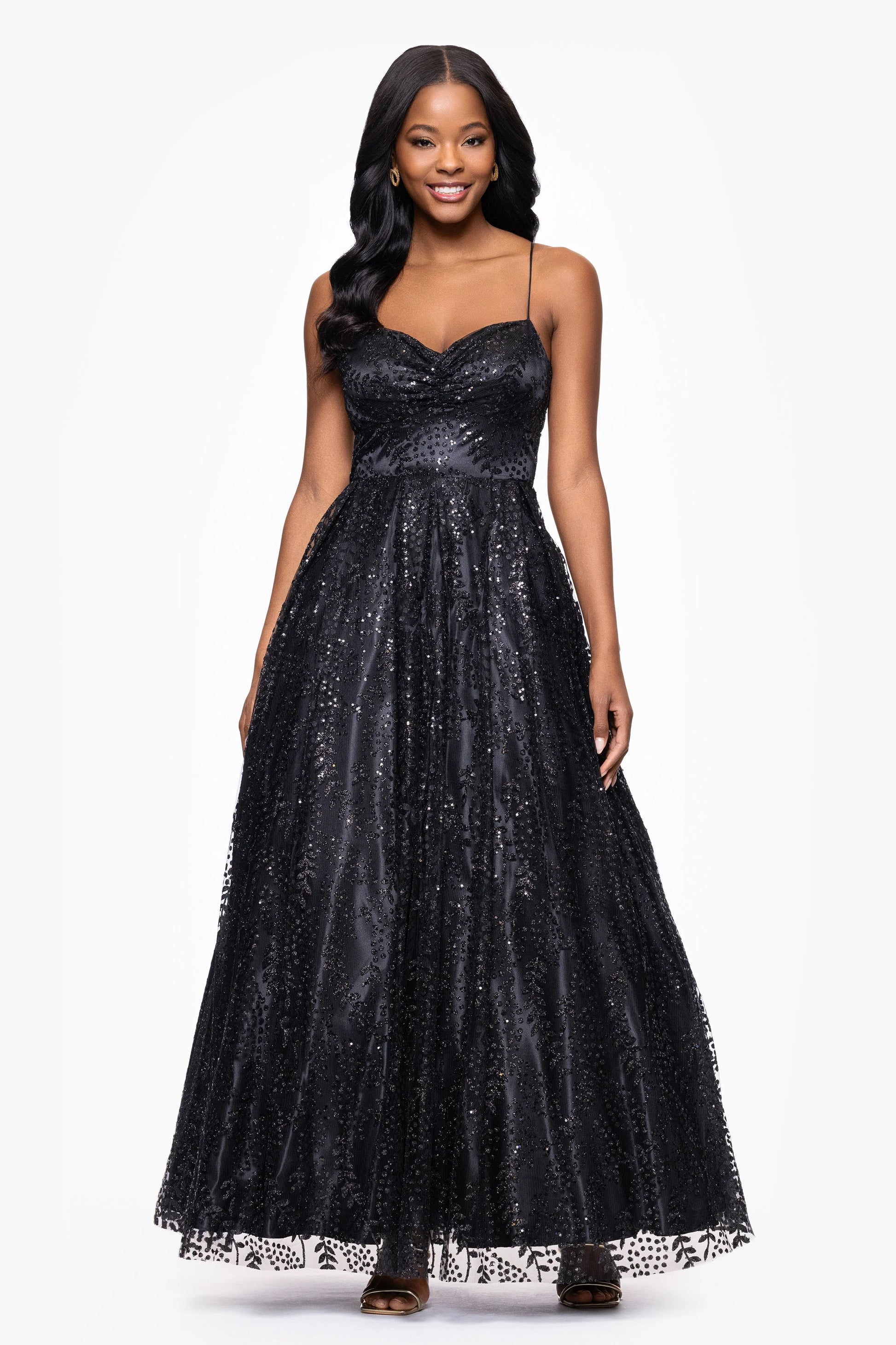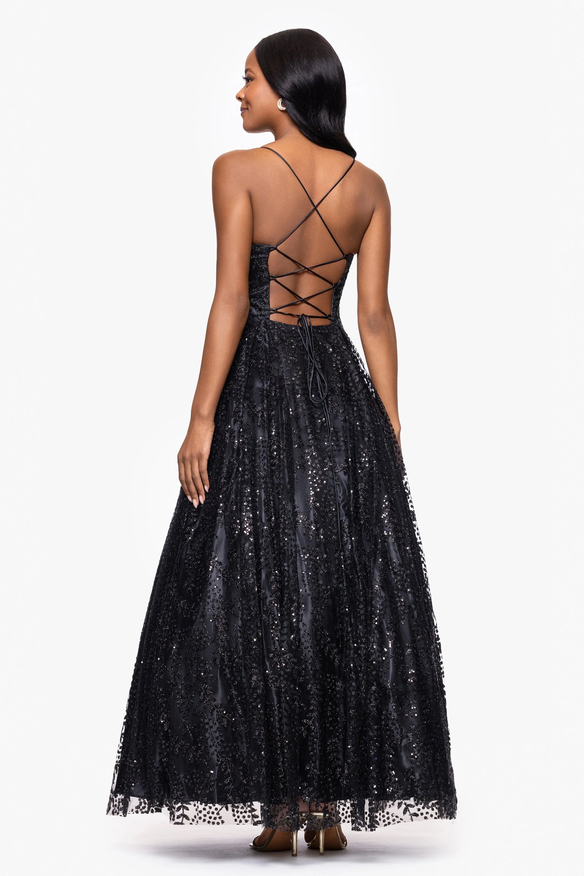 Blondie Nites "Stella" Glitter Pinch Tie Back Ballgown