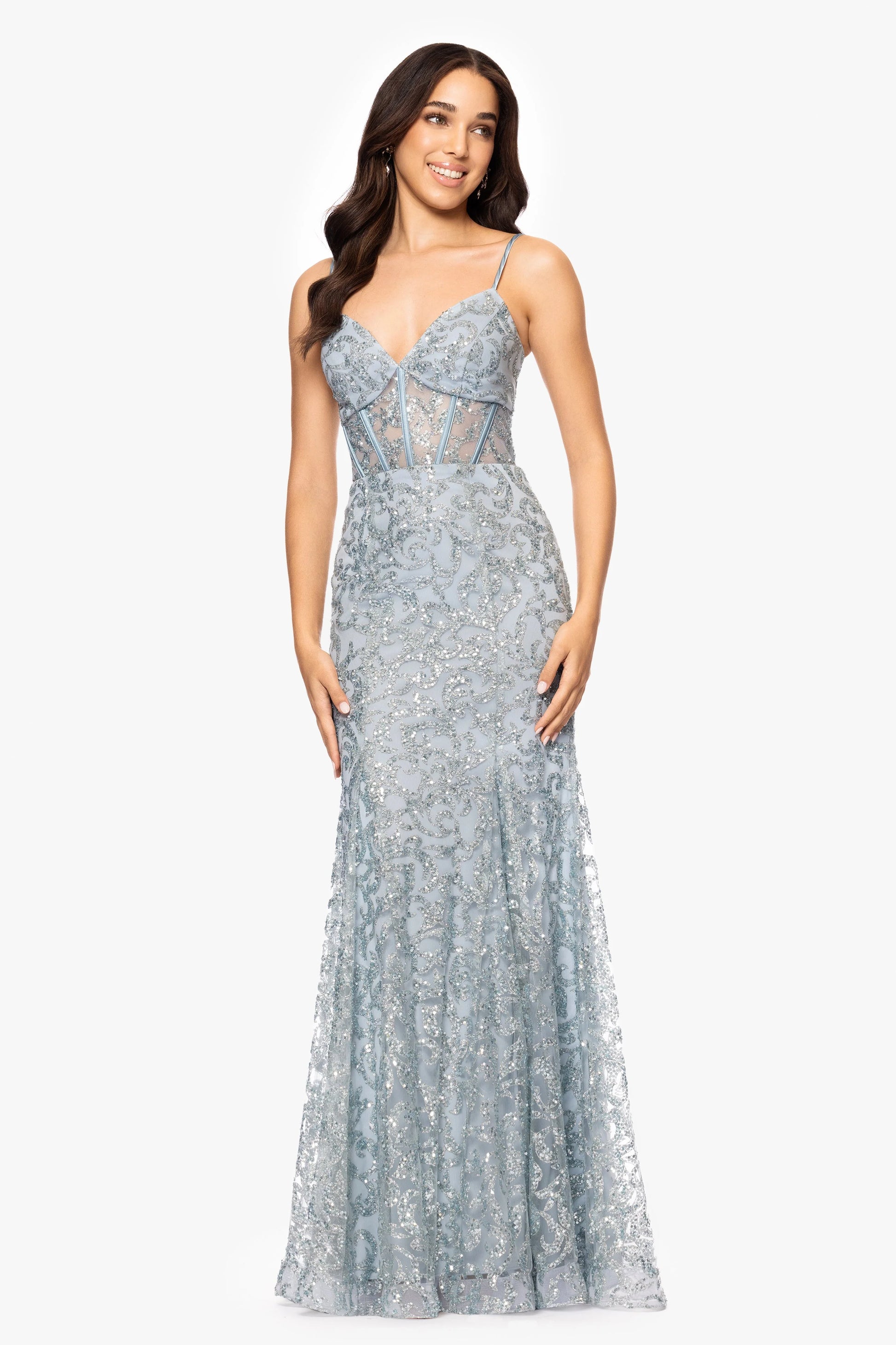 Blondie Nites "Stony" Sequin Corset Floor Length Dress