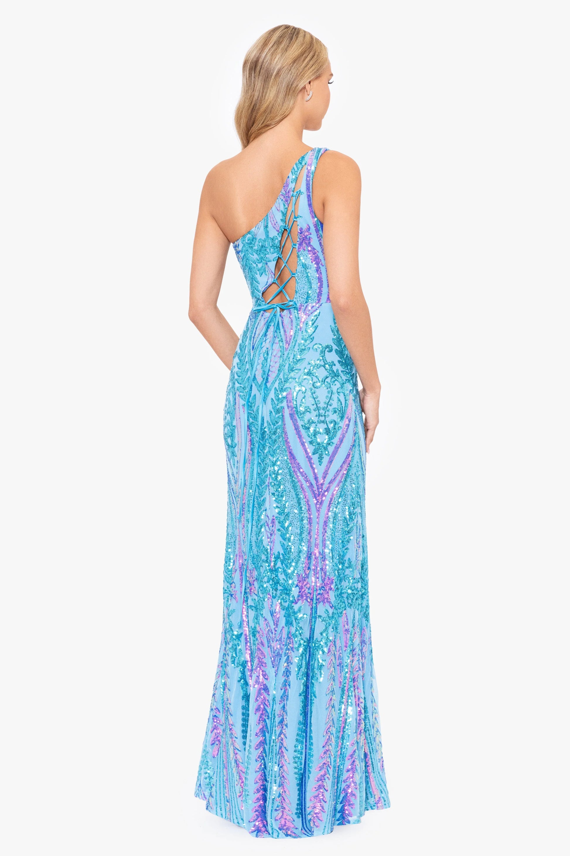 Blondie Nites "Terri" Long Placement Sequin One Shoulder Dress