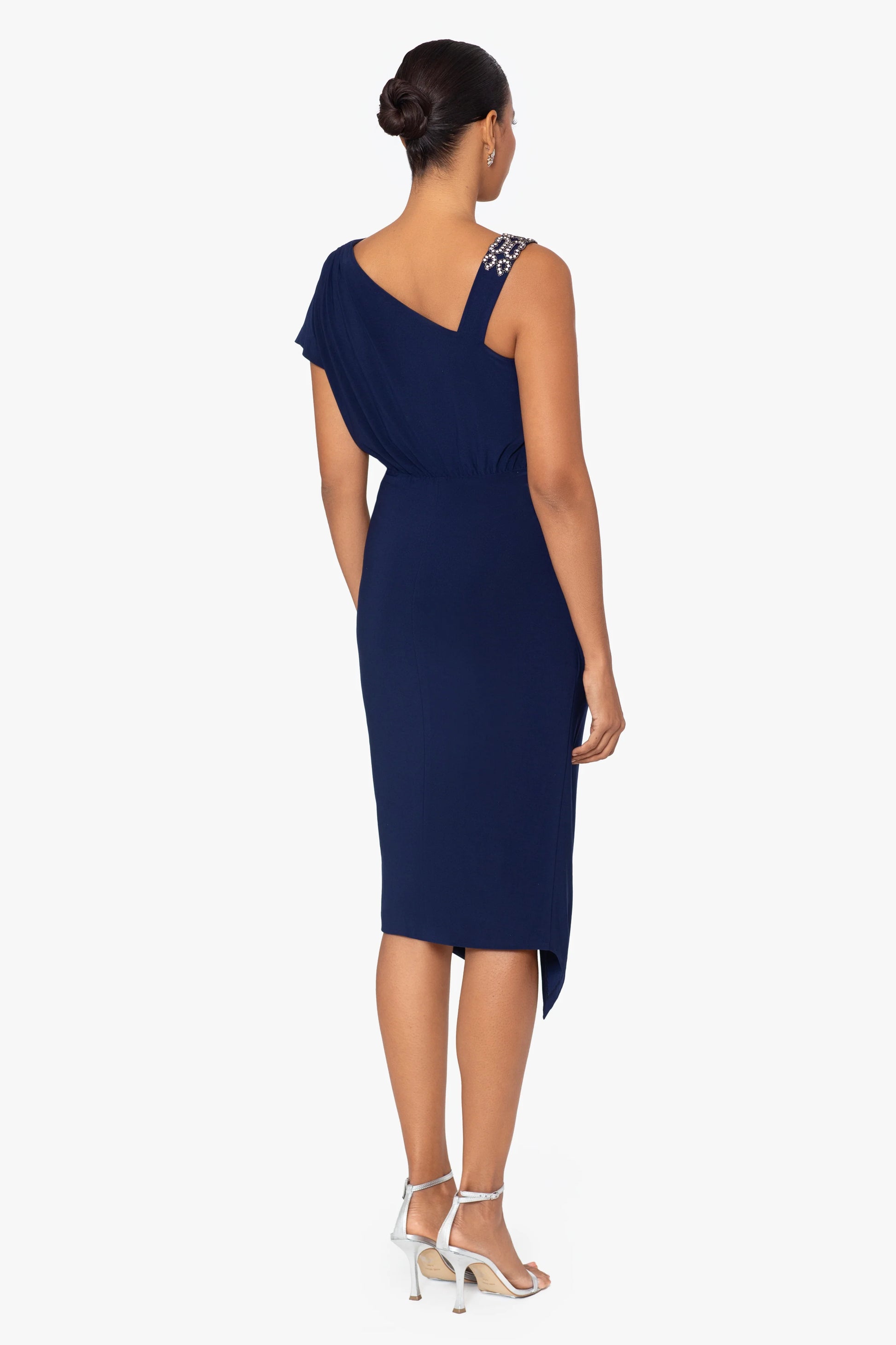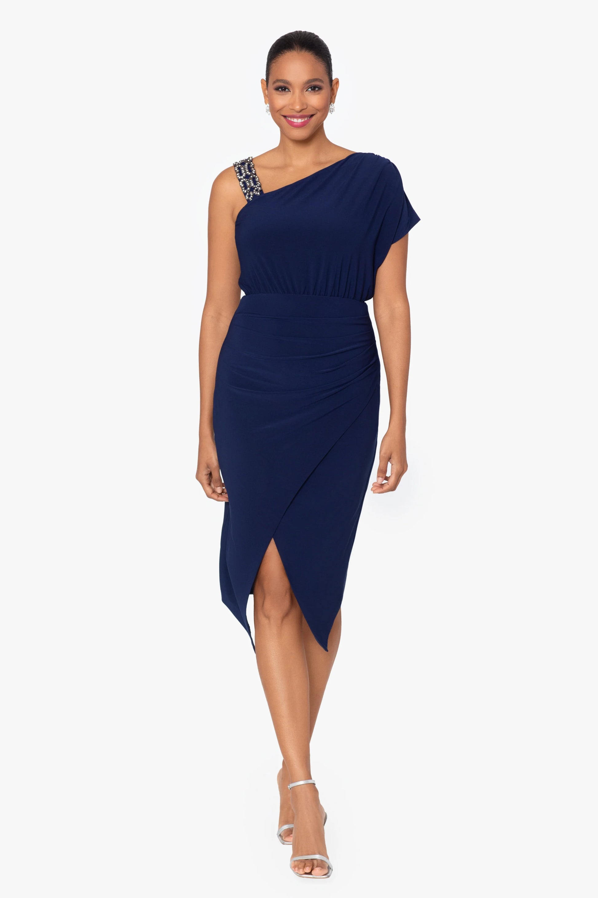 - Details: Asymmetrical Sleeves, Knee Length, Embellished