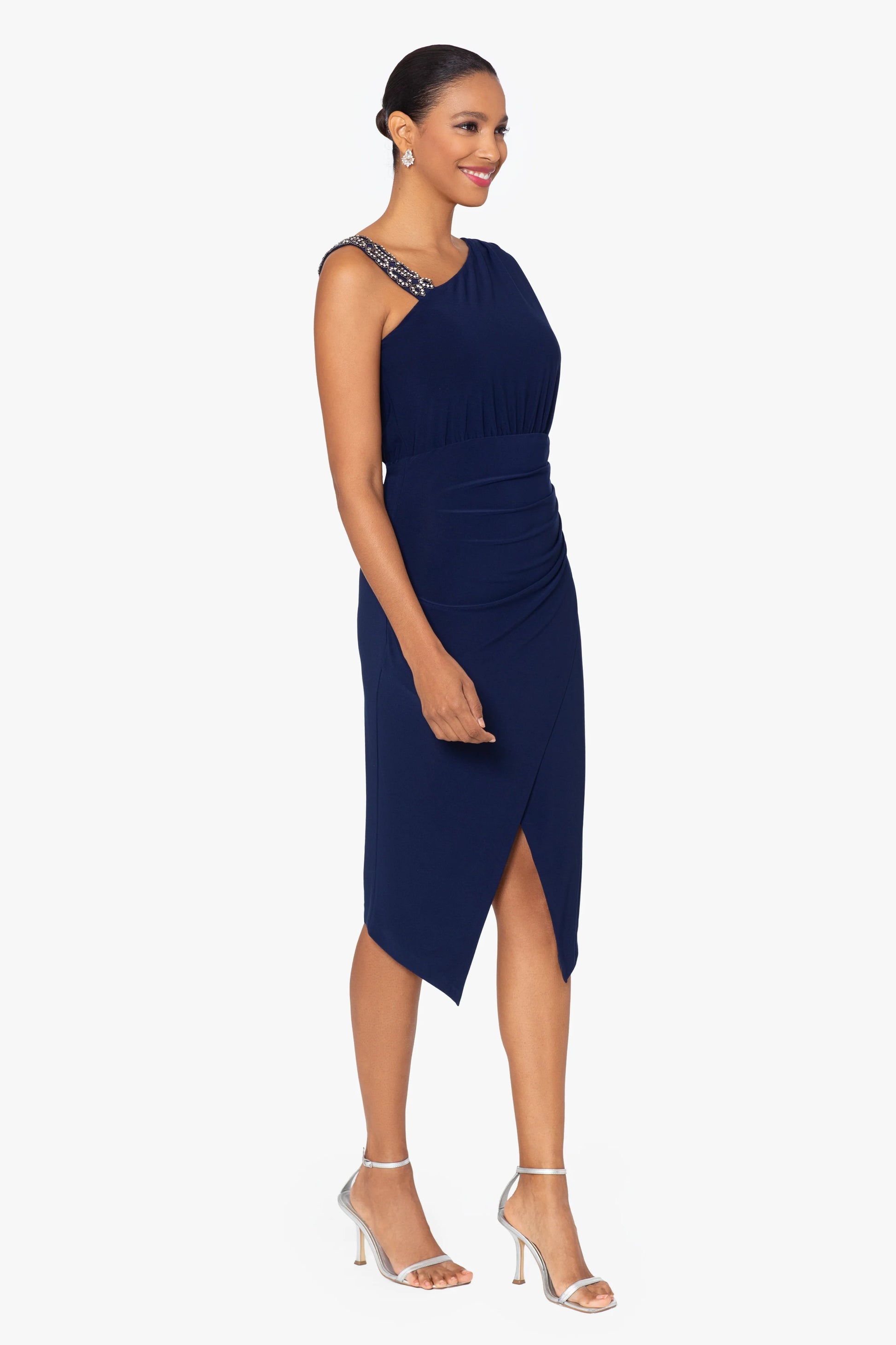 "Caitlin" Knee Length Jersey Knit Beaded Strap Dress