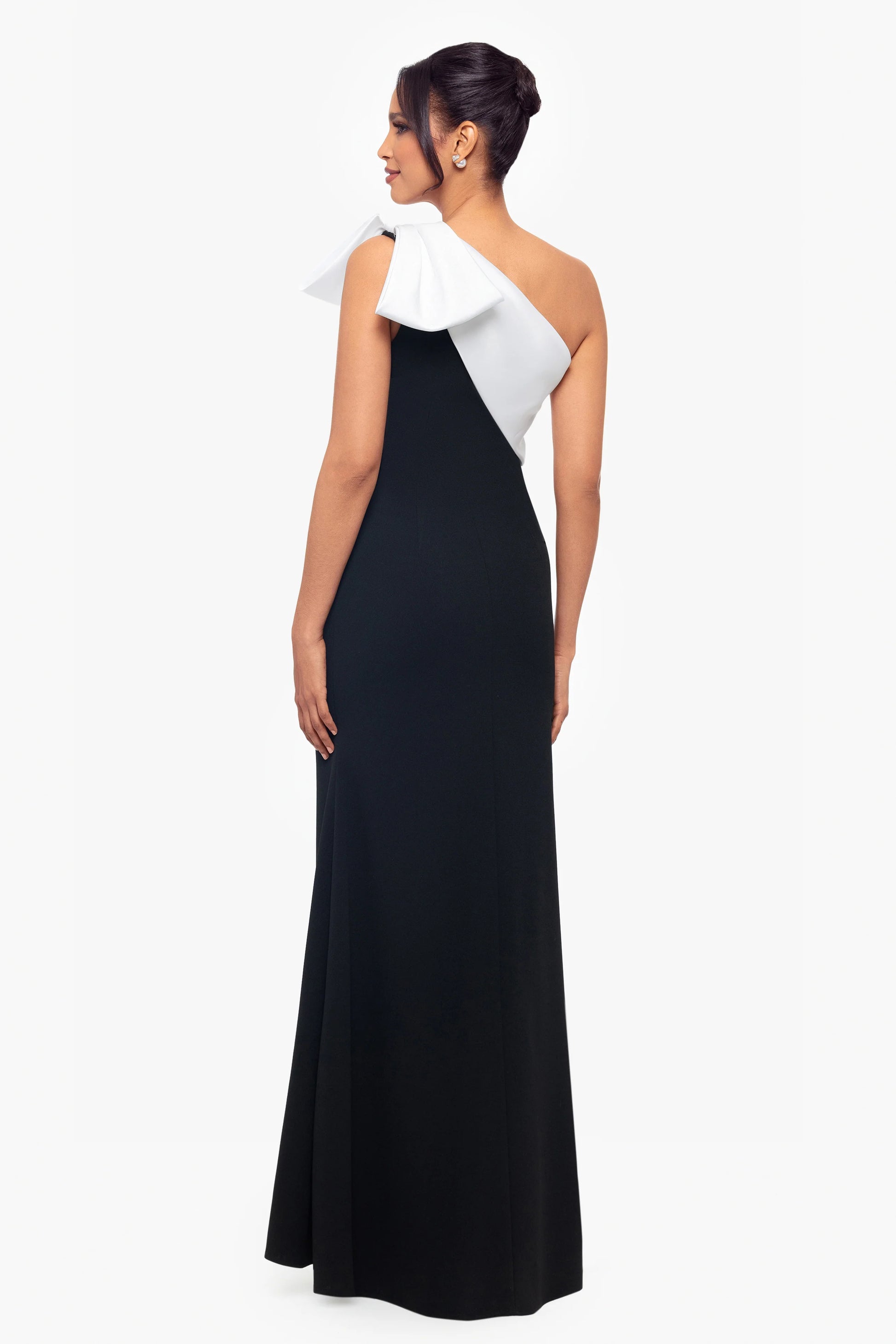 "Carmela" Long Scuba Crepe Dress with Satin Bow