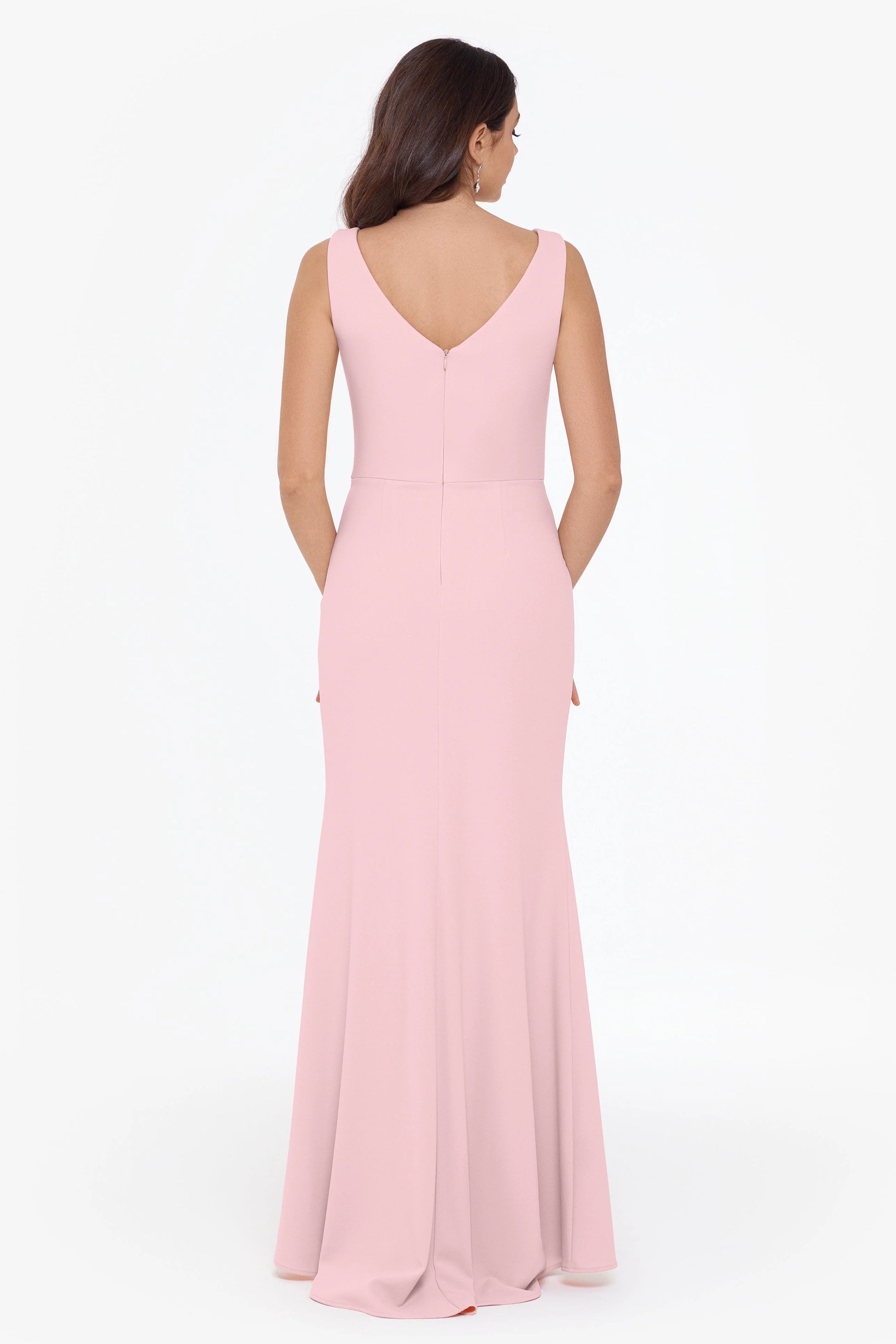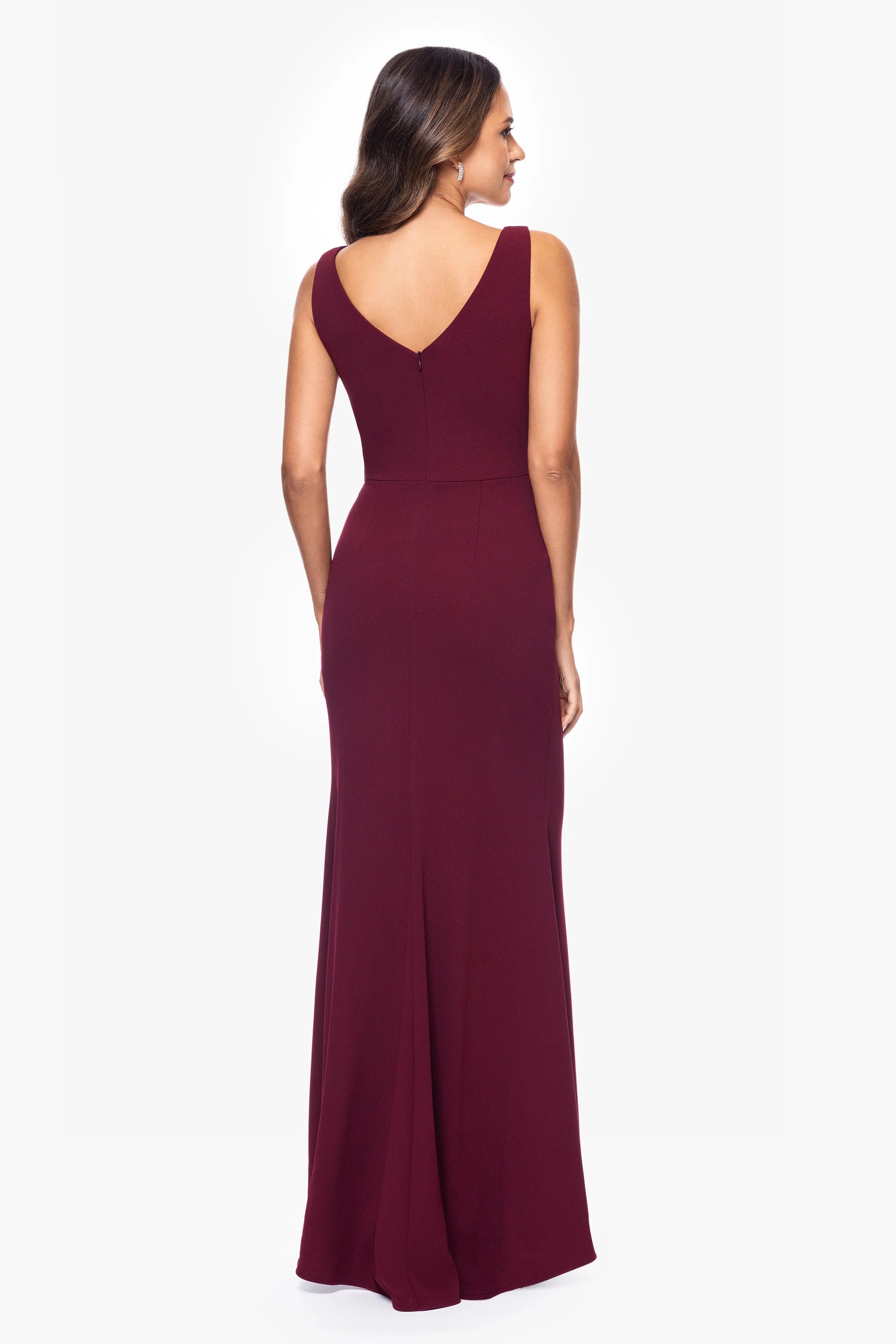 "Christine" Scuba Crepe Ruffled Bow Gown