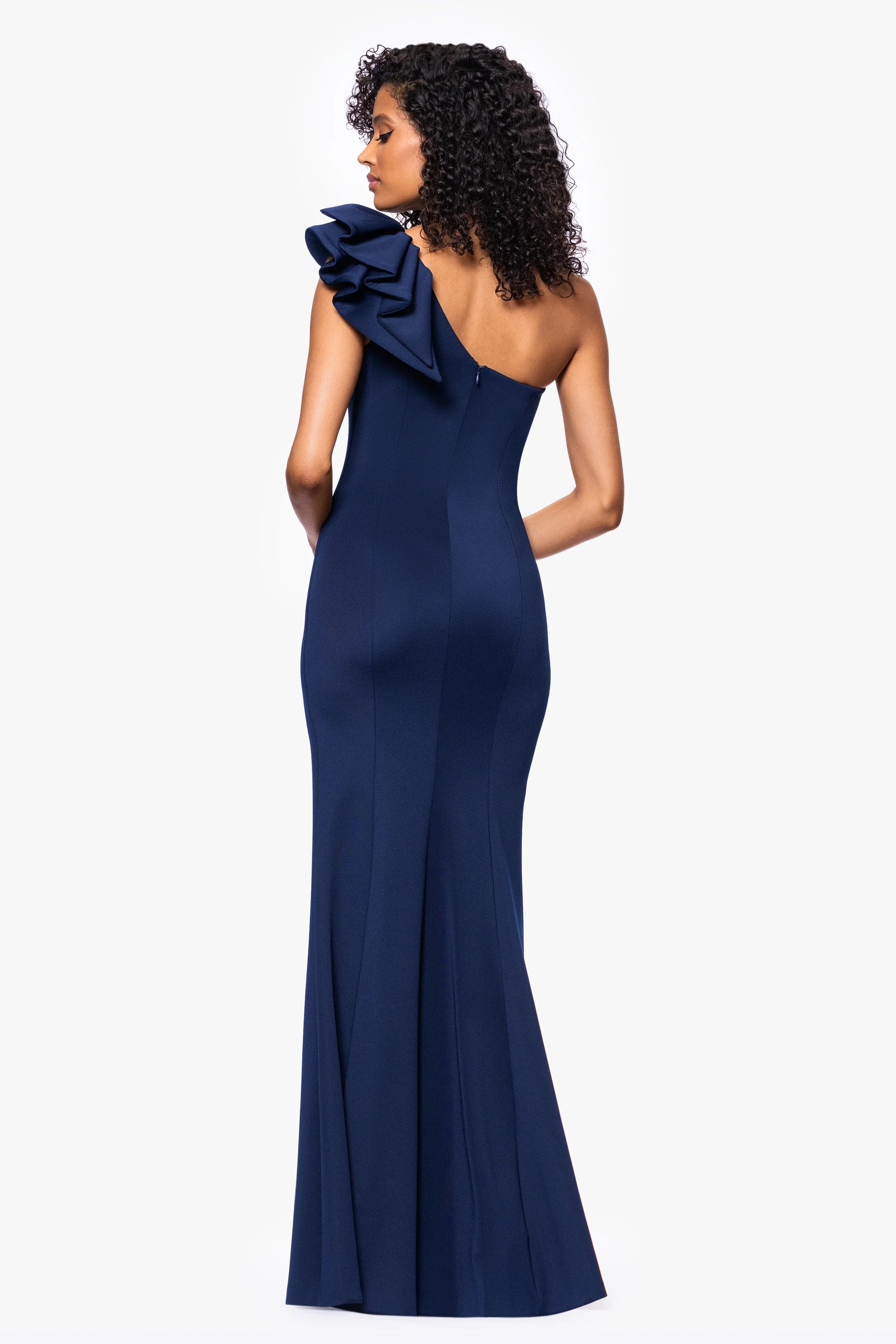 "Daisy" Long Scuba Crepe One Shoulder Dress