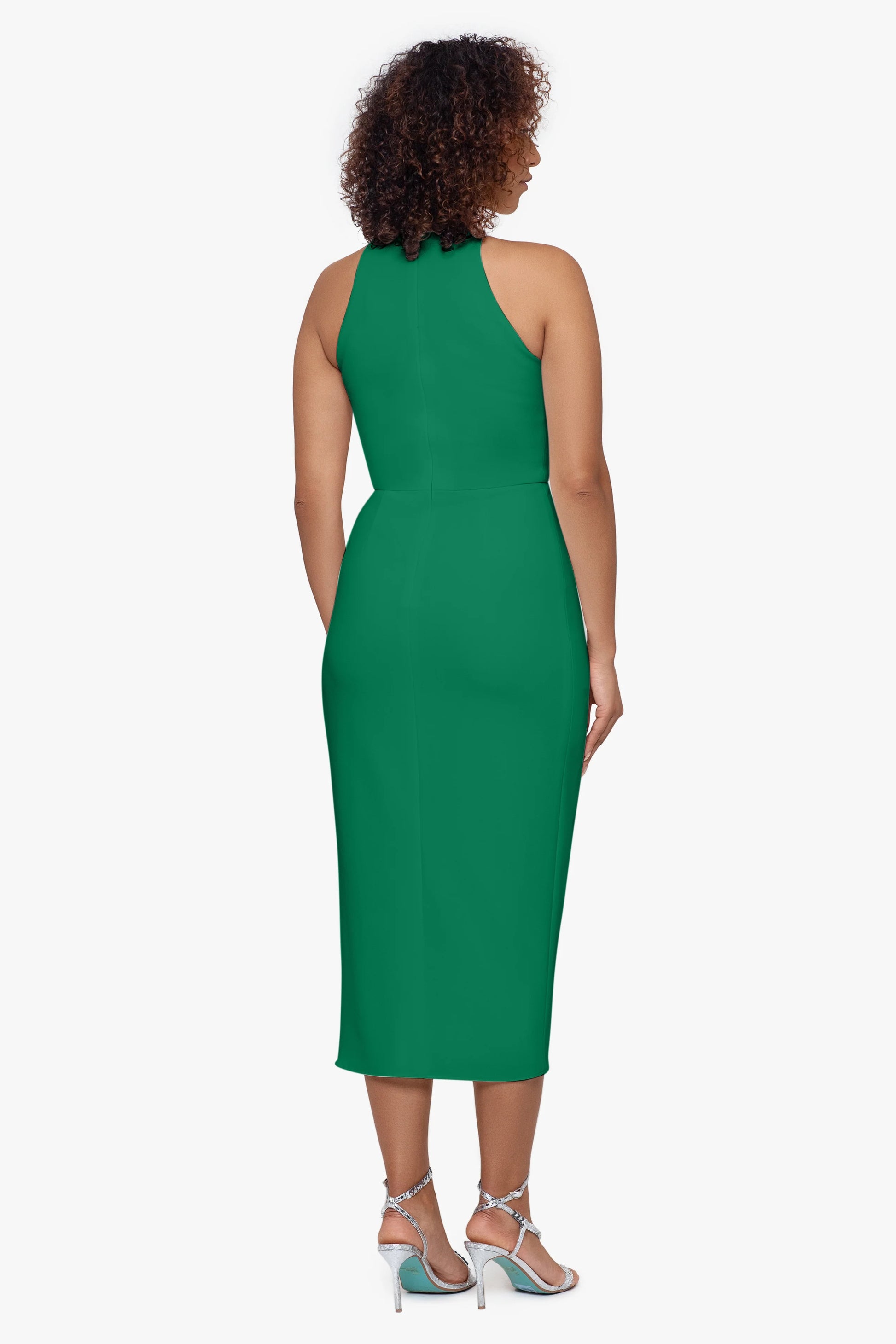 "Deborah" Midi Halter Scuba Crepe Sarong Dress