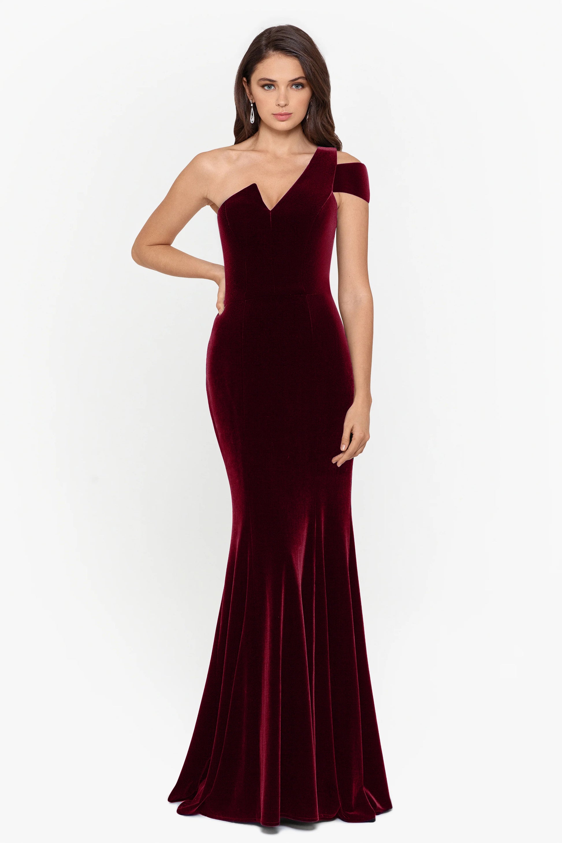 "Ella" Long Velvet One Shoulder Dress