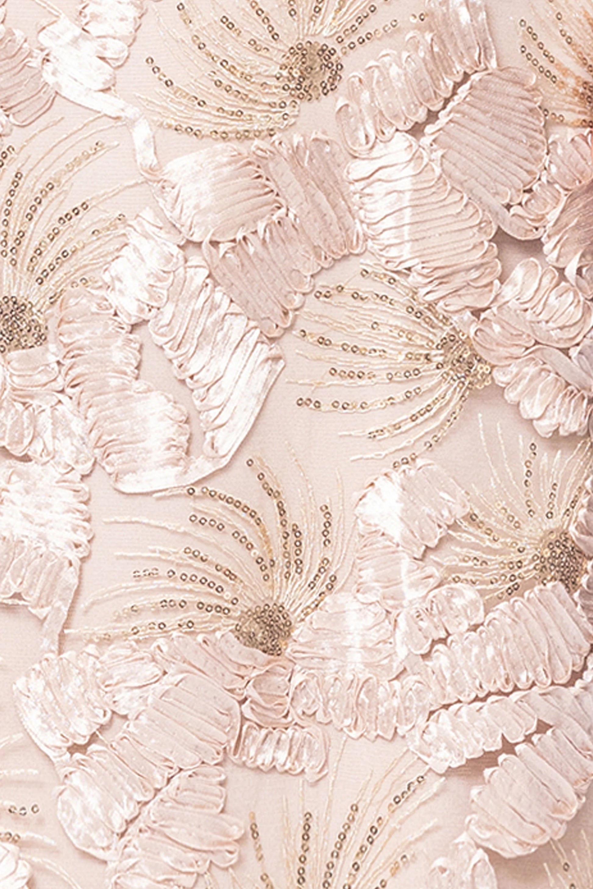 This elegant gown features a high halter neckline and an all-over floral pattern with a subtle shimmer, creating a sophisticated and graceful look. The flattering silhouette is perfect for evening events, weddings, or formal occasions, combining comfort with timeless charm.