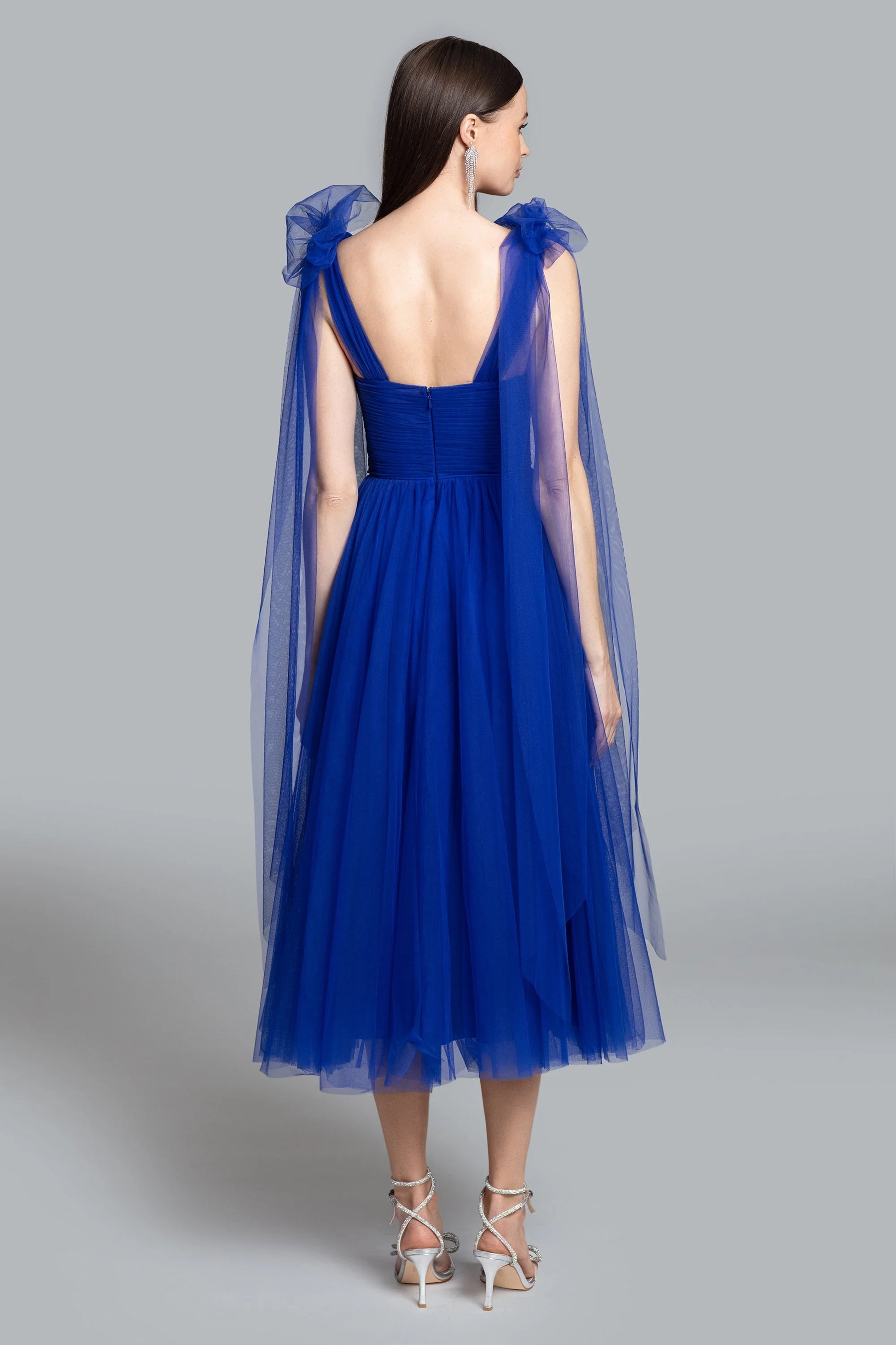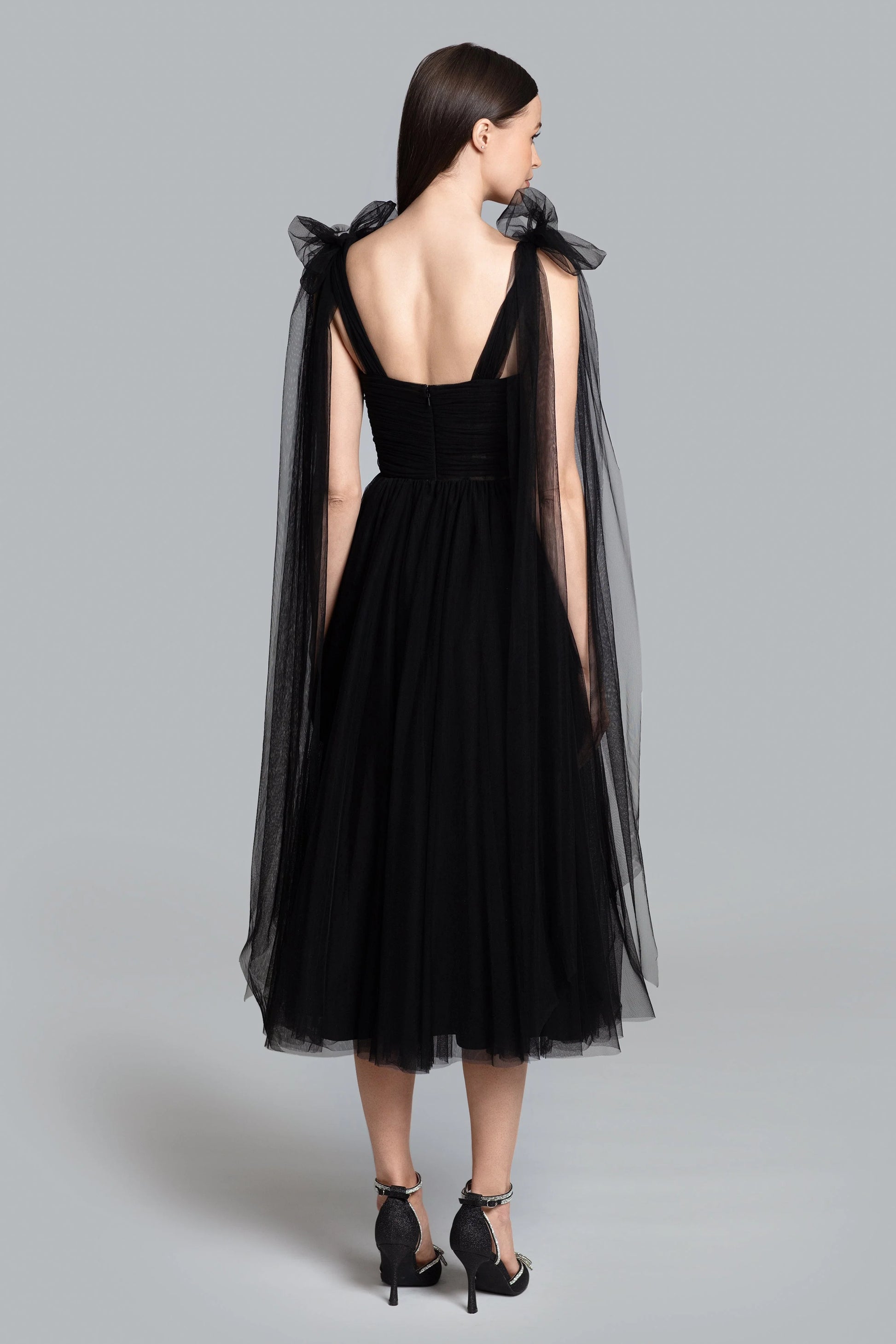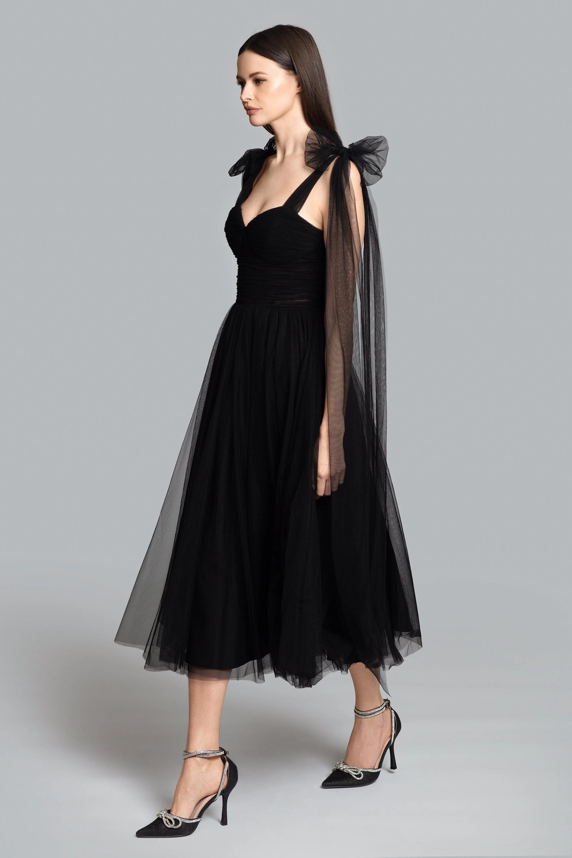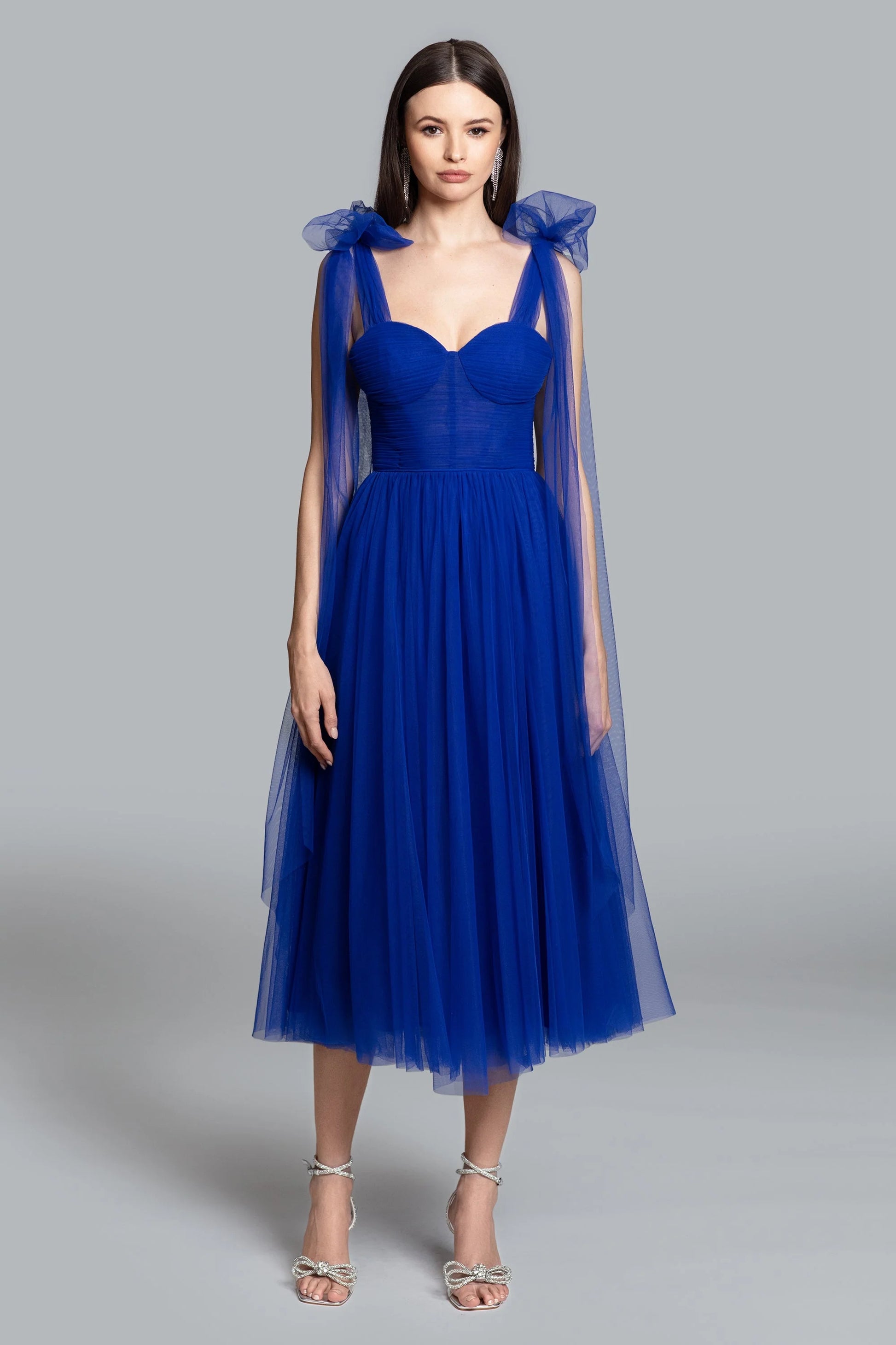 Discover our Bowery Midi, a celebration of grace and style. This dress is the embodiment of feminine charm, featuring adjustable straps, a corset bodice, and a tea length skirt.