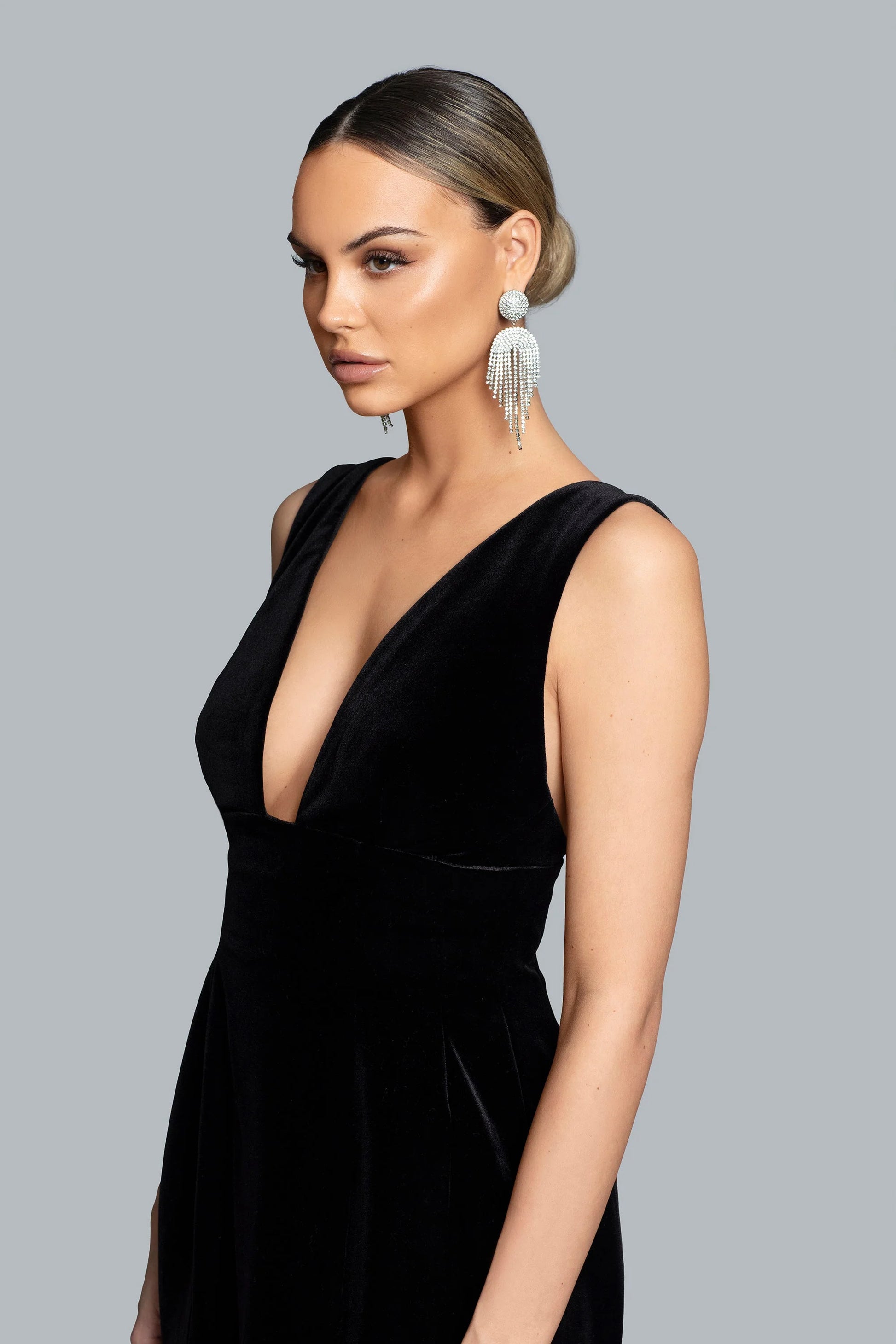 The perfect little black dress. Our velvet Lexington mini features a sexy plunging neckline and a flattering A-line skirt.