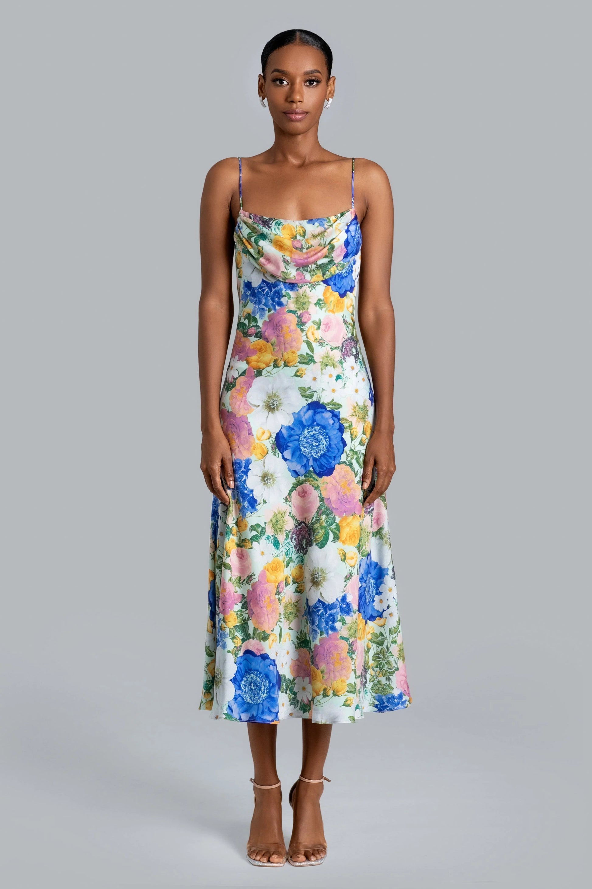 Indulge in the sophisticated charm of our "Mason" Printed Satin Midi. This cute floral midi boasts a stunning drape front design, making it the perfect choice for daytime formal events. Ideal for summer weddings, this luxurious piece exudes elegance and exclusivity. Elevate your style with this must-have piece.