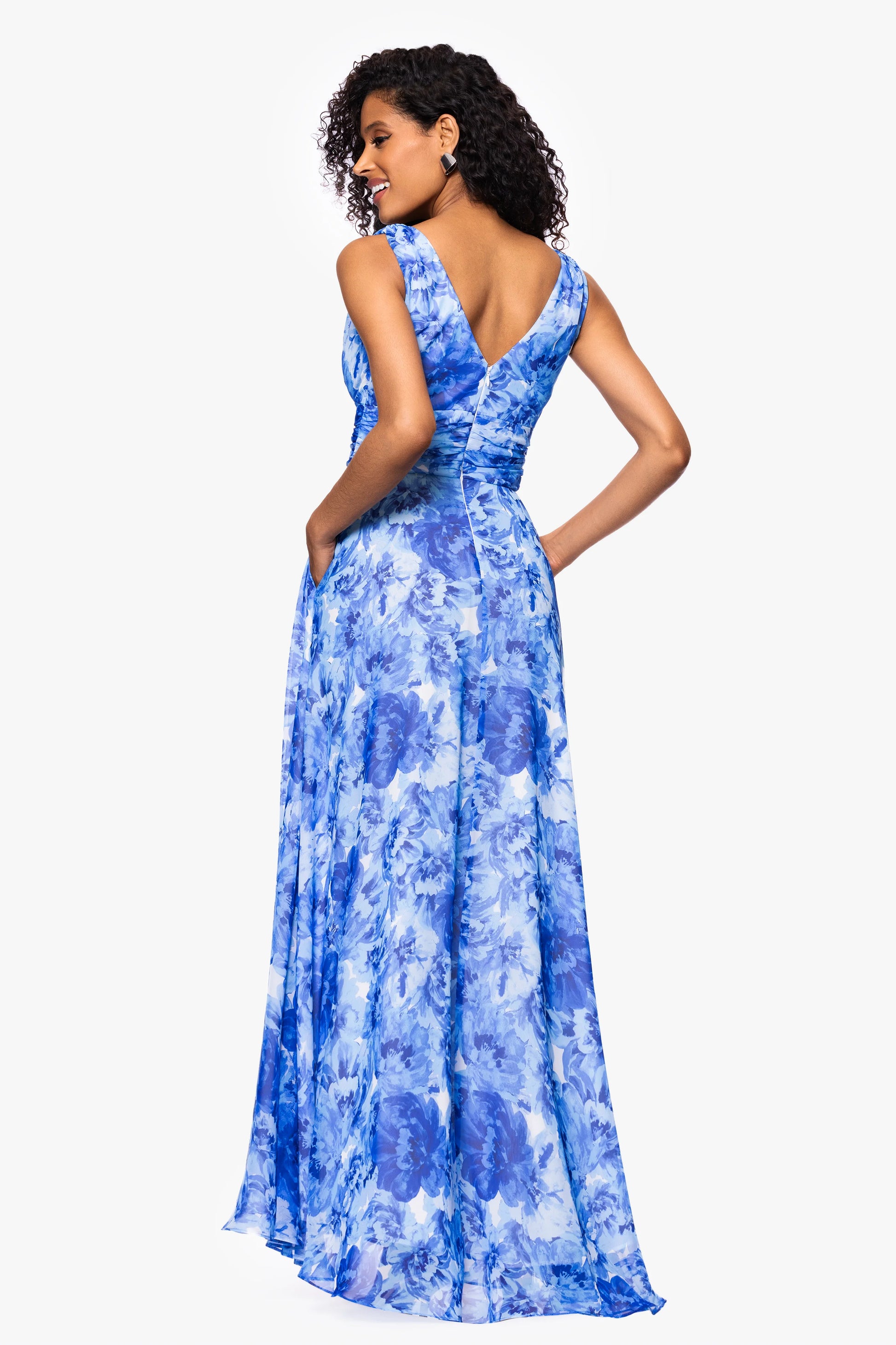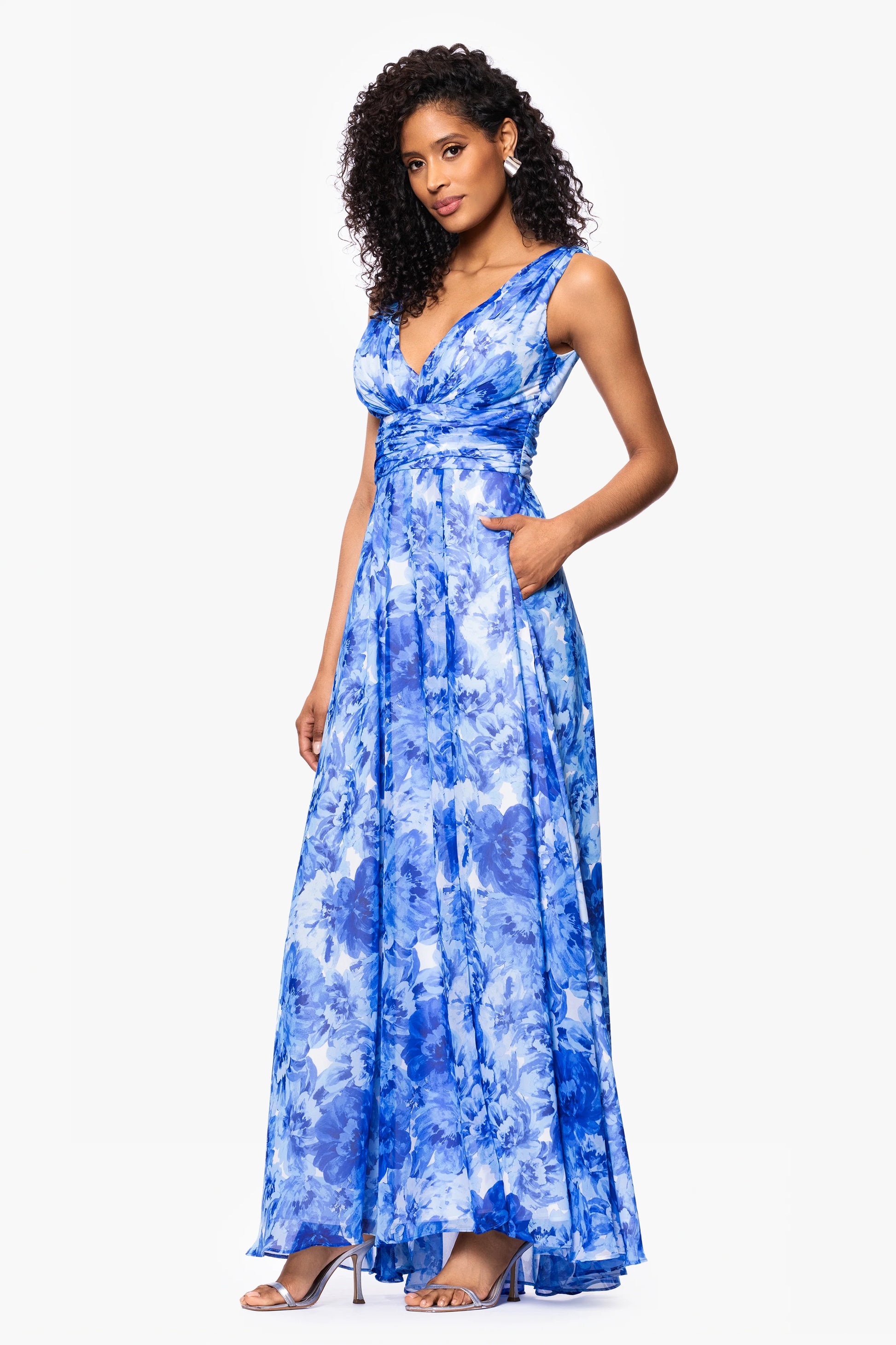"Jaime" Print Chiffon V-Neck Floor Length Dress
