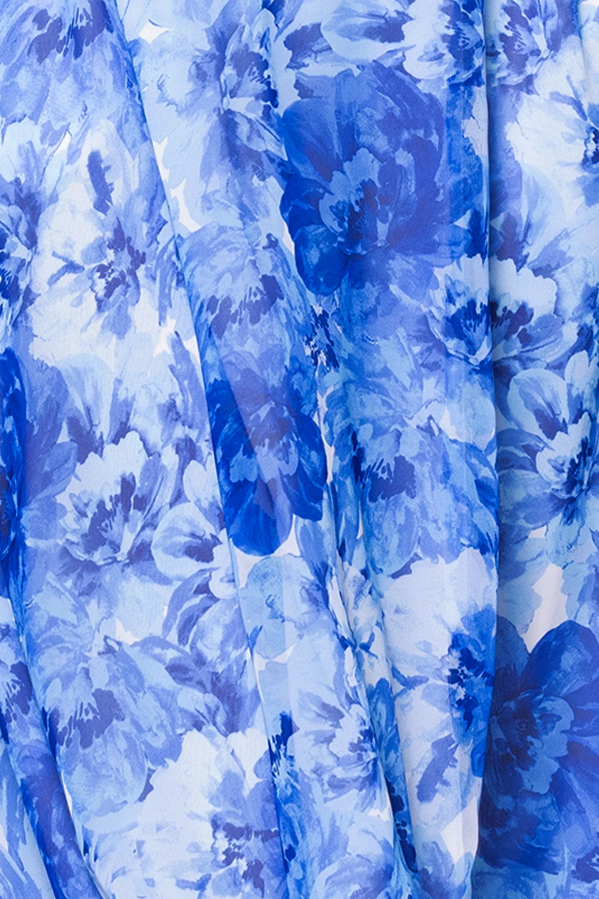 This beautiful floral gown features a flattering V-neckline and a wrap-style bodice, enhancing its graceful silhouette. The flowing skirt and soft, airy fabric make it an ideal choice for spring or summer events like garden parties or casual weddings. With its vibrant blue and white floral print, this dress combines comfort and elegance effortlessly.