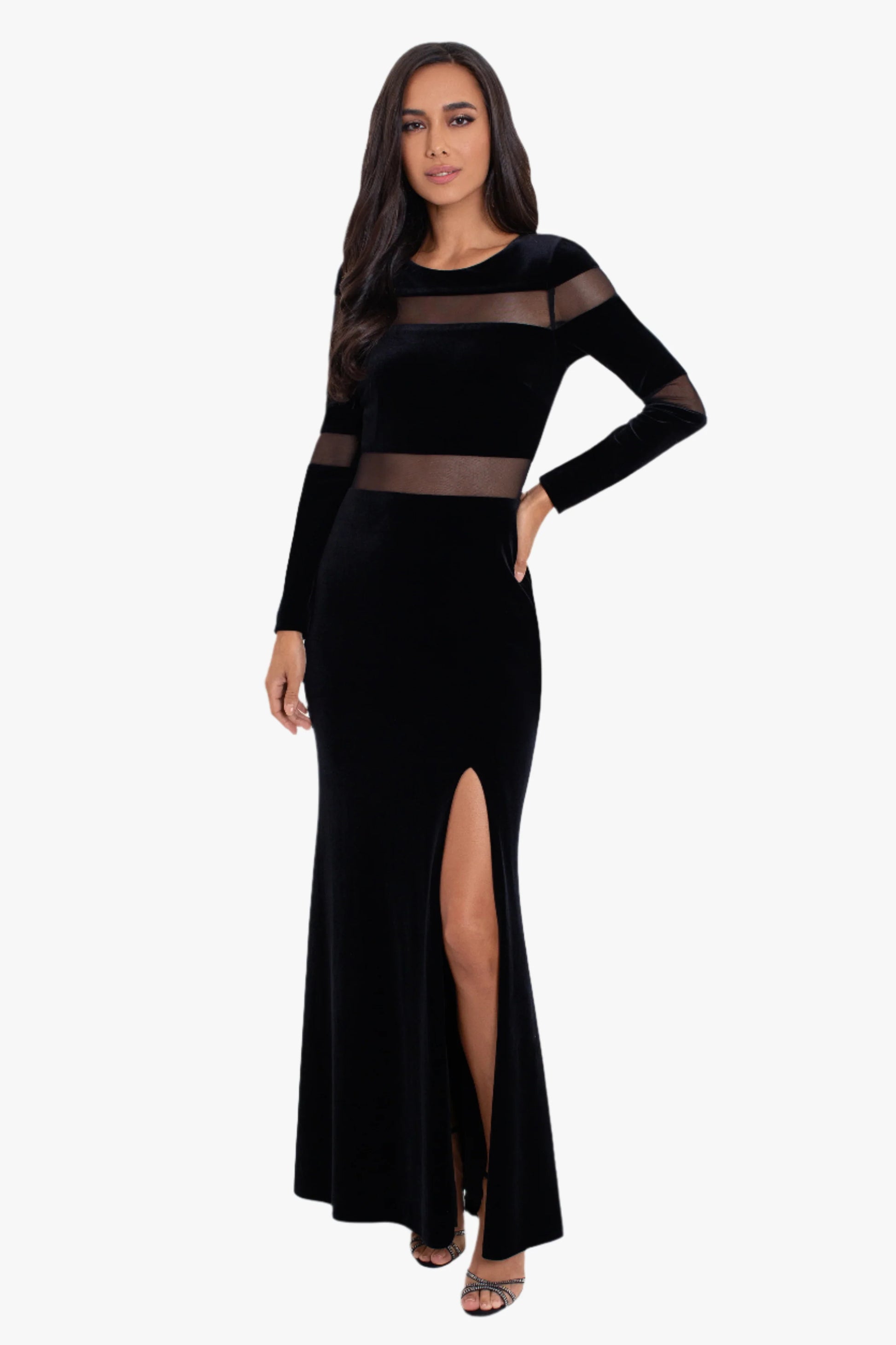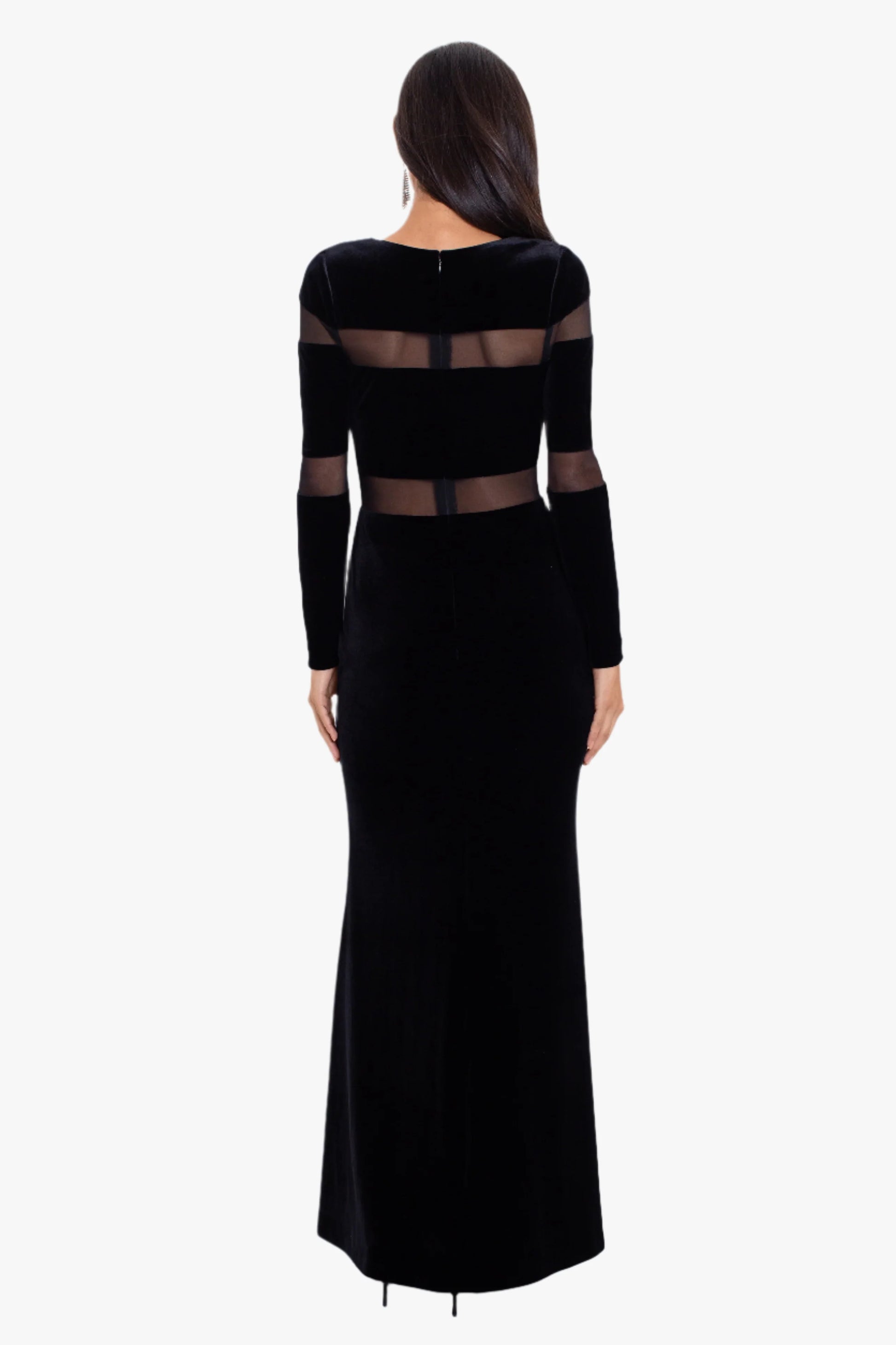 "KiKi" Long Sleeve Velvet Illusion Cut Out Dress