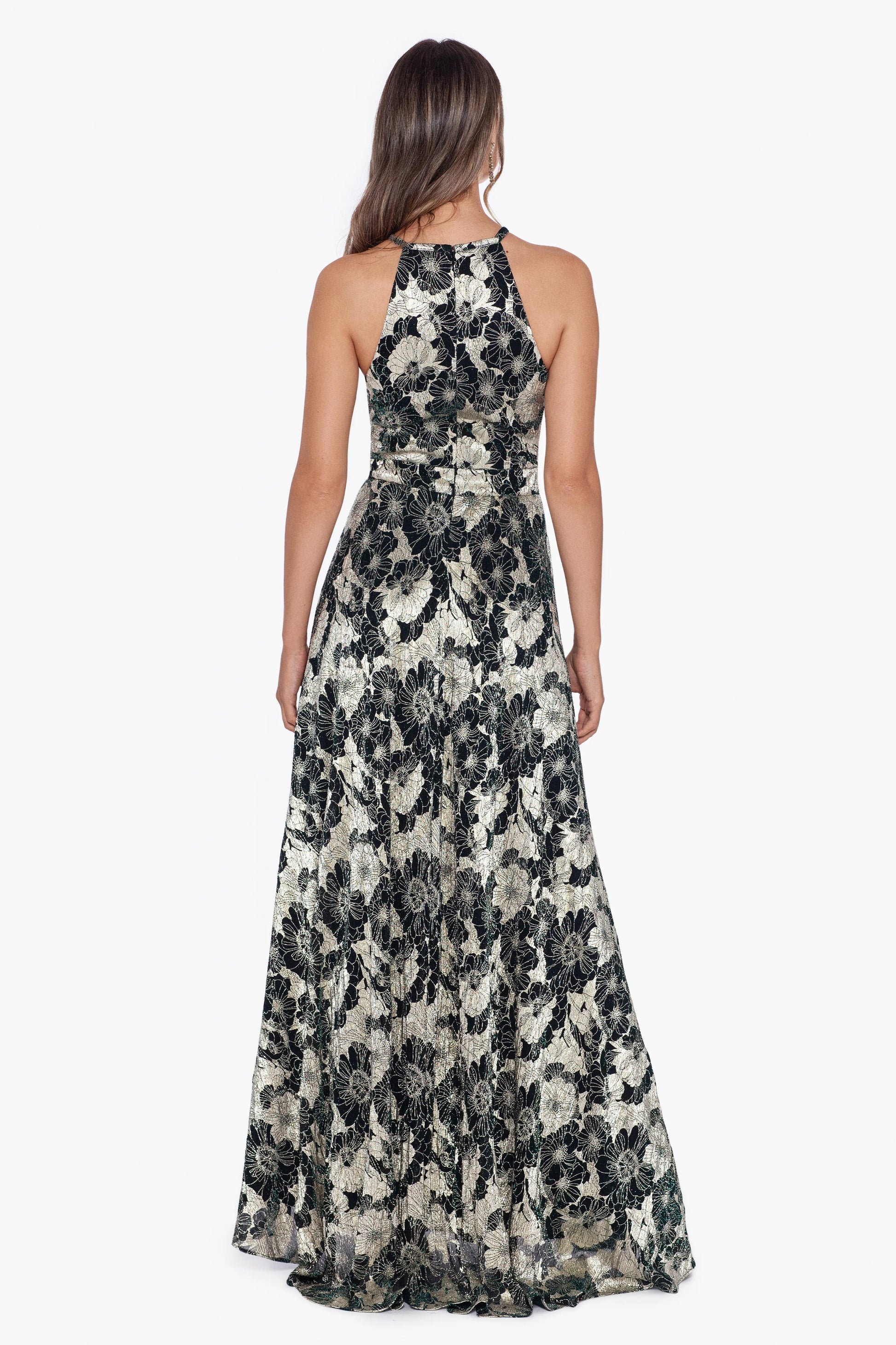 "Layla" Long Halter Top Wrap Foil Print Dress