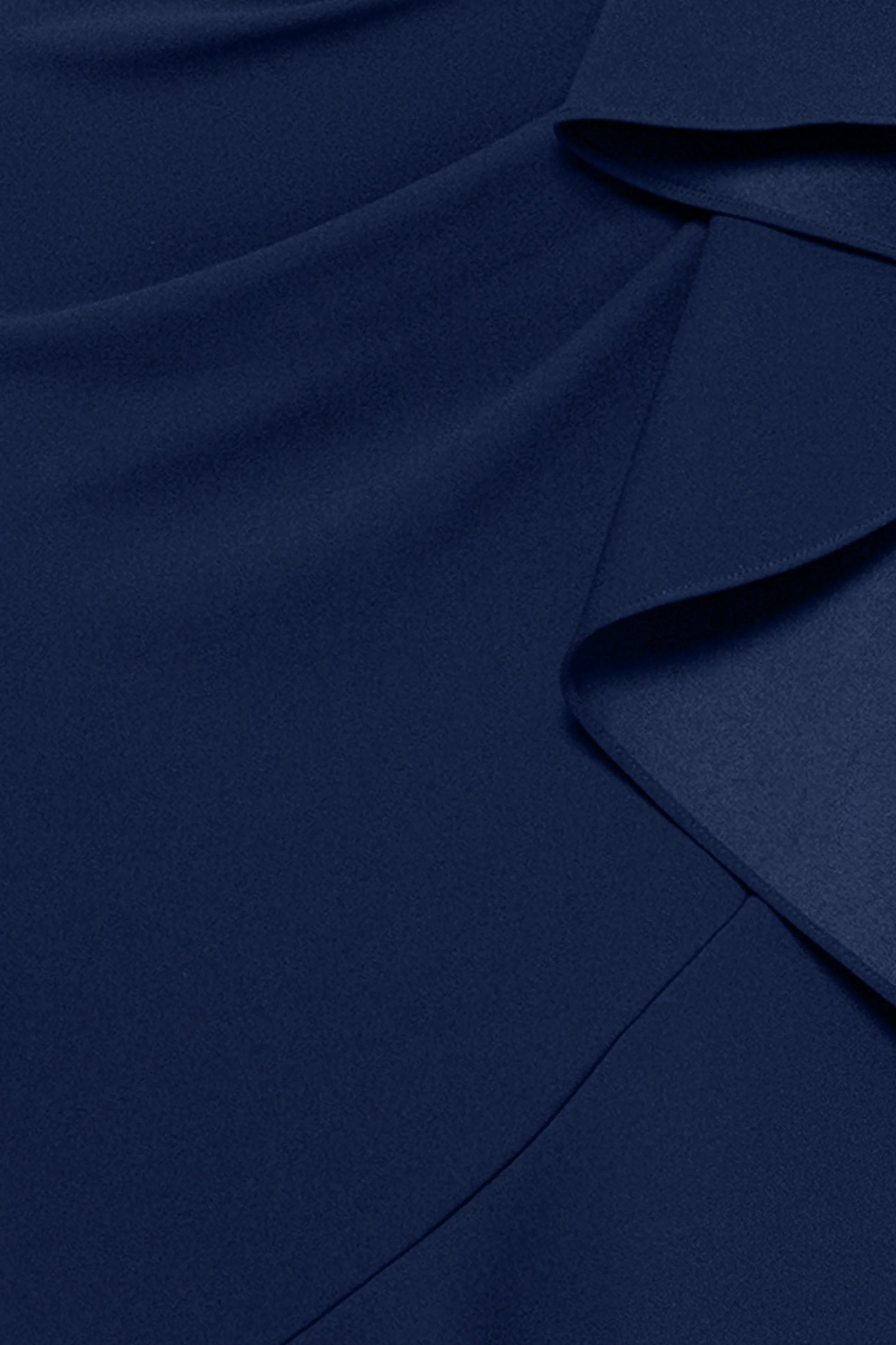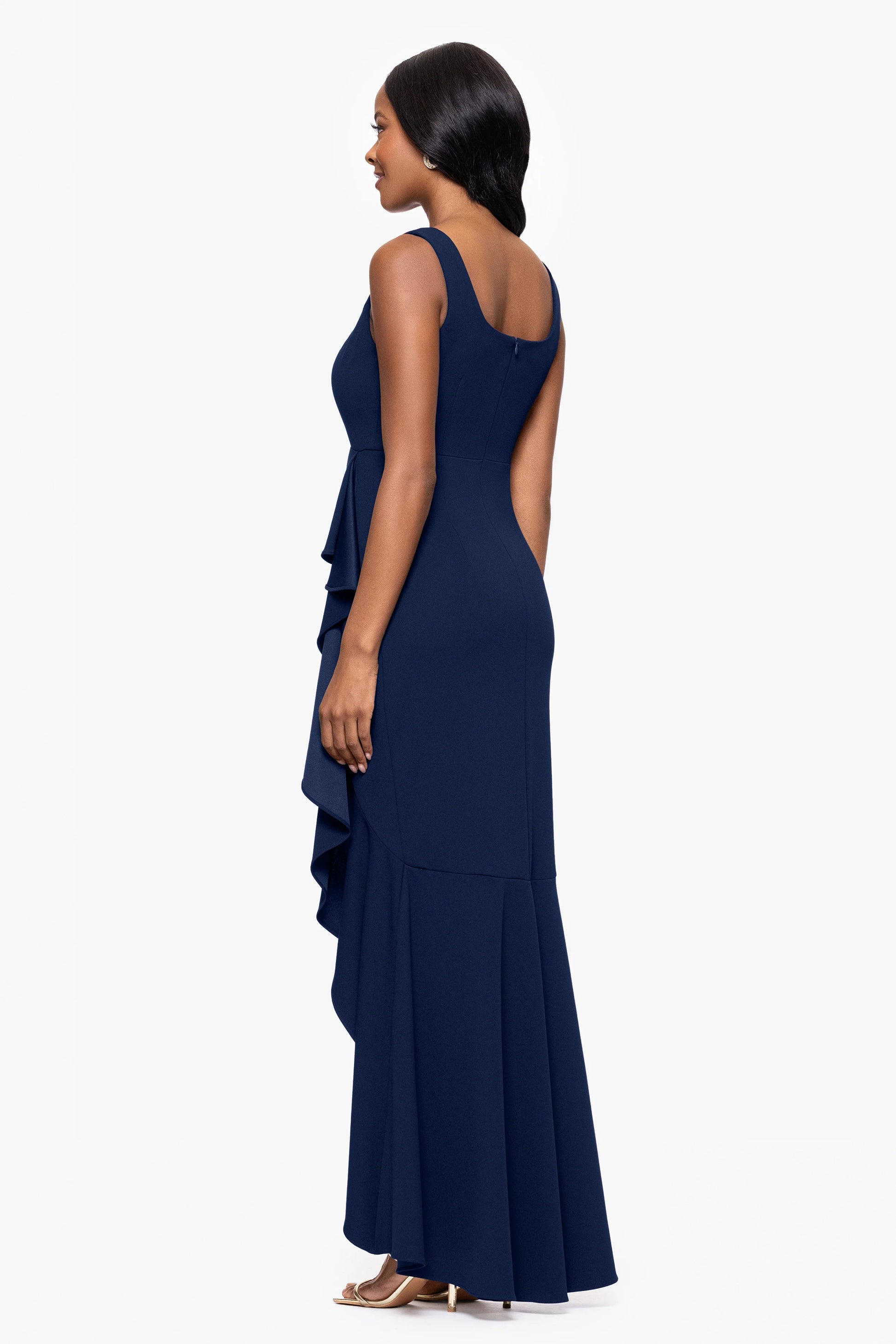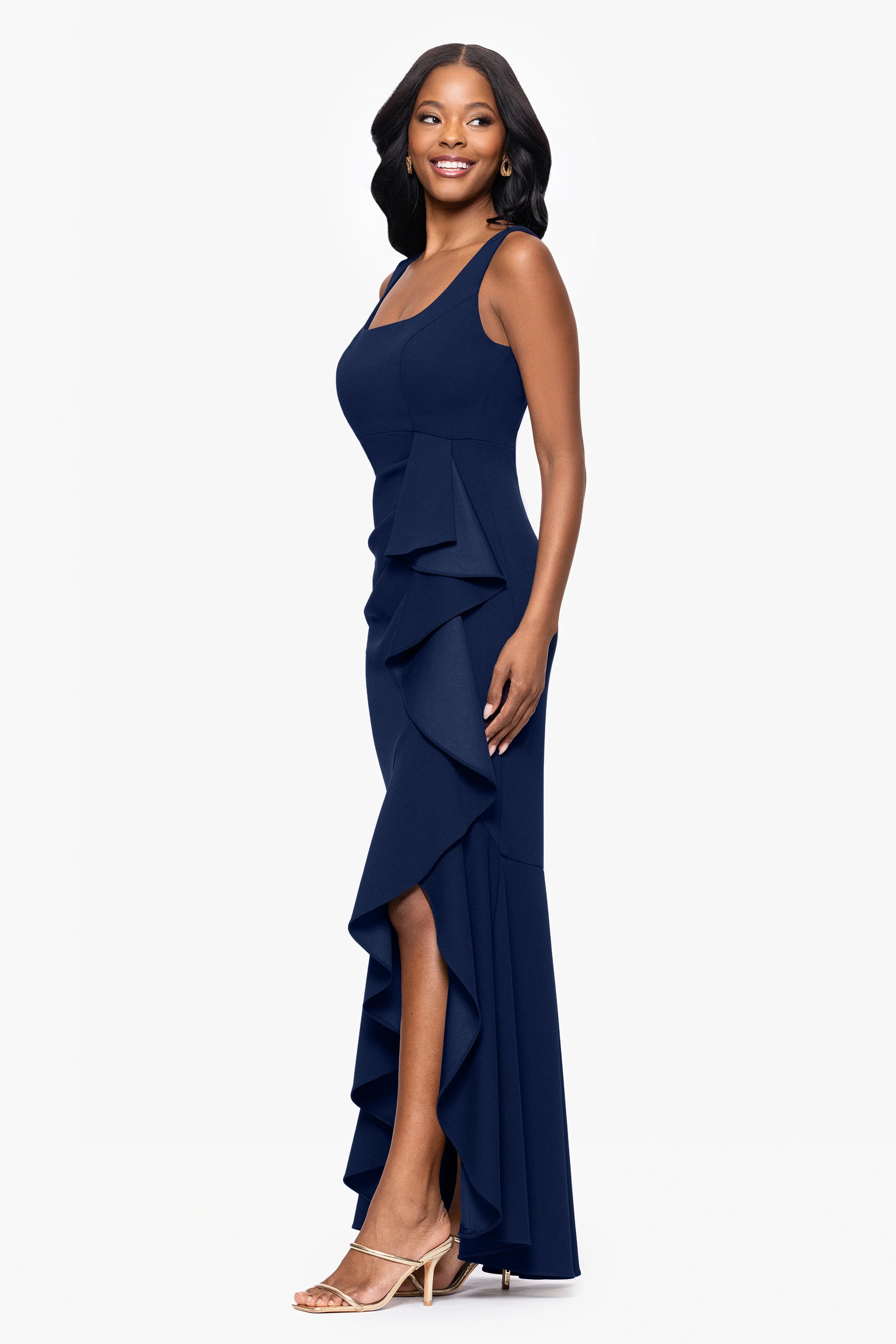 "Lilly" Scuba Crepe Square Neck Ruffle Floor Length Dress
