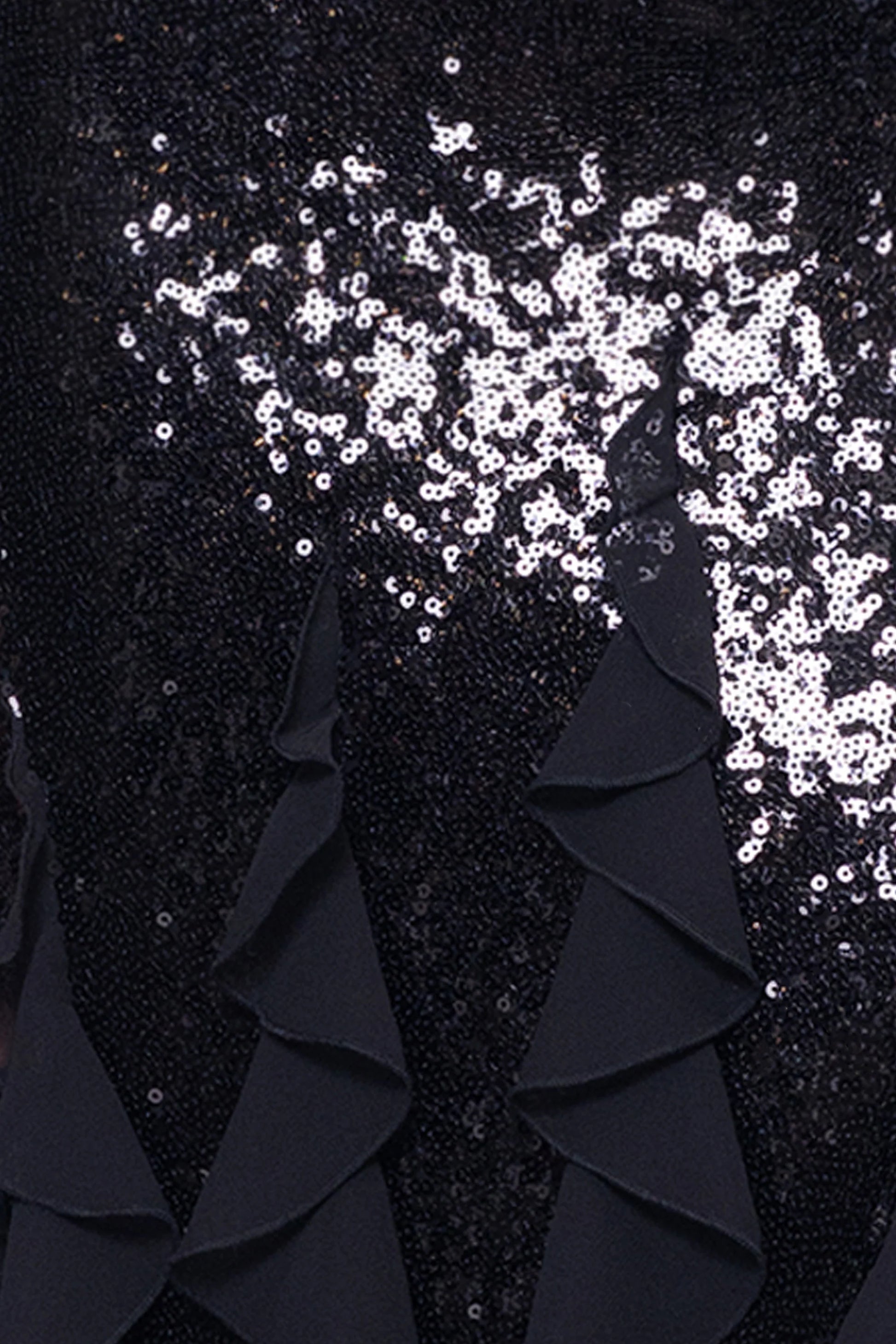 "Milan" Long Sequin Spaghetti with Chiffon Ruffles