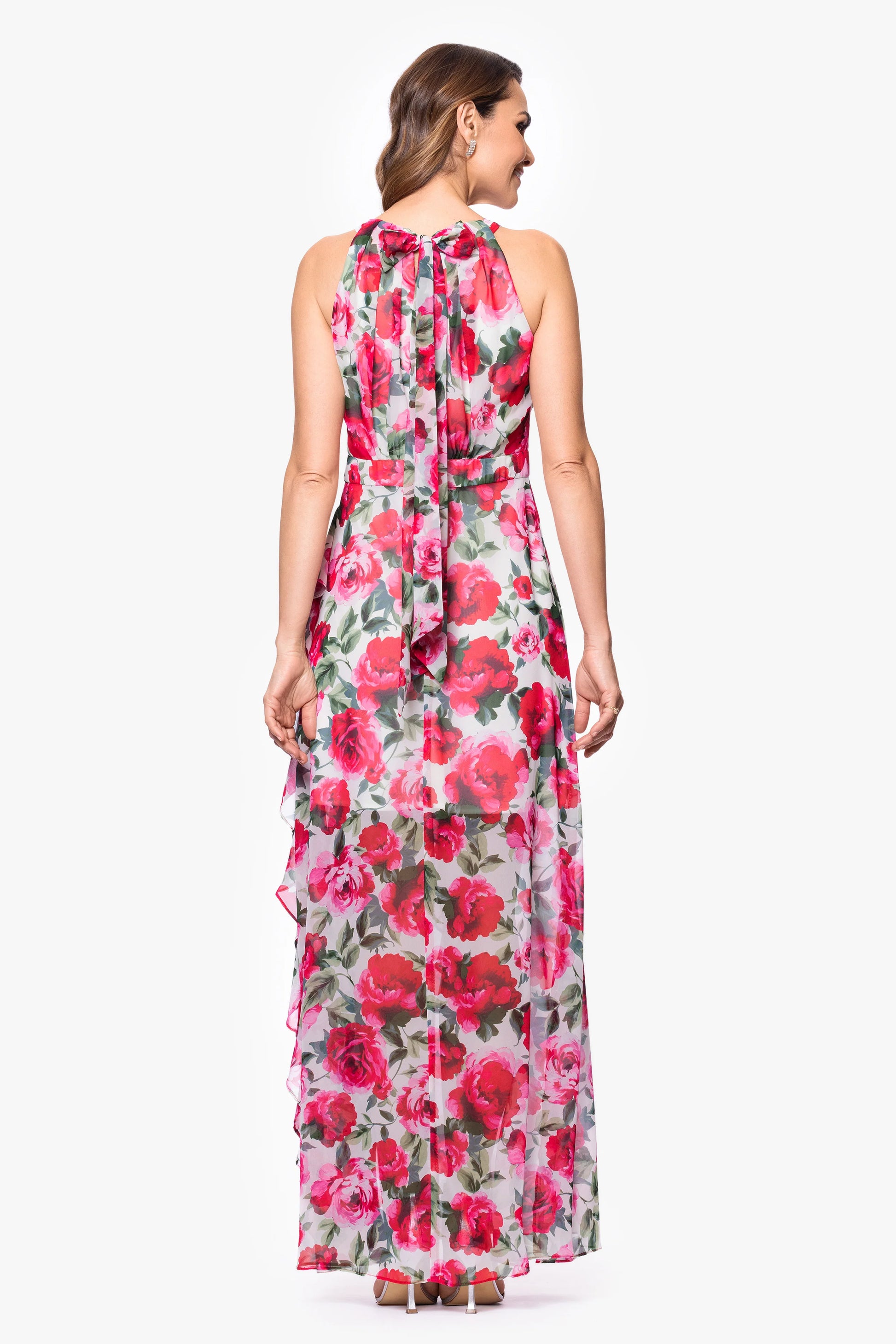 "Mimi" Floral Print Chiffon Floor Length Dress