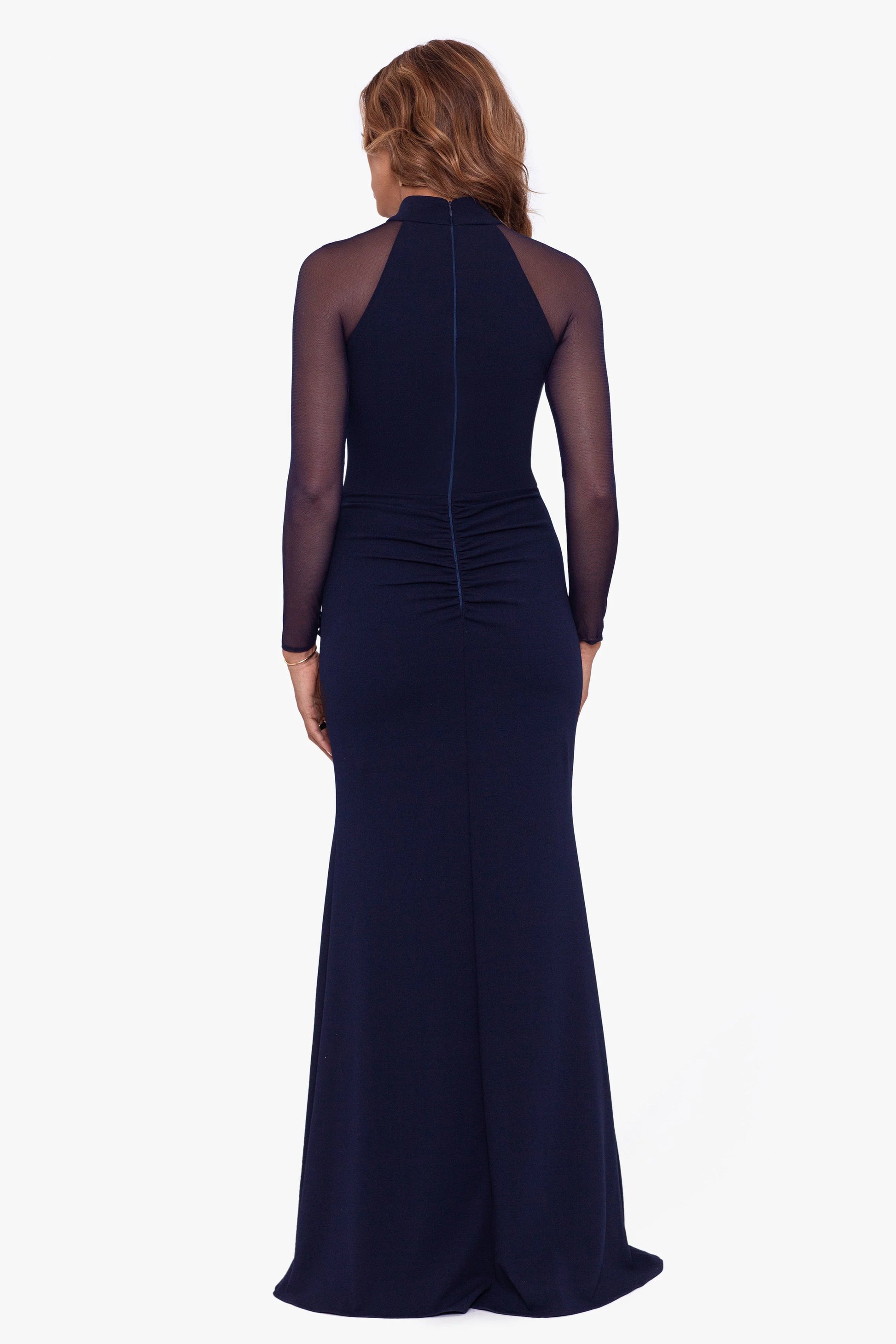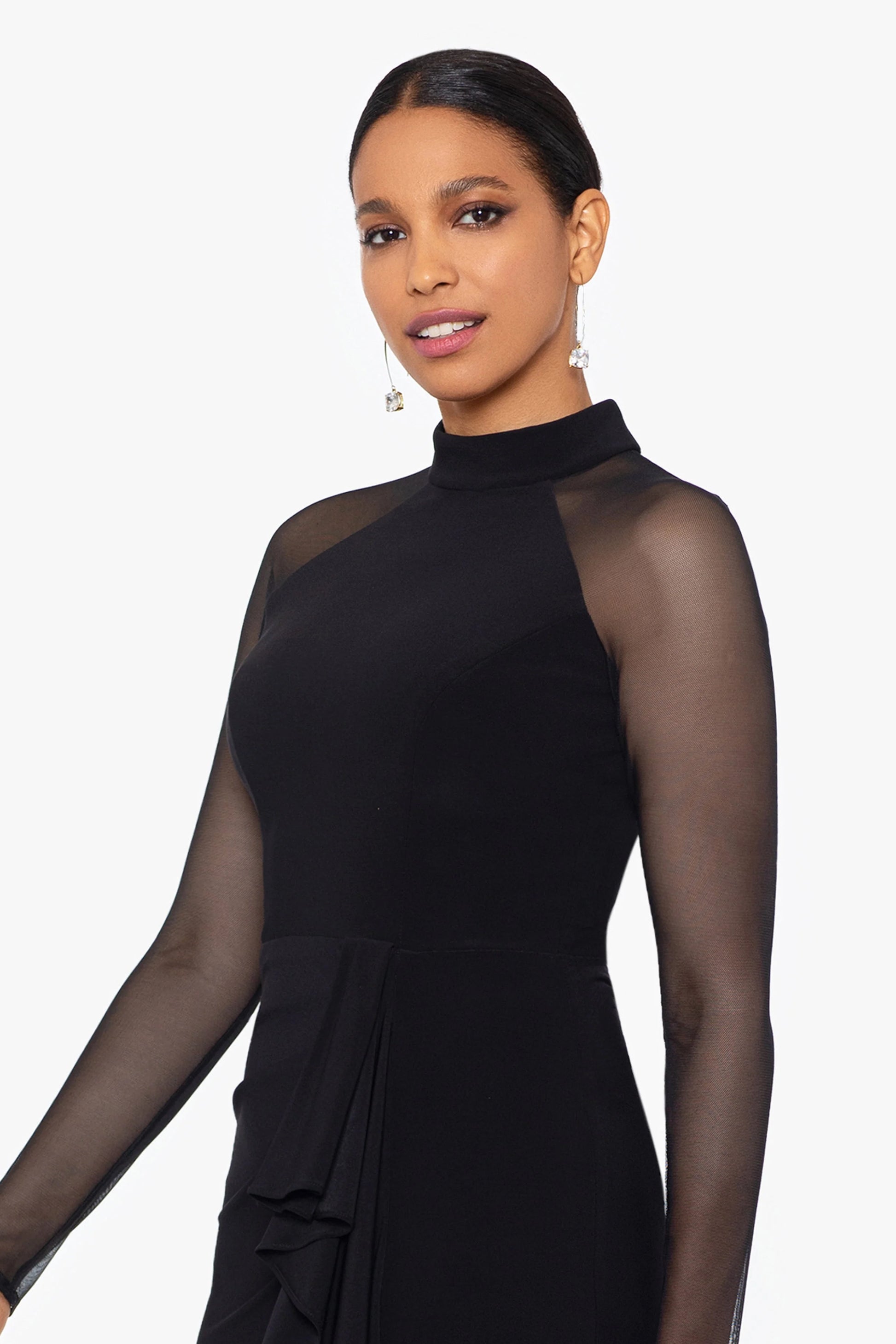 "Natalie" Long Mock Neck Mesh Sleeve Dress