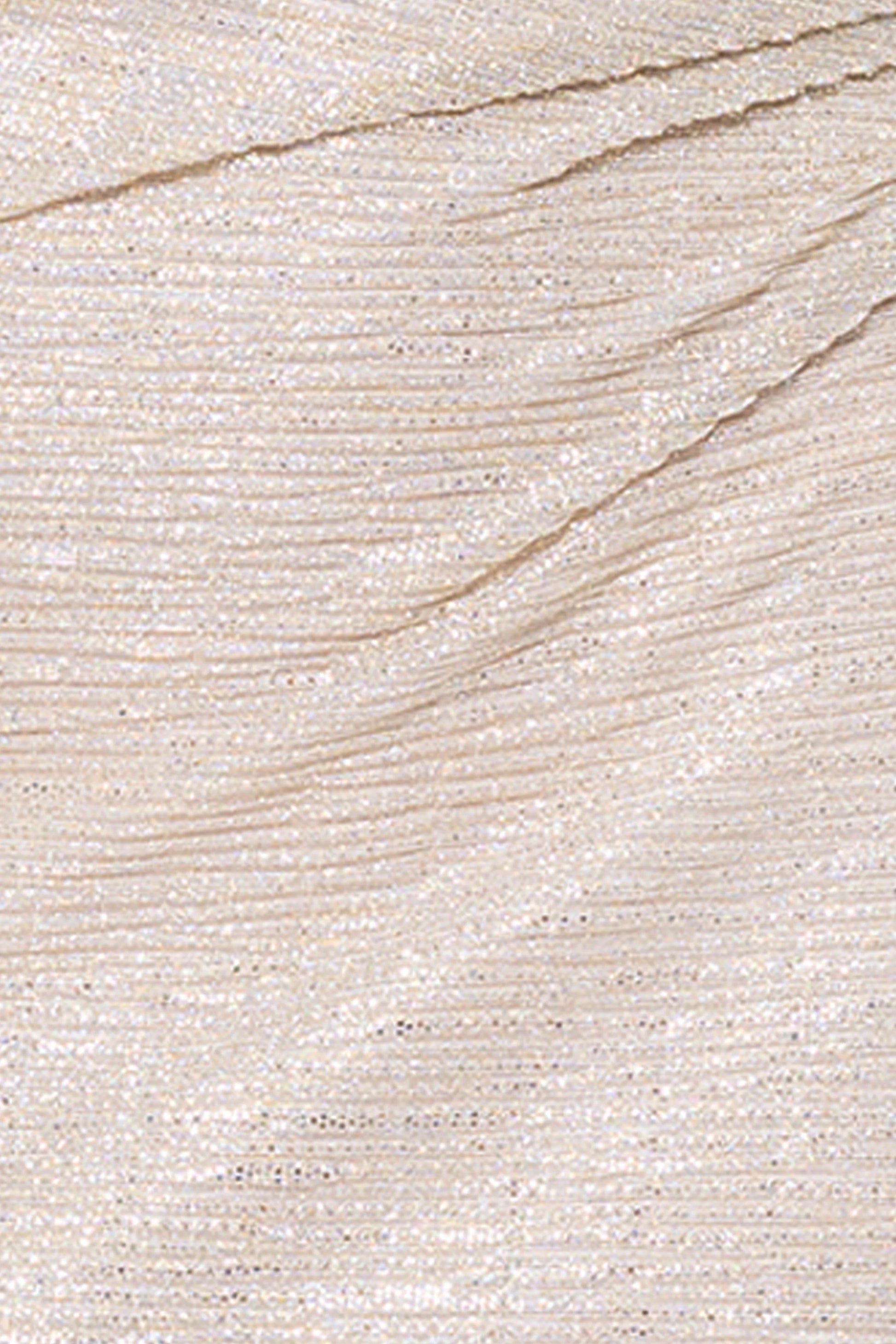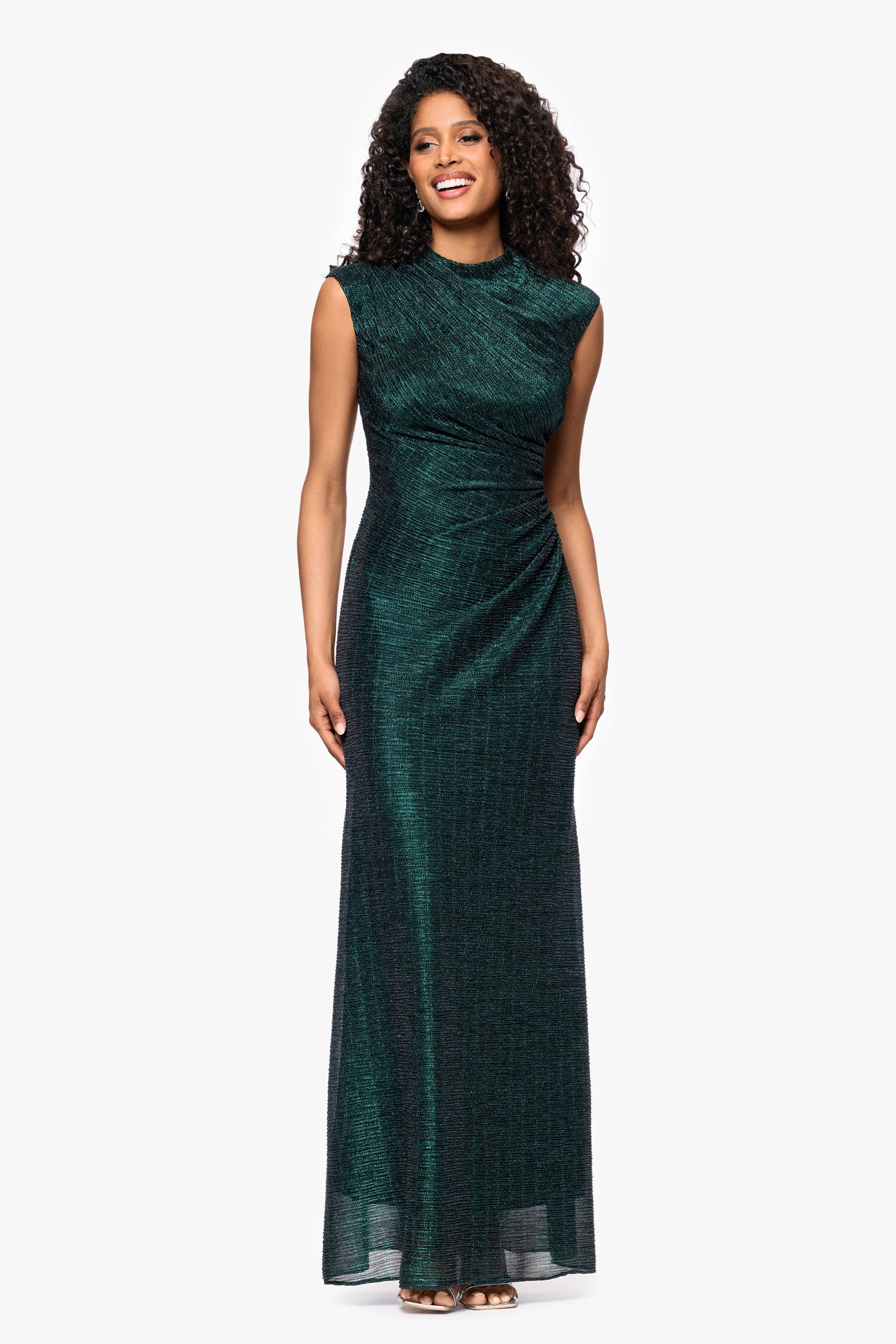 Petite "Bethany" Crinkle Metallic Rouched Floor Length Dress