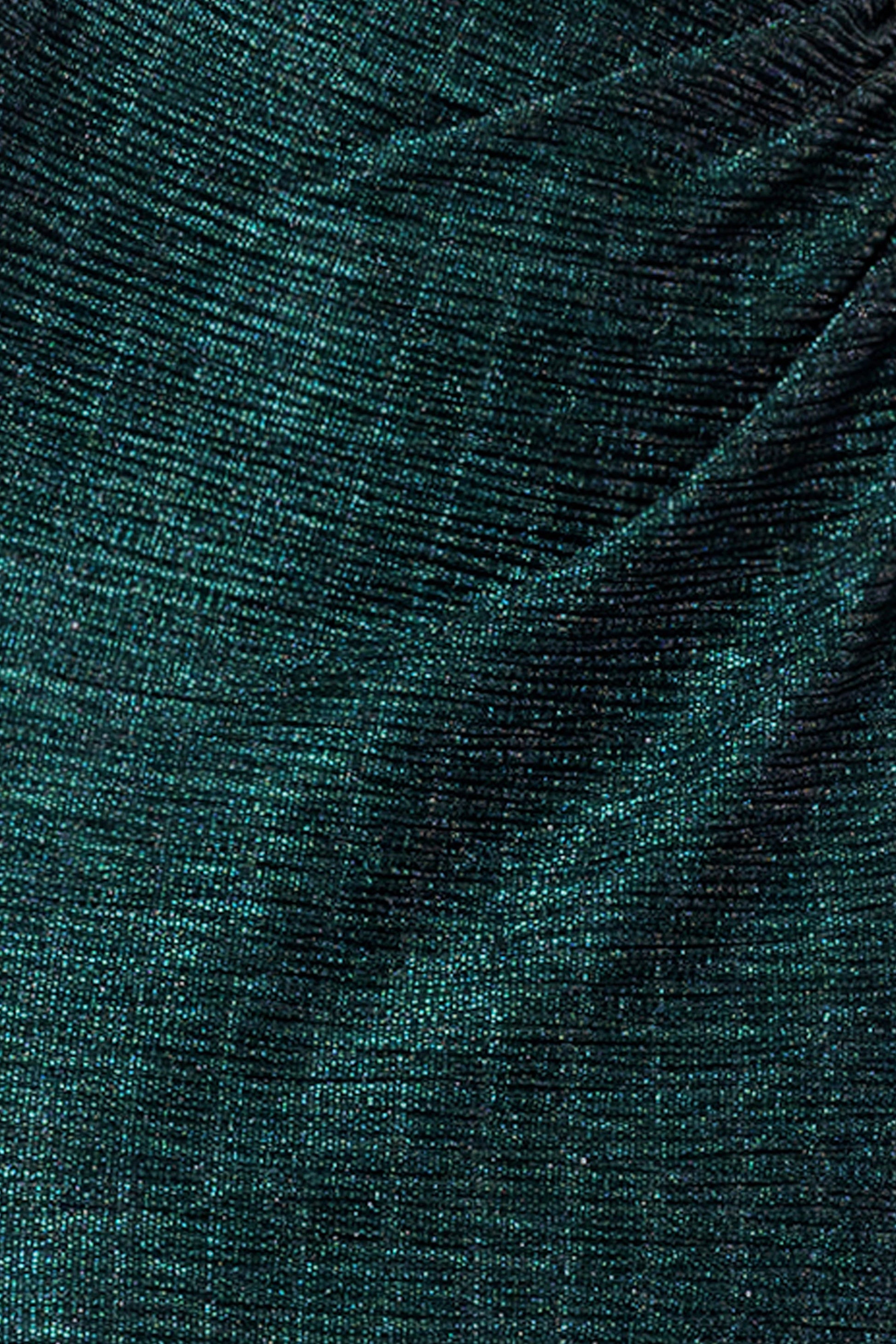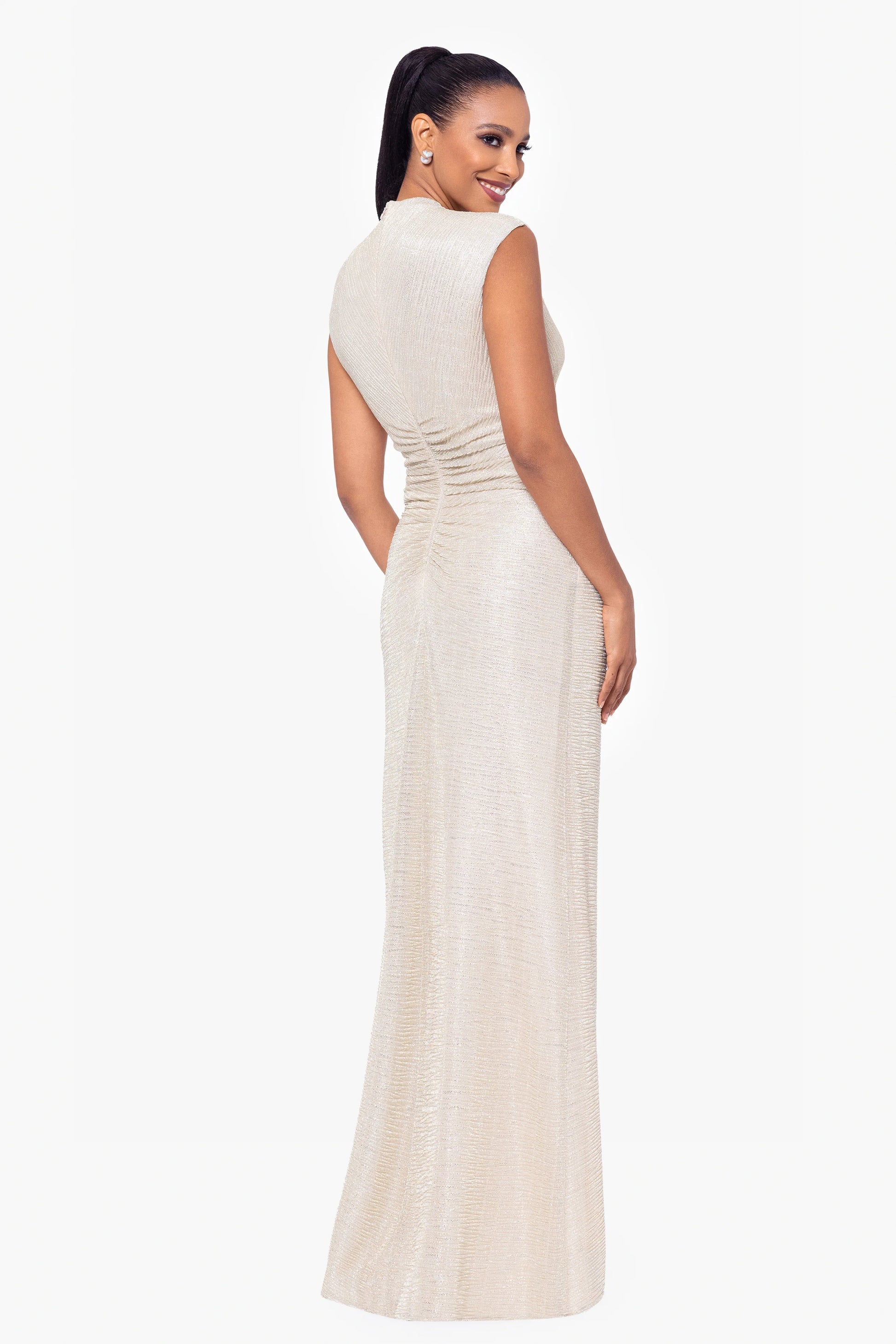 Petite "Bethany" Crinkle Metallic Rouched Floor Length Dress