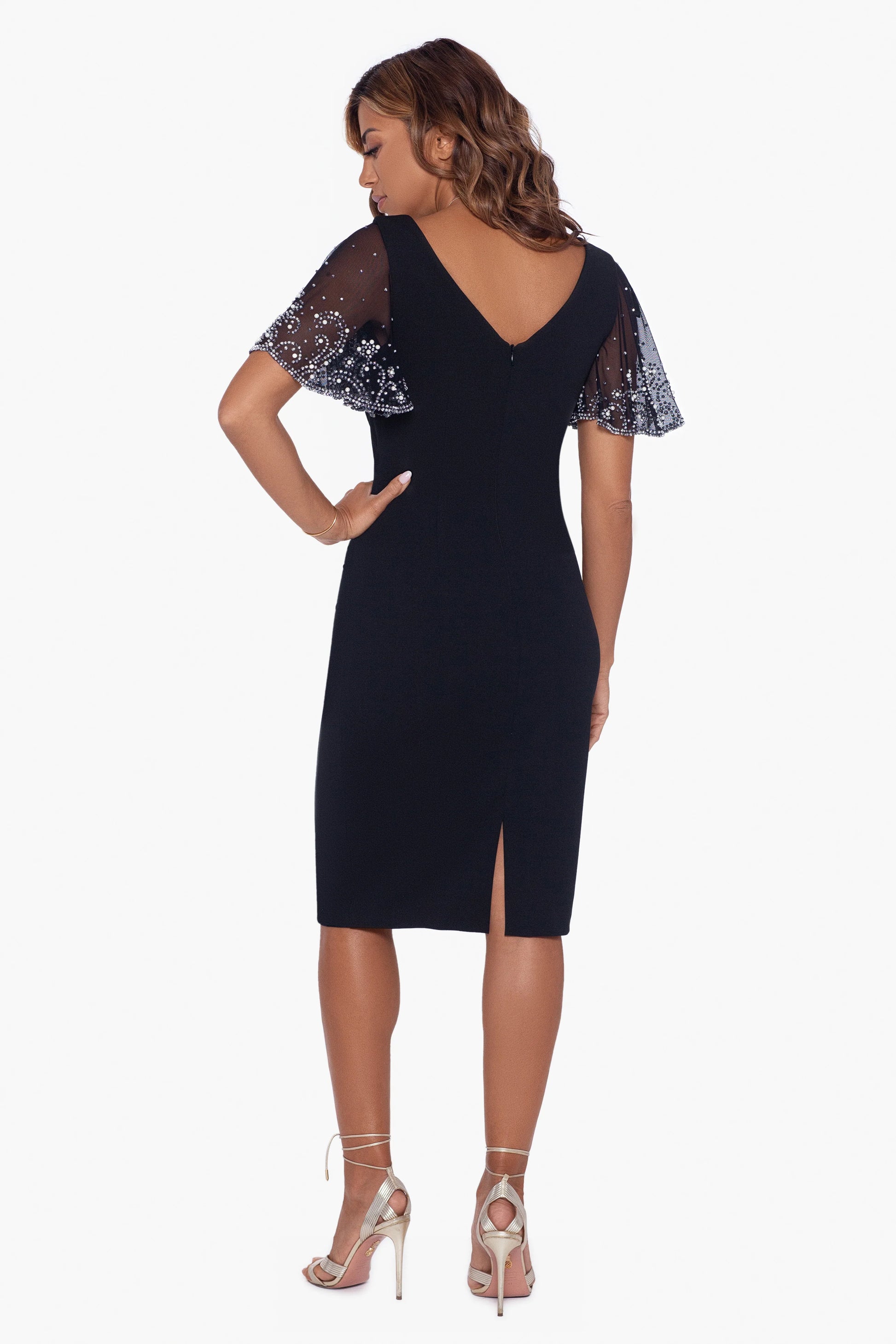 Petite "Emily" Short Scuba Crepe Beaded Sleeve Dress