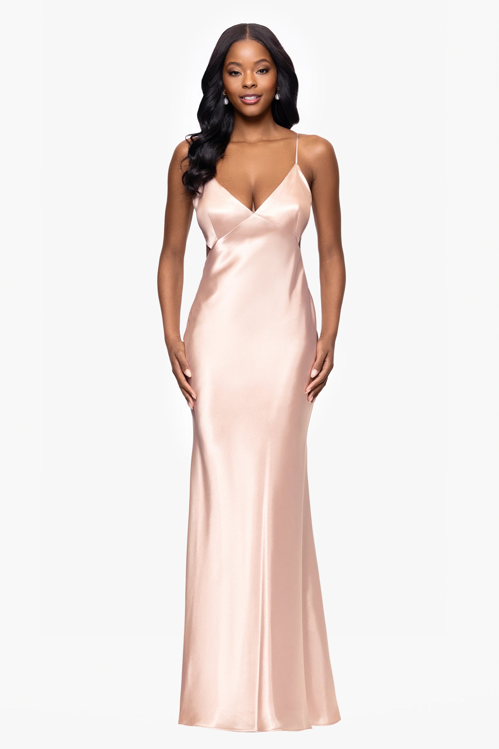 Petite "Grace" Long Spaghetti Strap Tieback Dress