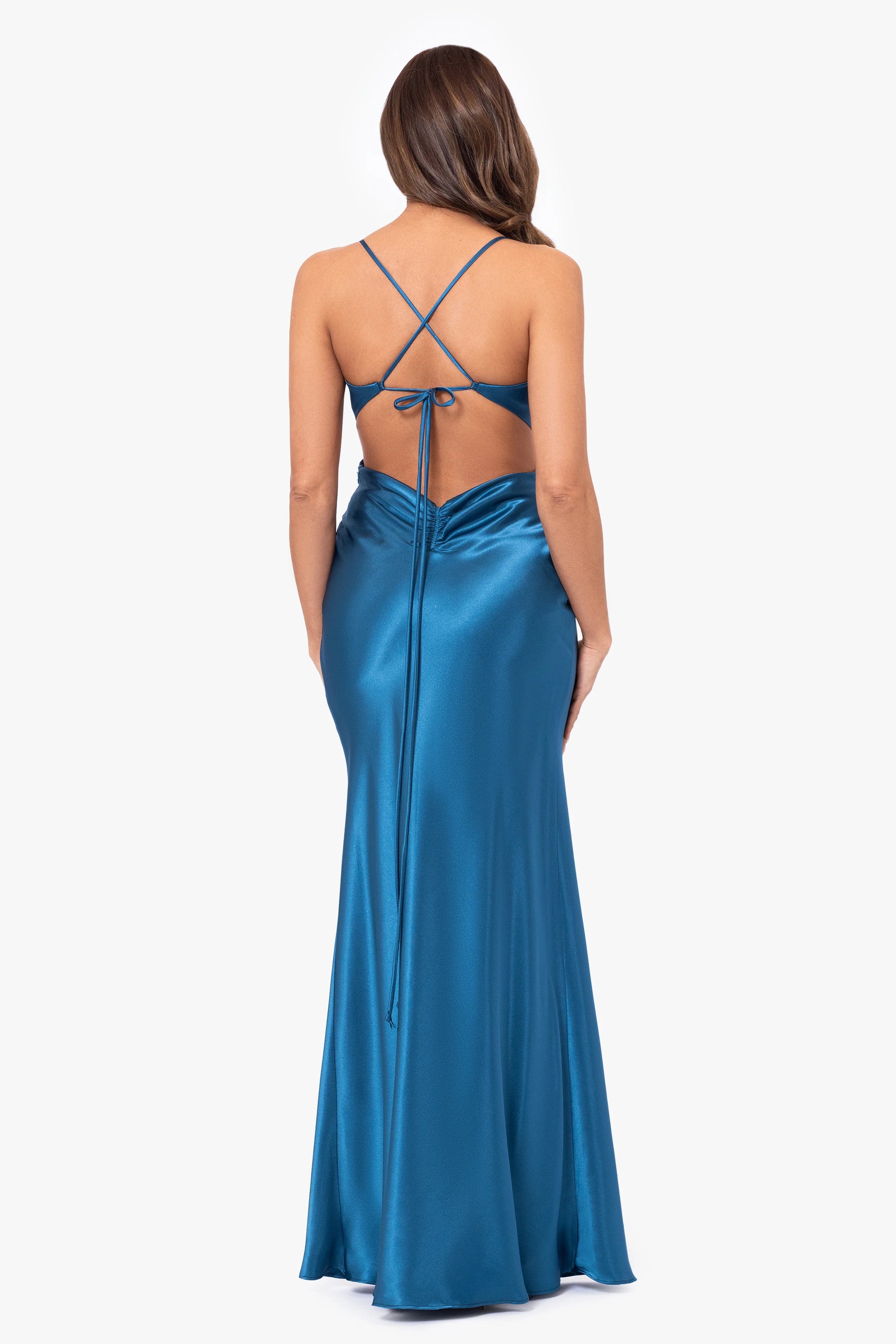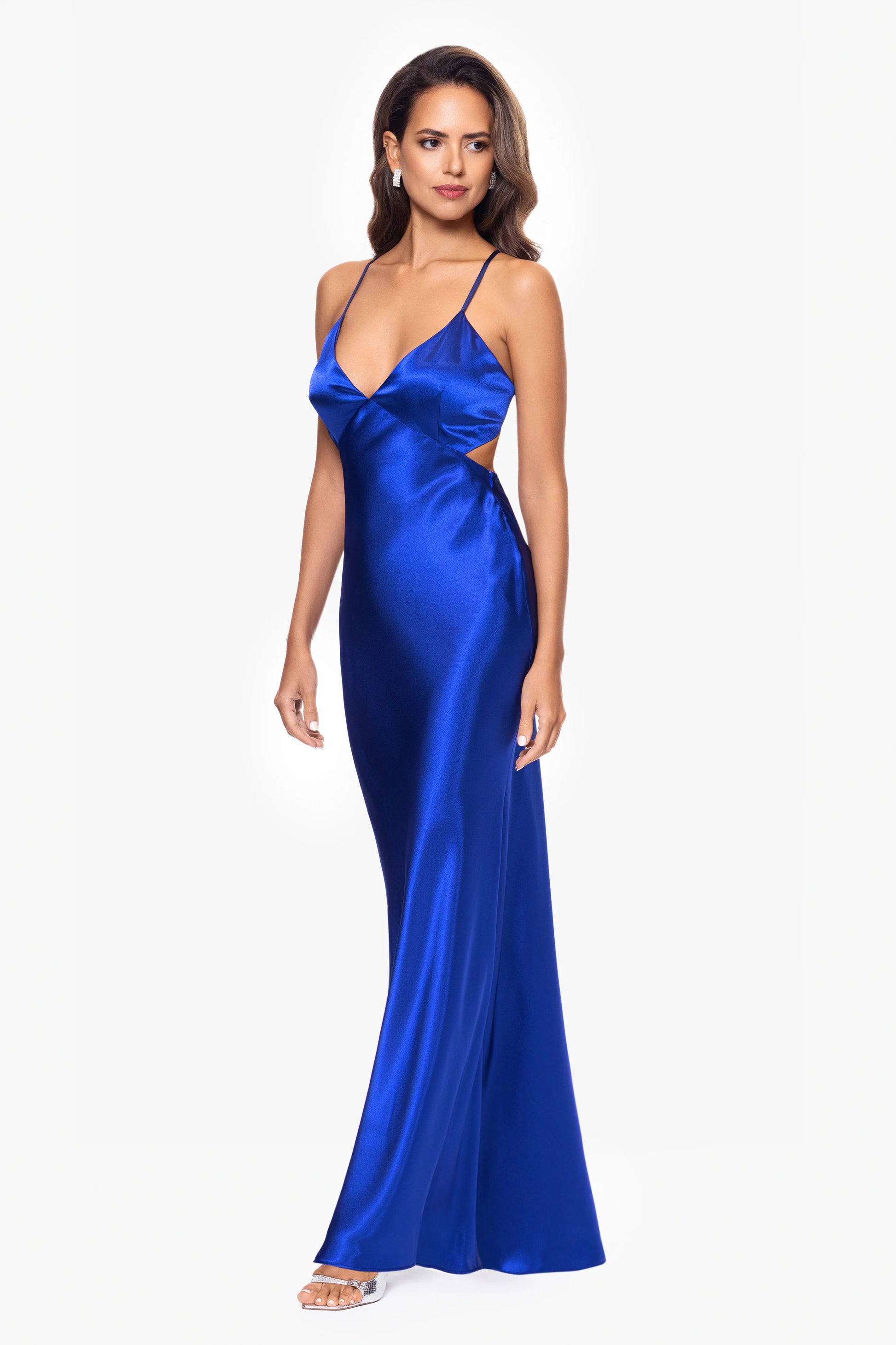 Petite "Grace" Long Spaghetti Strap Tieback Dress