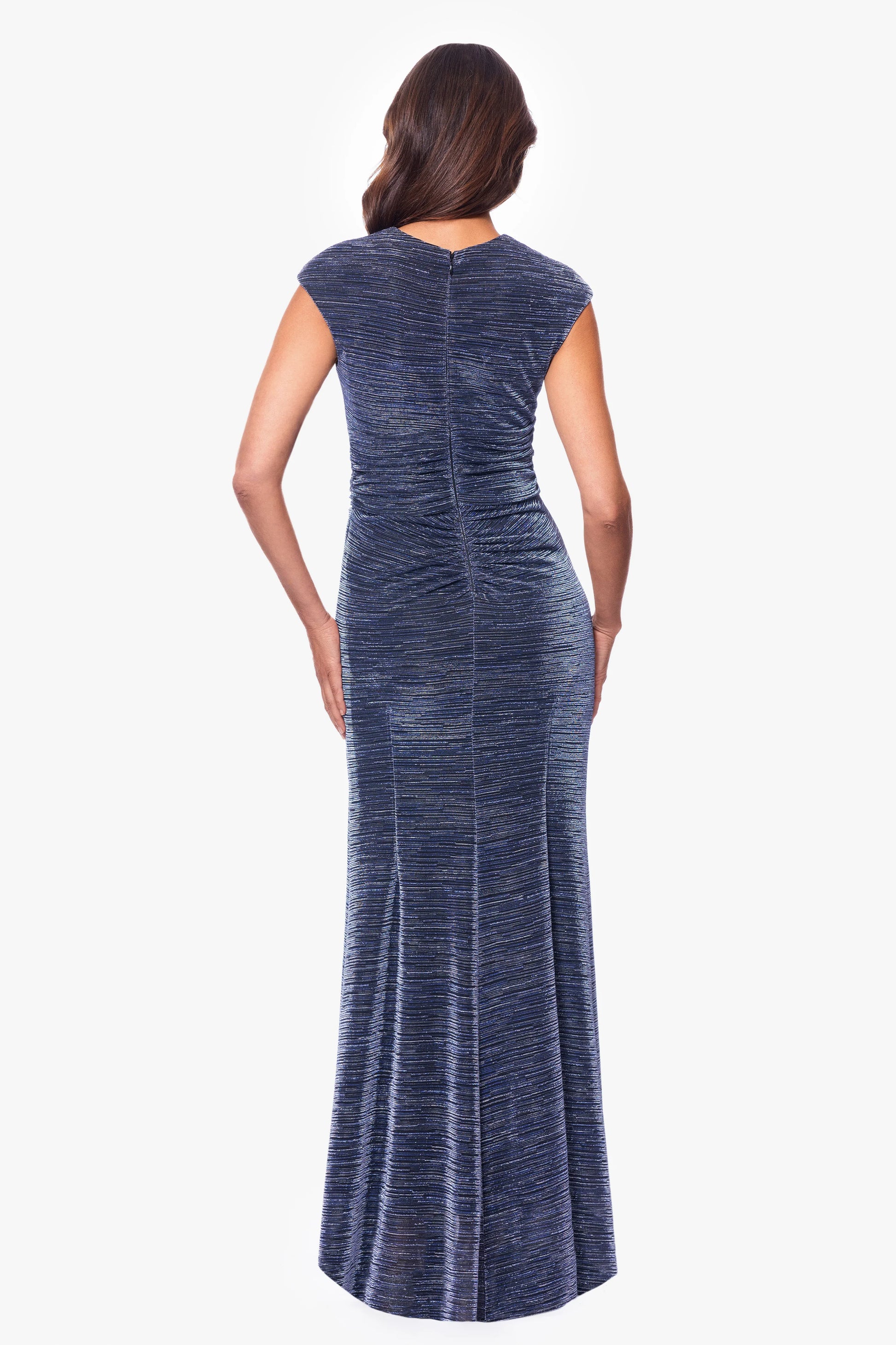 Petite "Margaret" Long Metallic Crinkle V-Neck Dress
