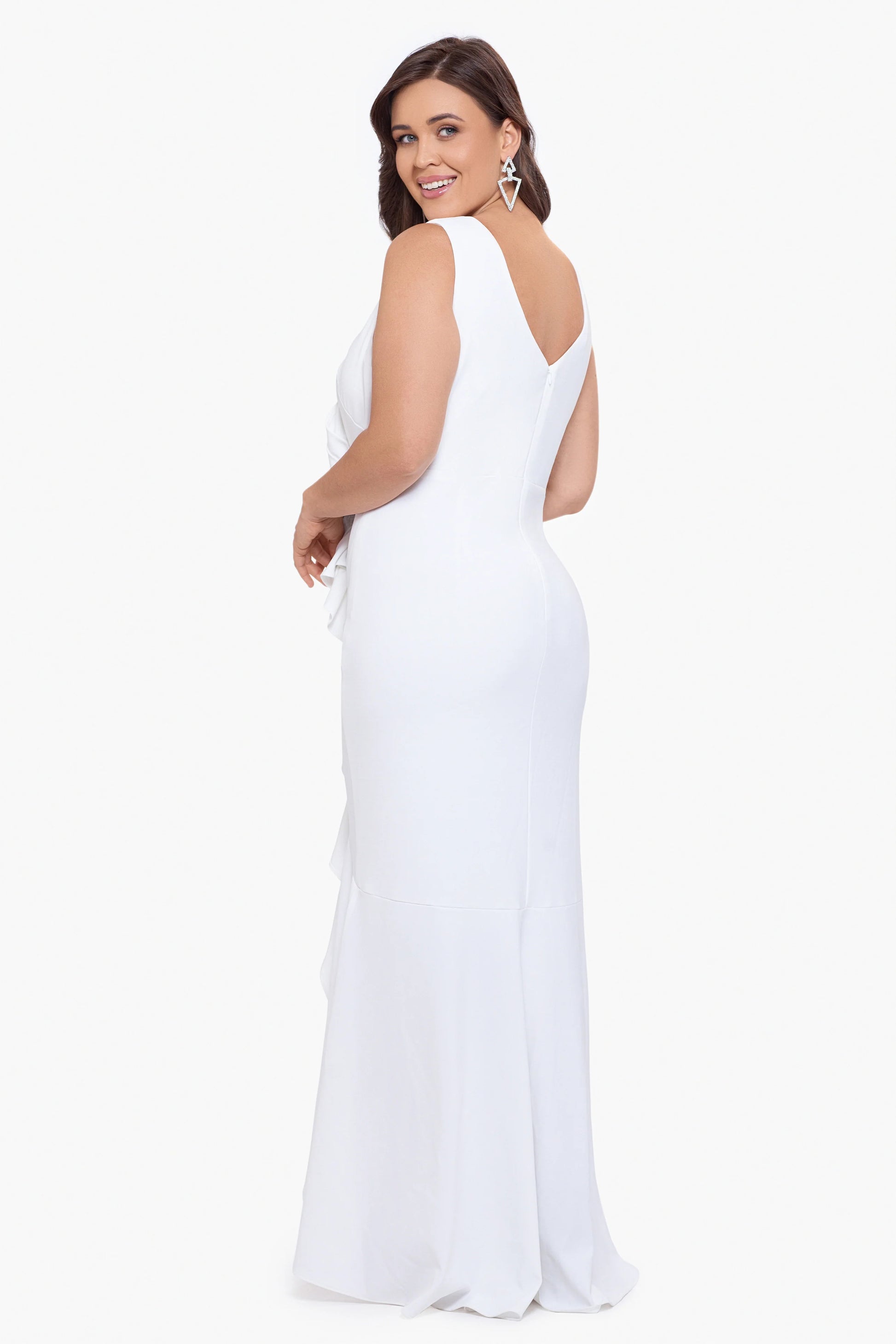 Plus "Candace" Long V- Neck Hi Low Cascade Dress