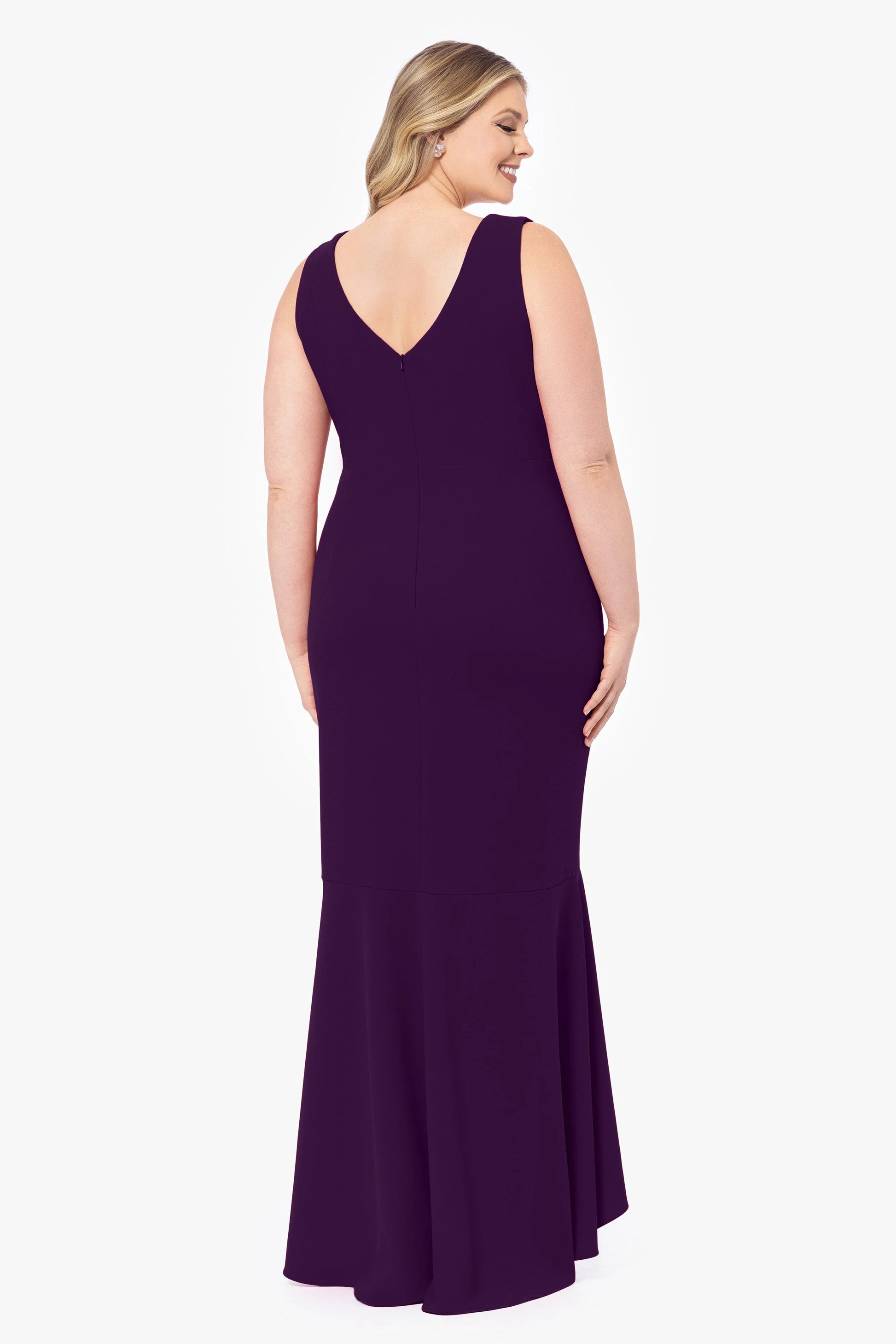 Plus "Candace" Long V- Neck Hi Low Cascade Dress