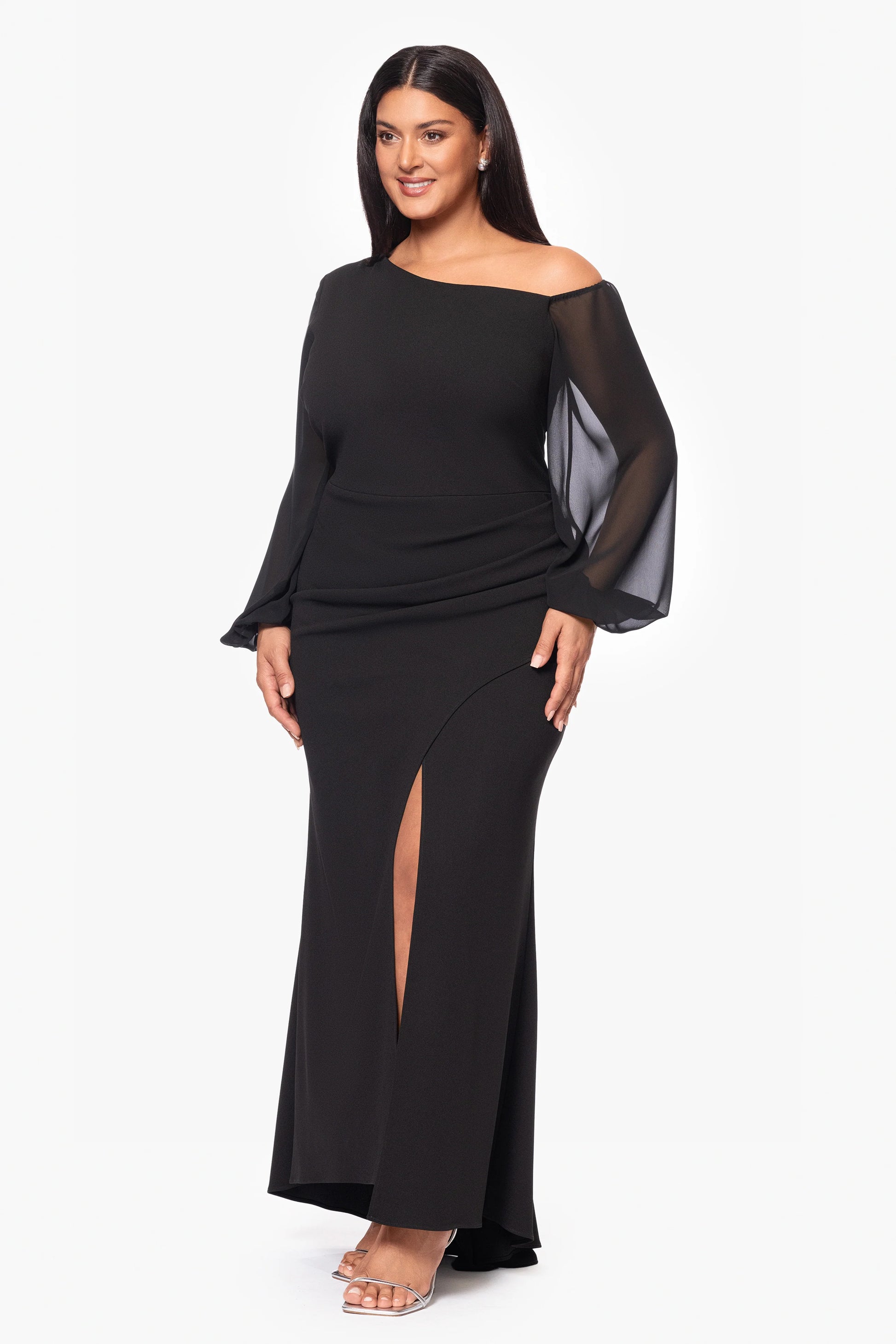 Plus "Donna" Long Off the Shoulder Illusion Sleeve Dress