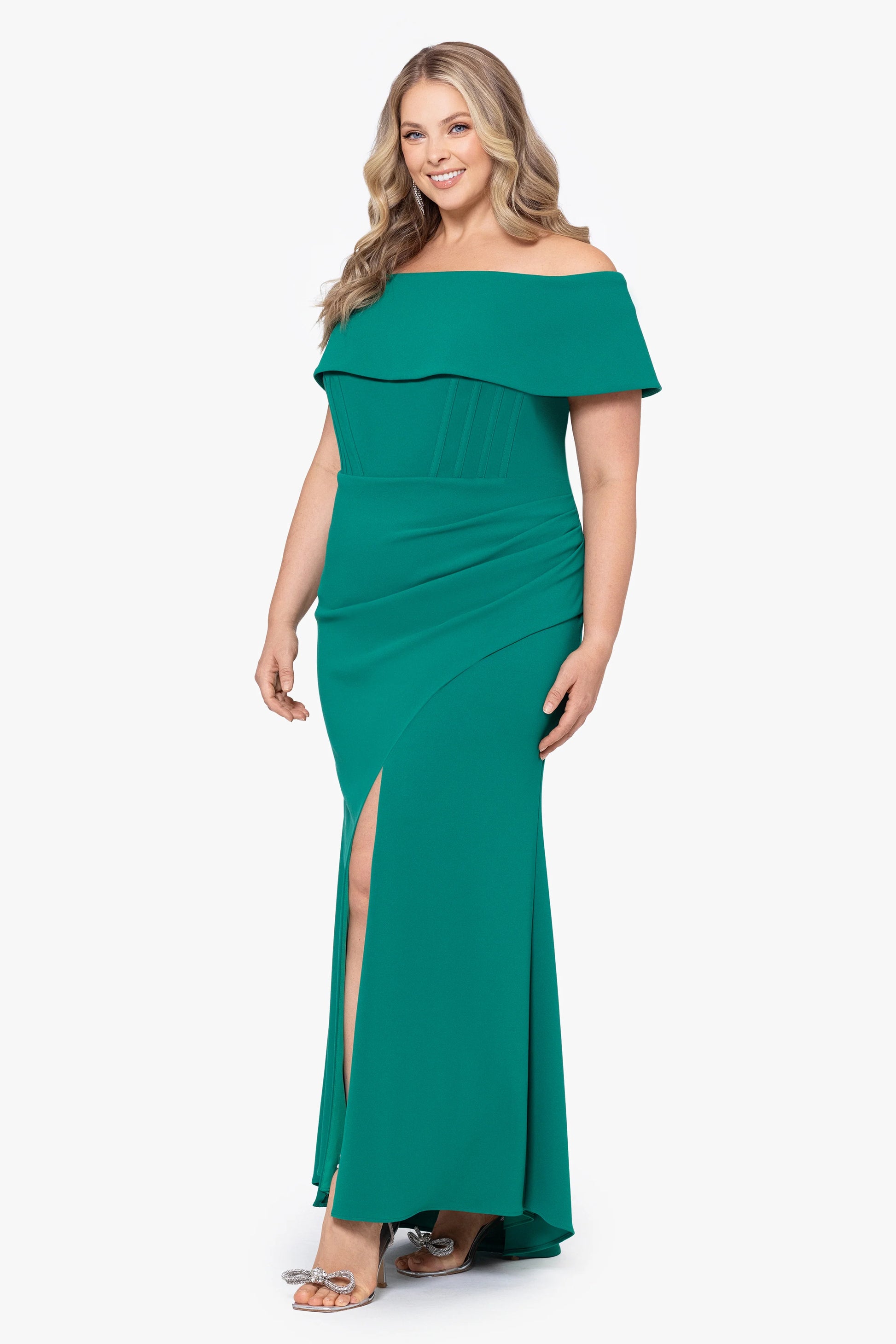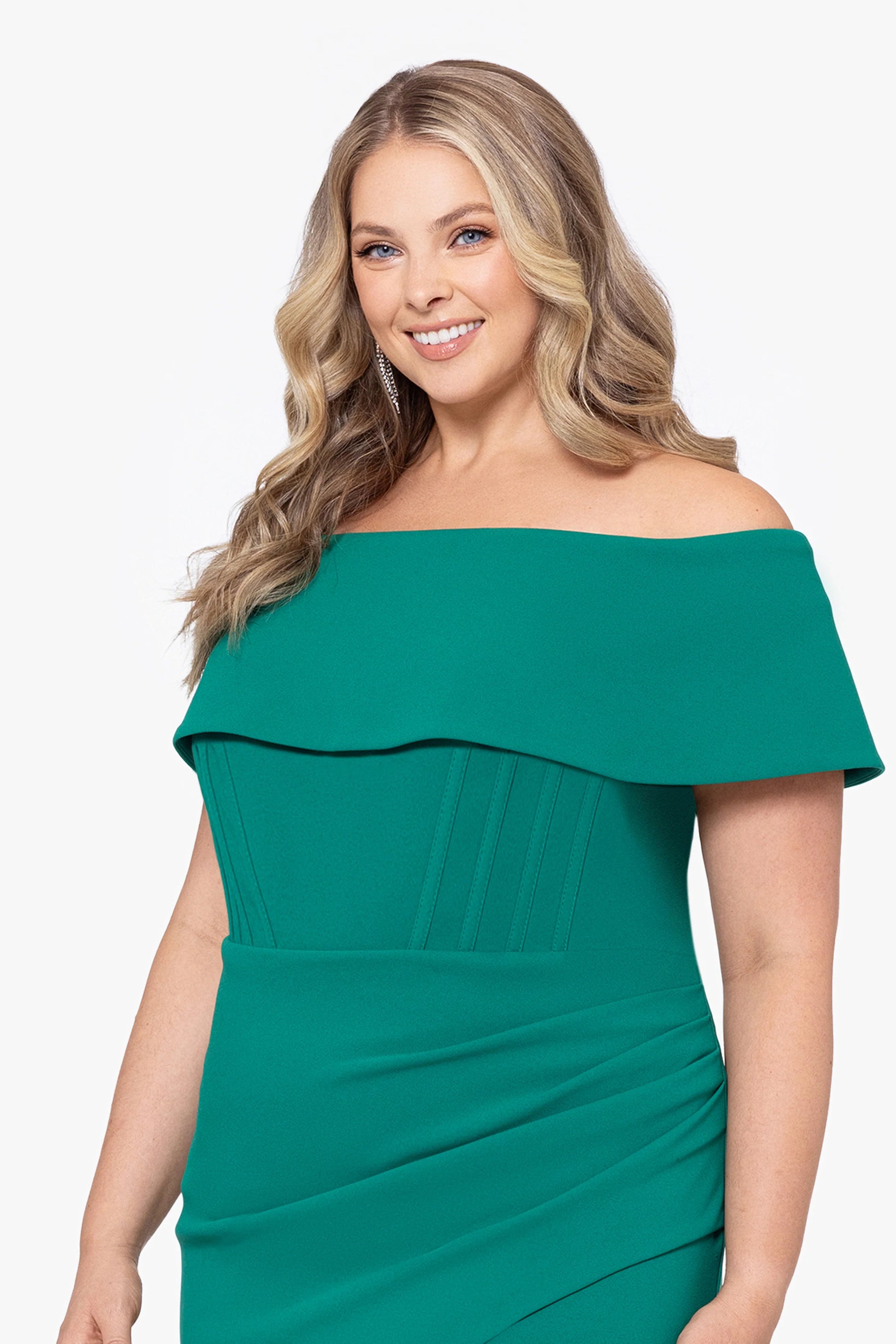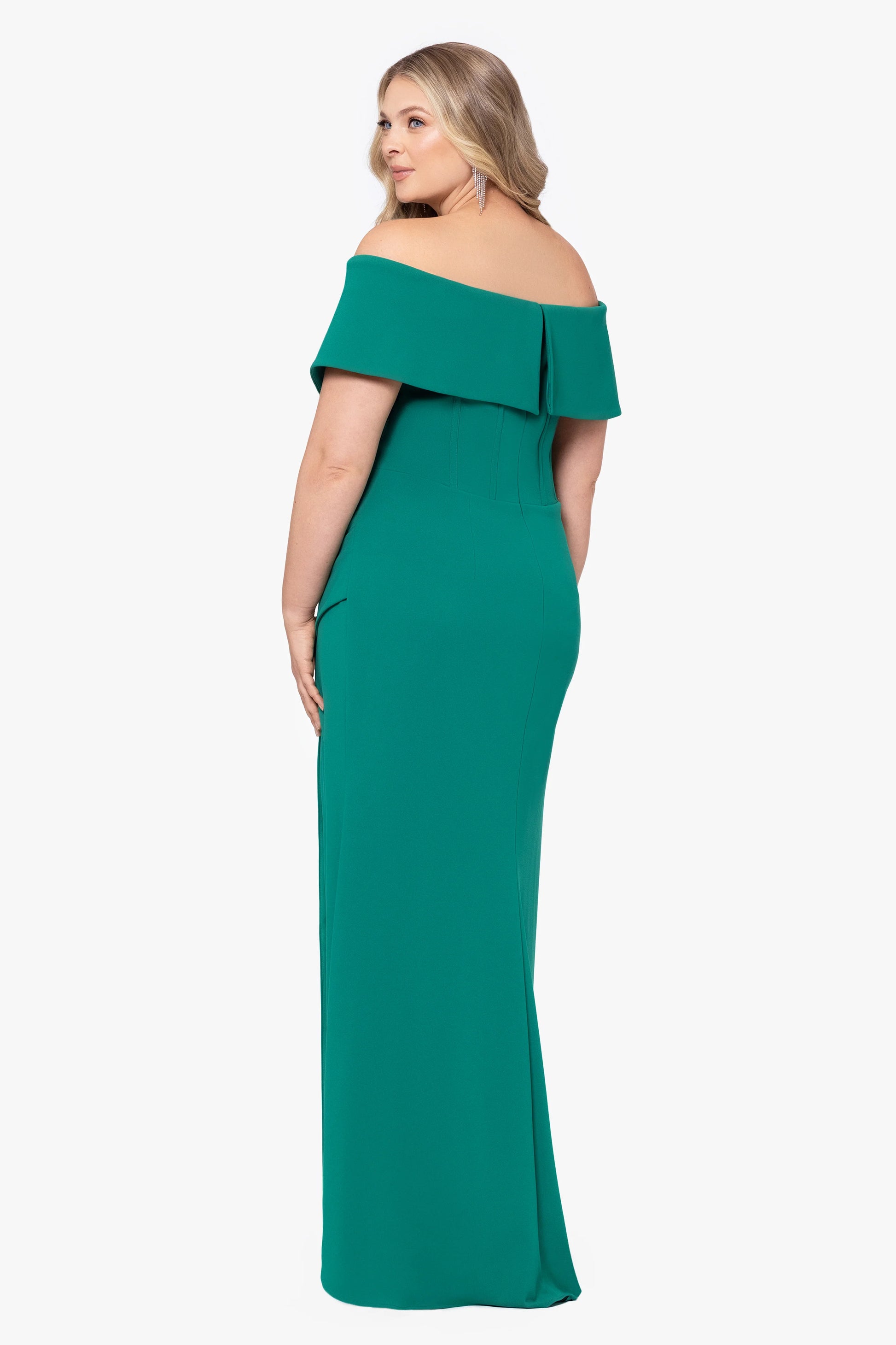 Plus "Ellie" Scuba Crepe Off the Shoulder Boning Gown