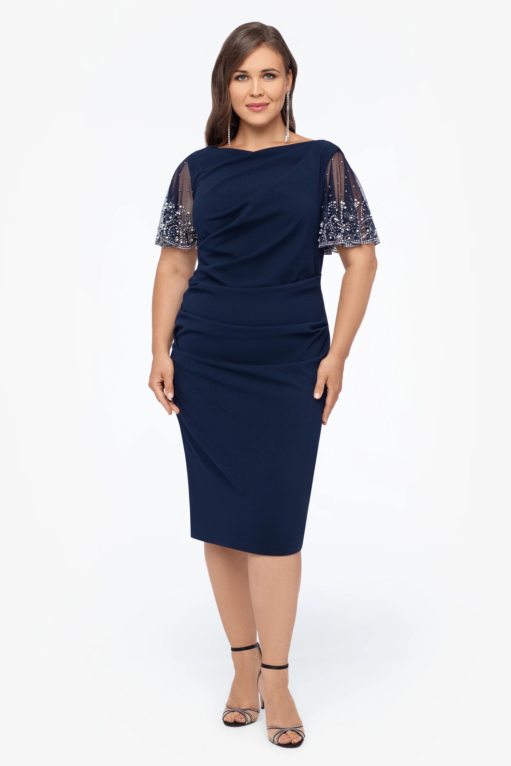 Plus "Emily" Short Scuba Crepe Beaded Sleeve Dress