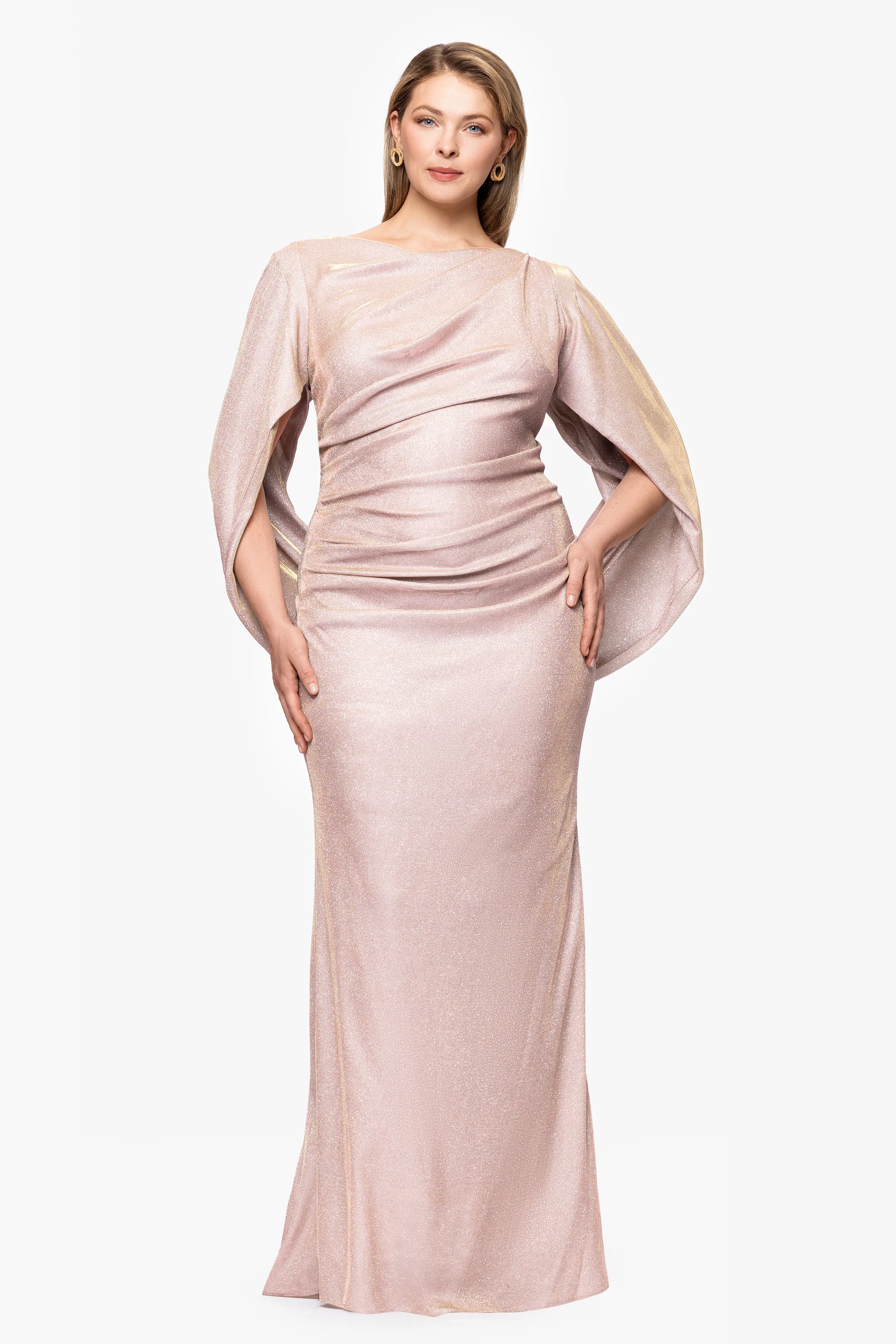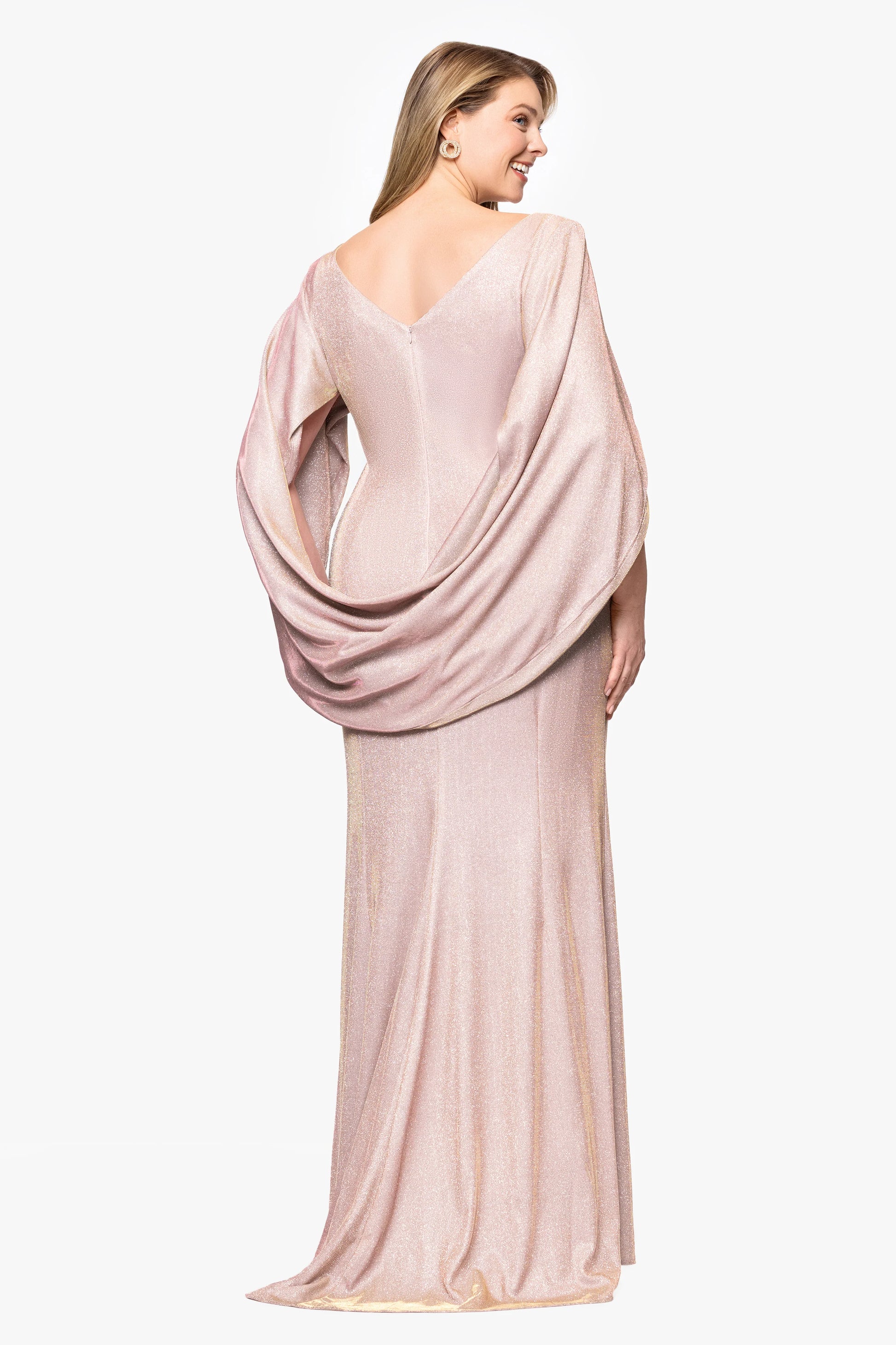 Plus "Gracie" Long Glitter Galaxy Cowl Neck Back Dress