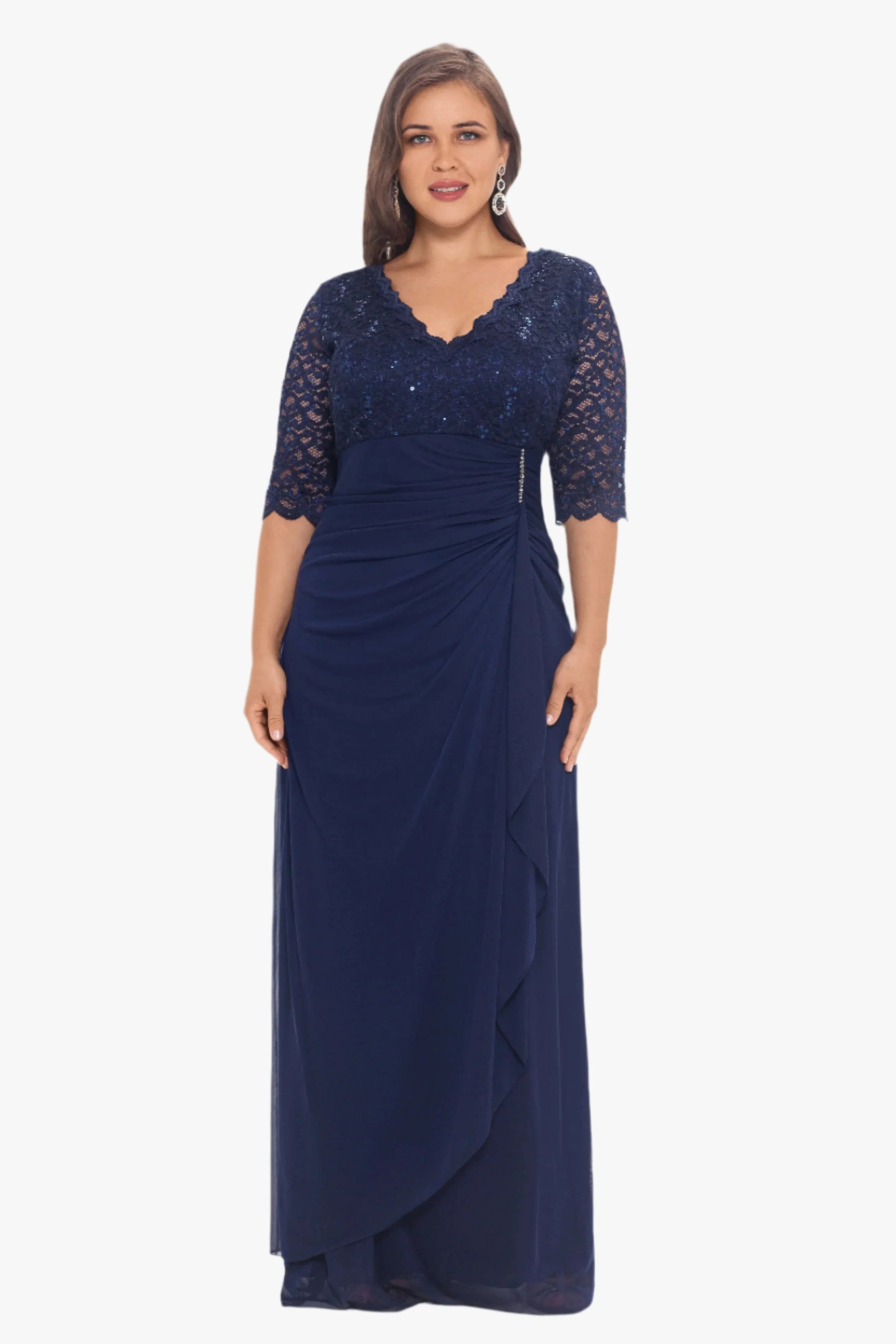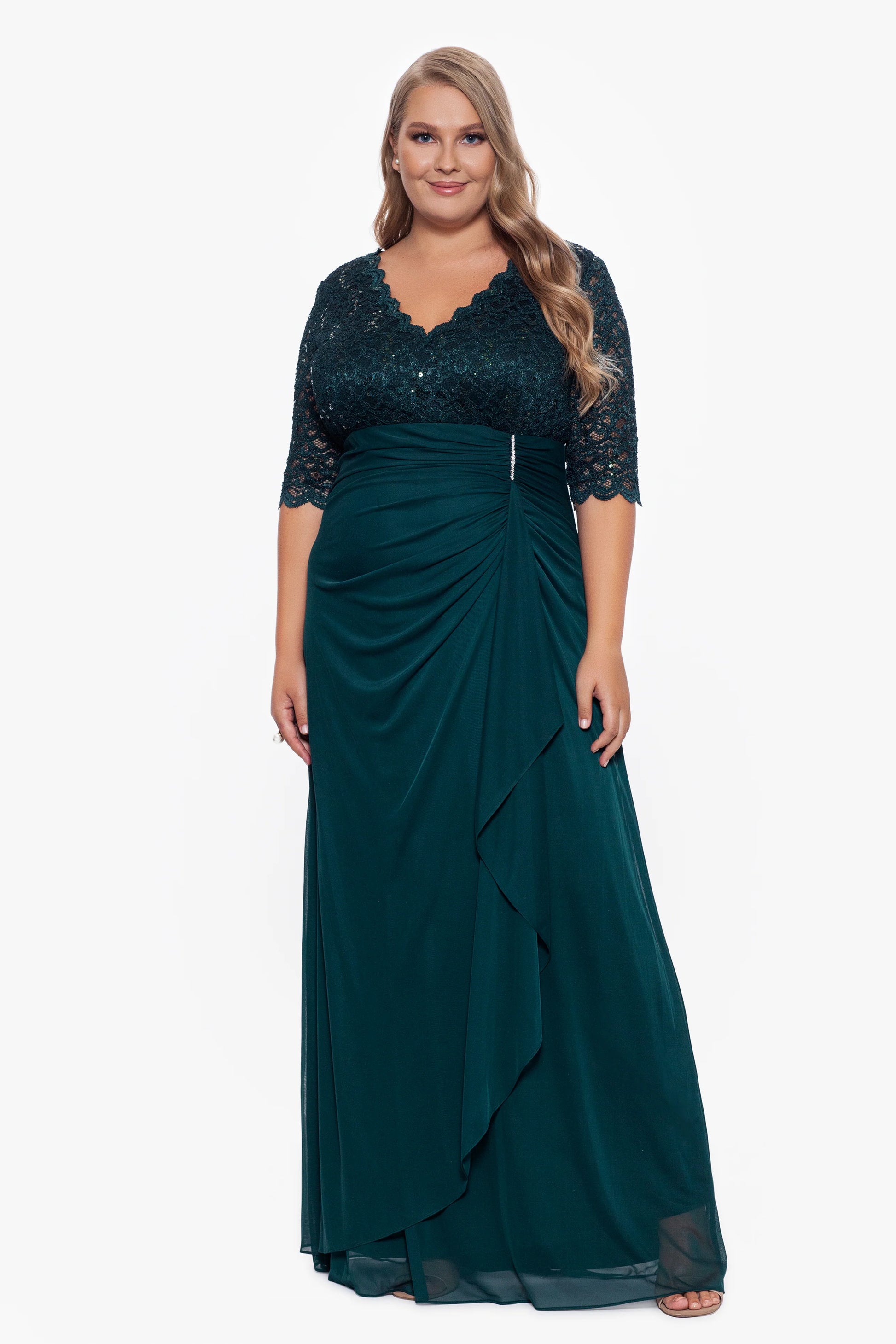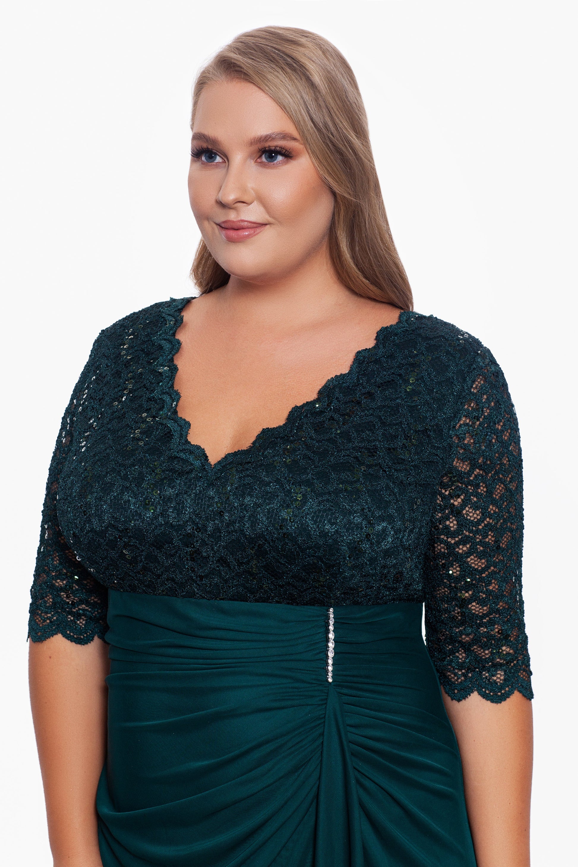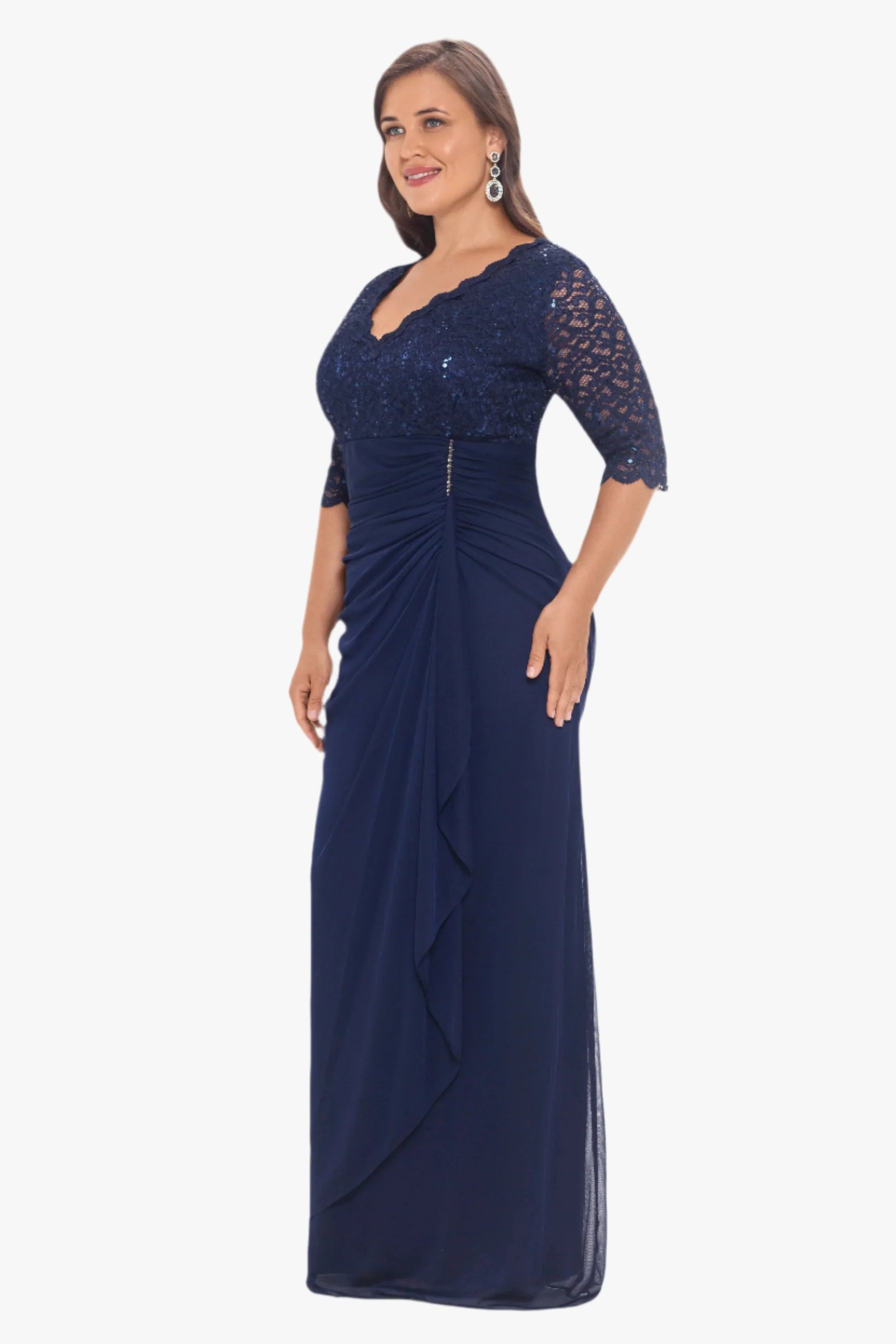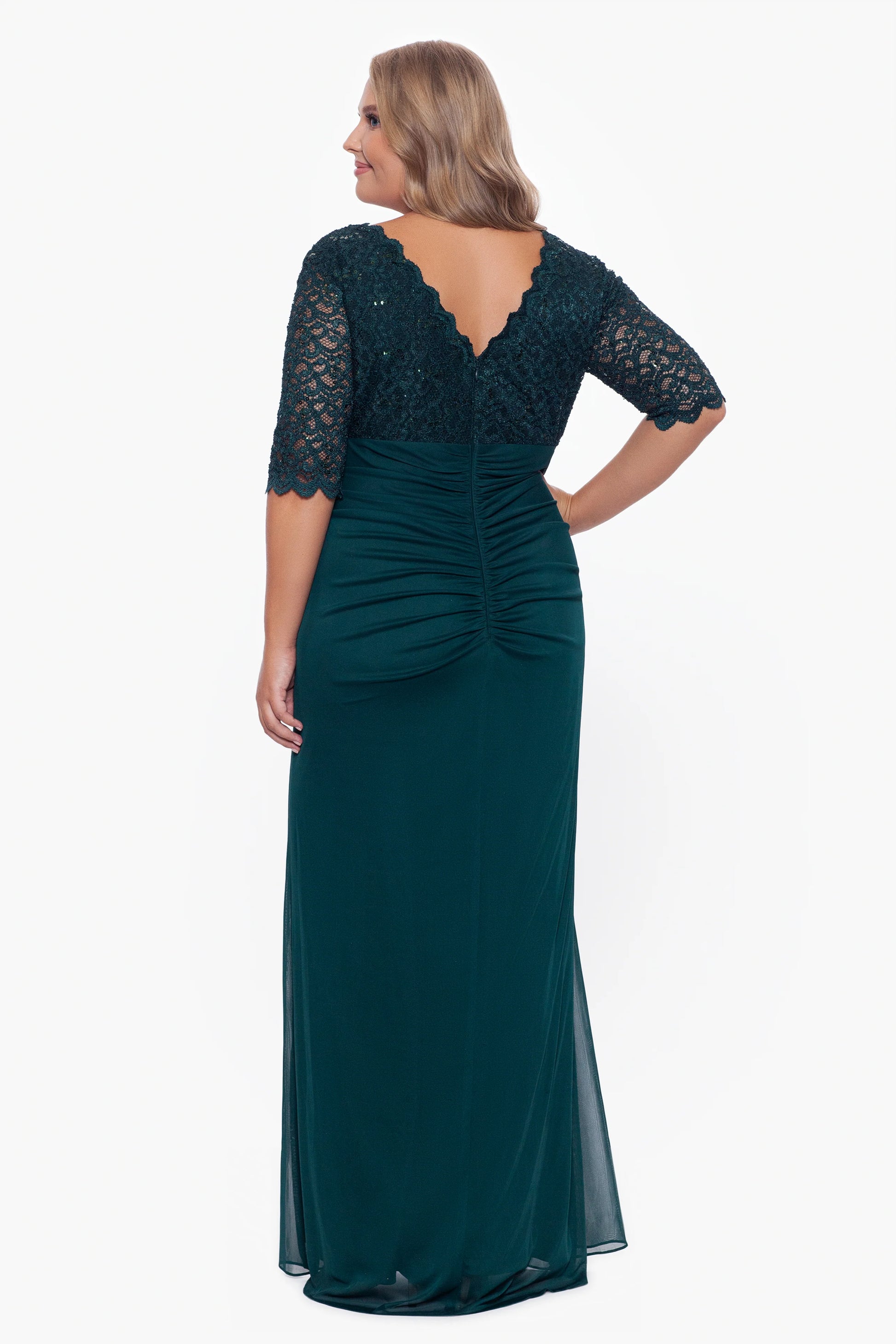 Plus "Johanna" 3/4 Sleeve Sheer Matte Jersey Long Dress