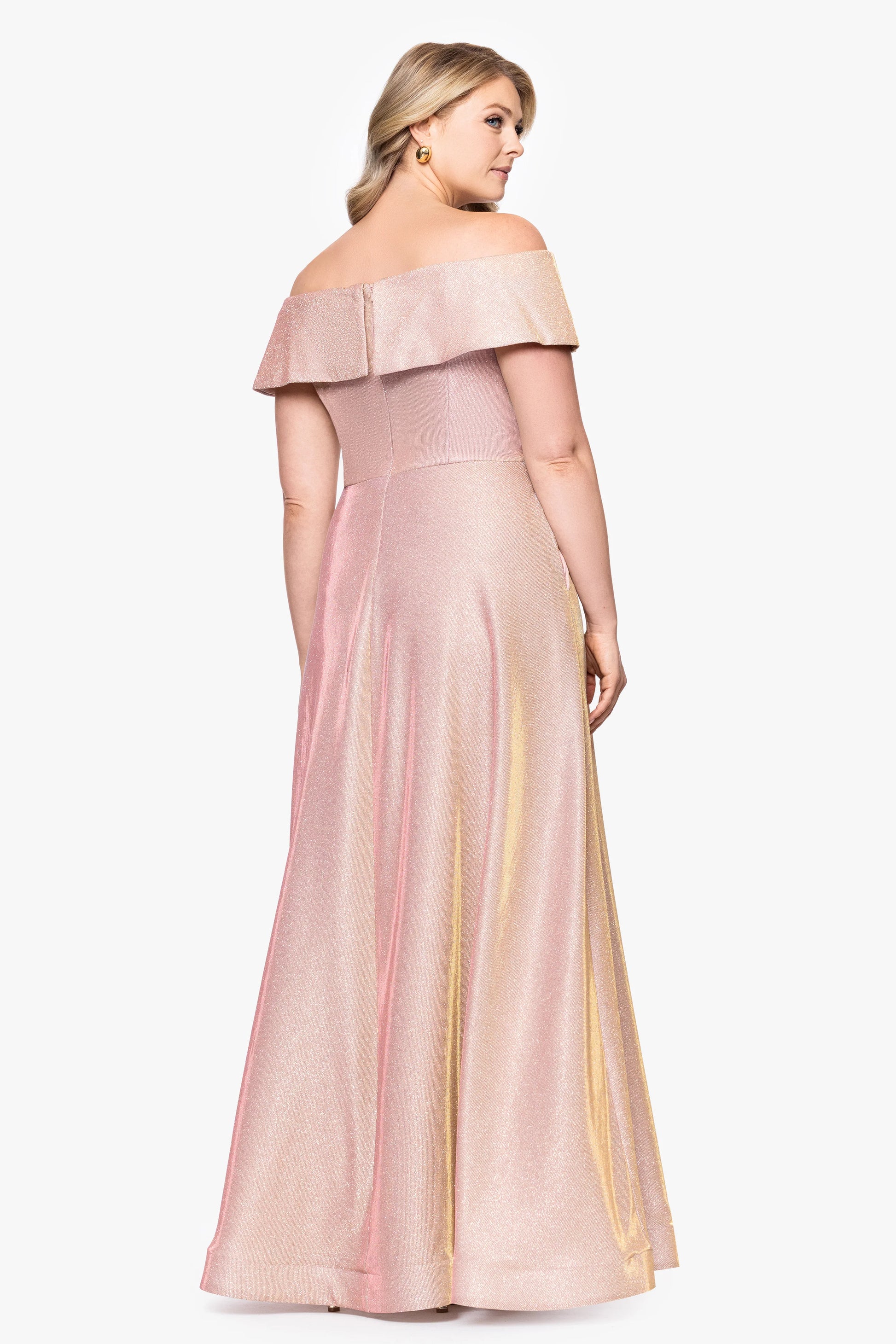 Plus "Kendra" Galaxy Glitter Off the Shoulder Floor Length Gown