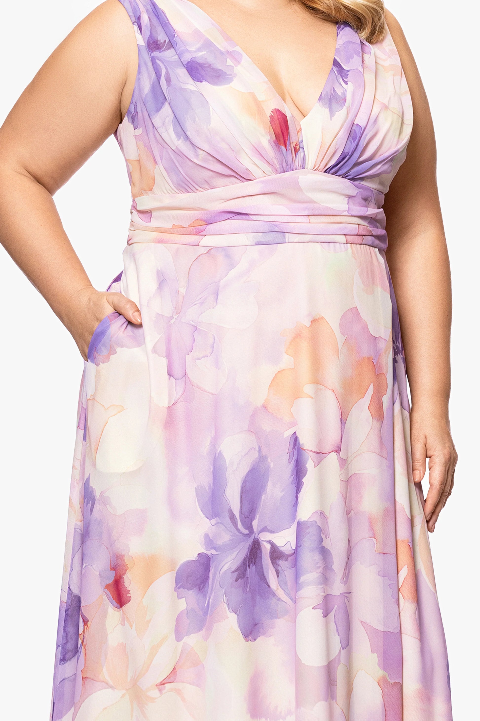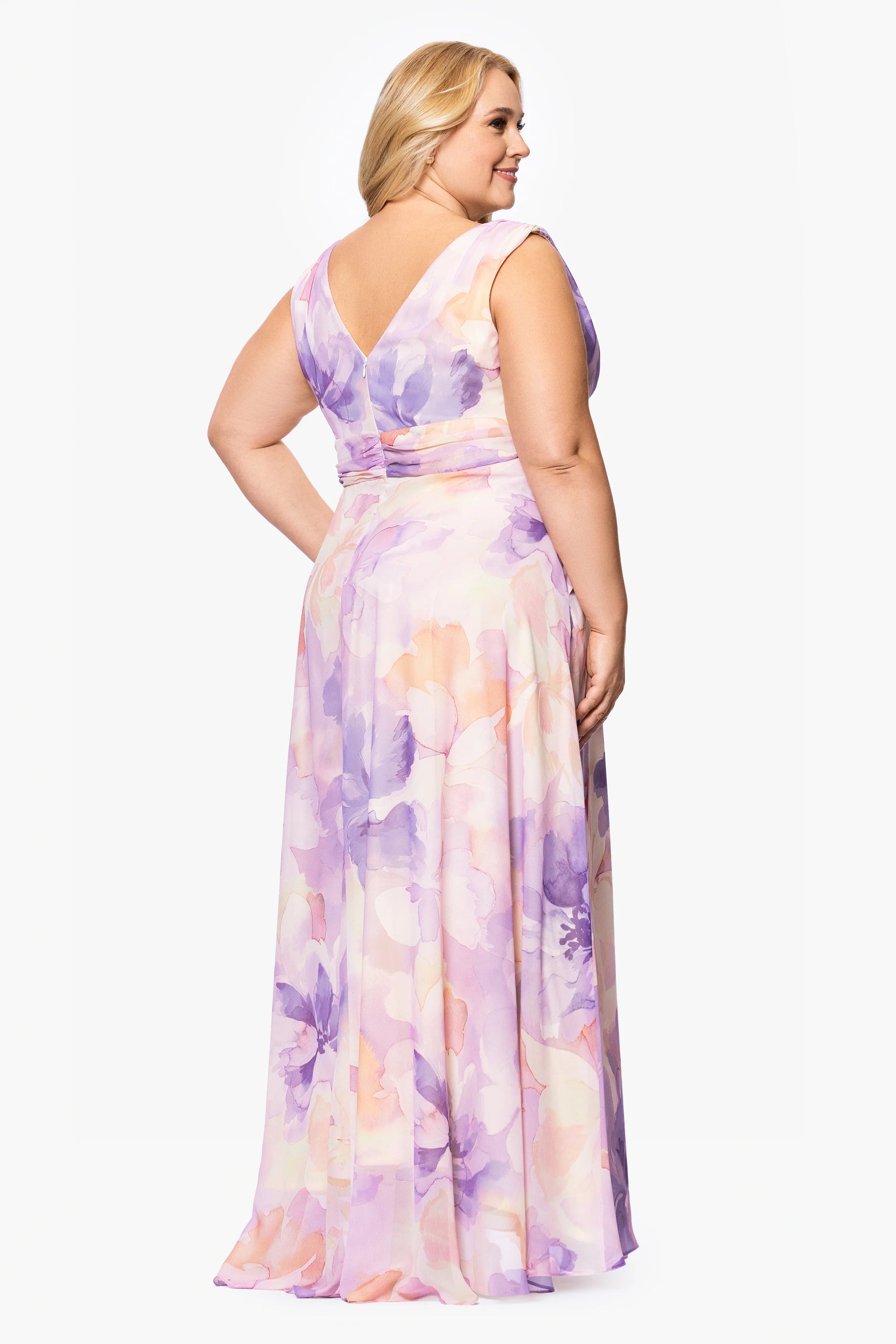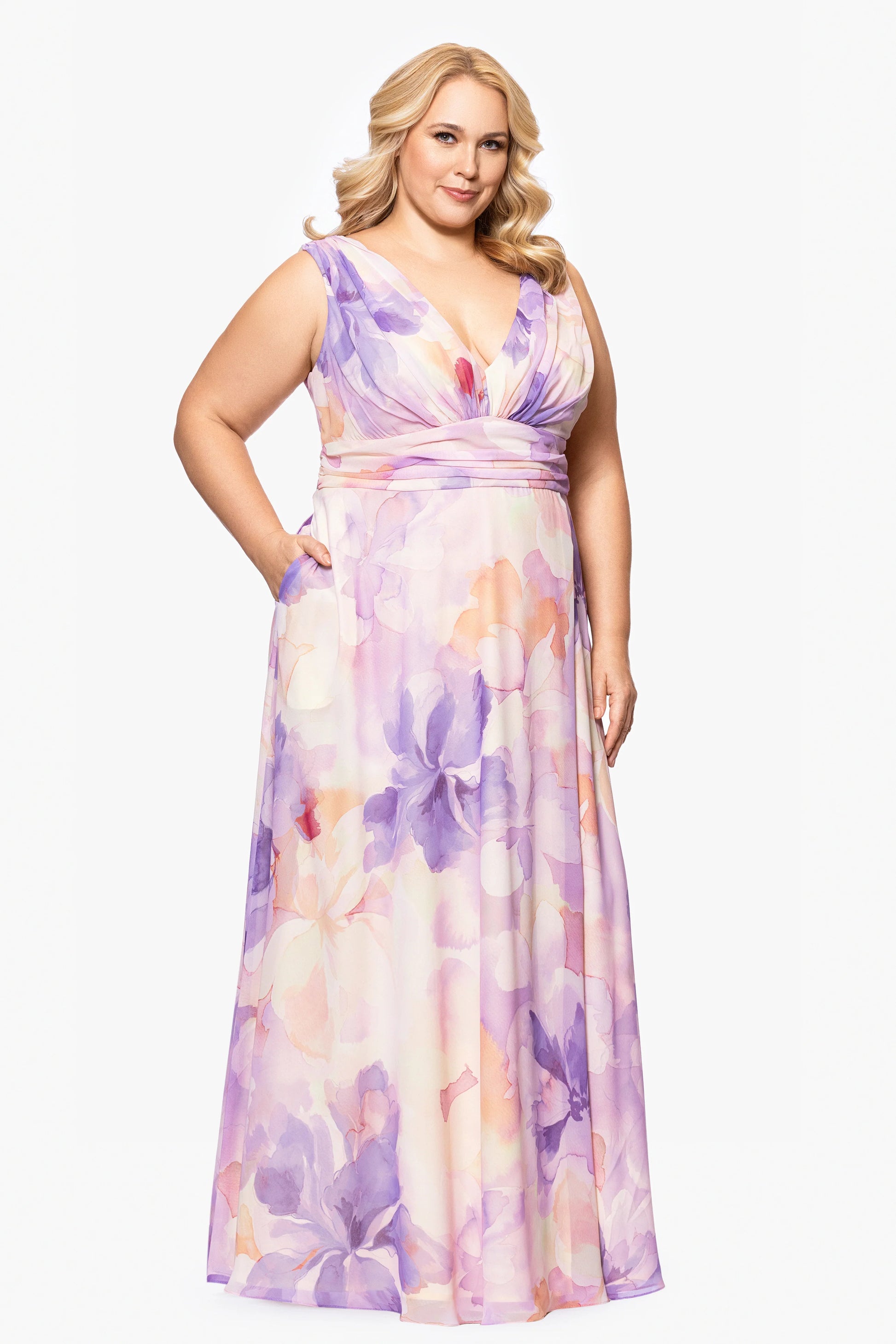 Plus "Kyla" Sleeveless V-Neck Floral Floor Length Chiffon Dress