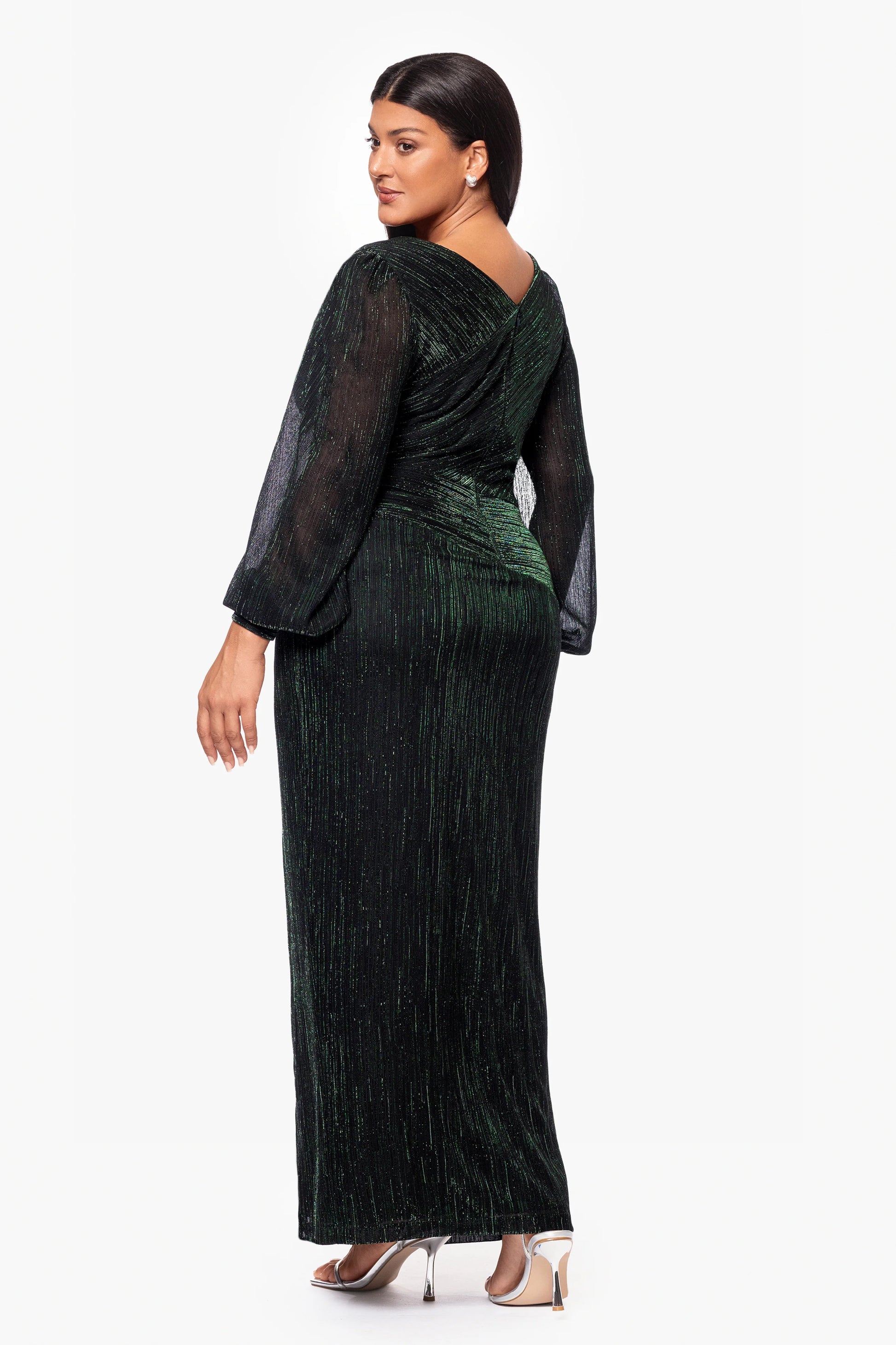 Plus "Siobhan" Long Metallic Long Sleeve Asymmetrical Neckline Dress
