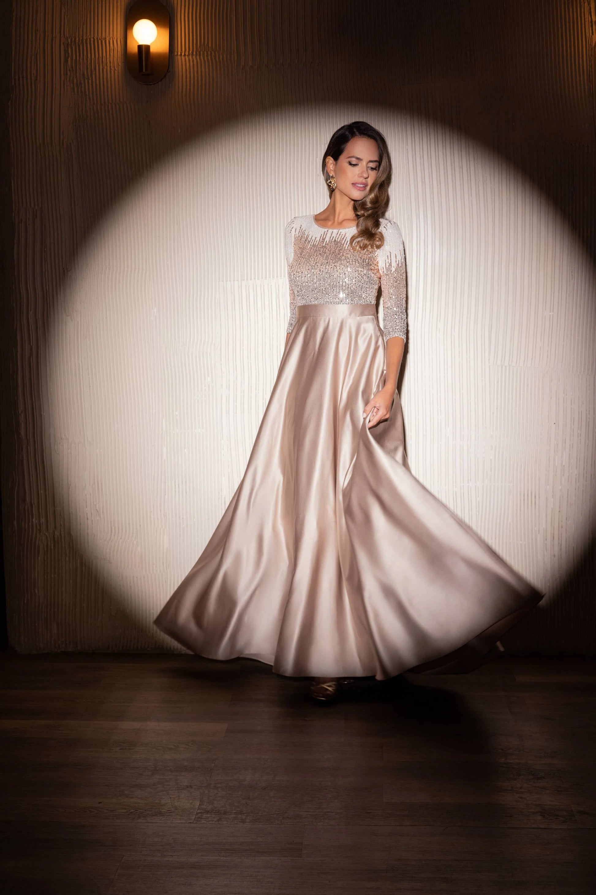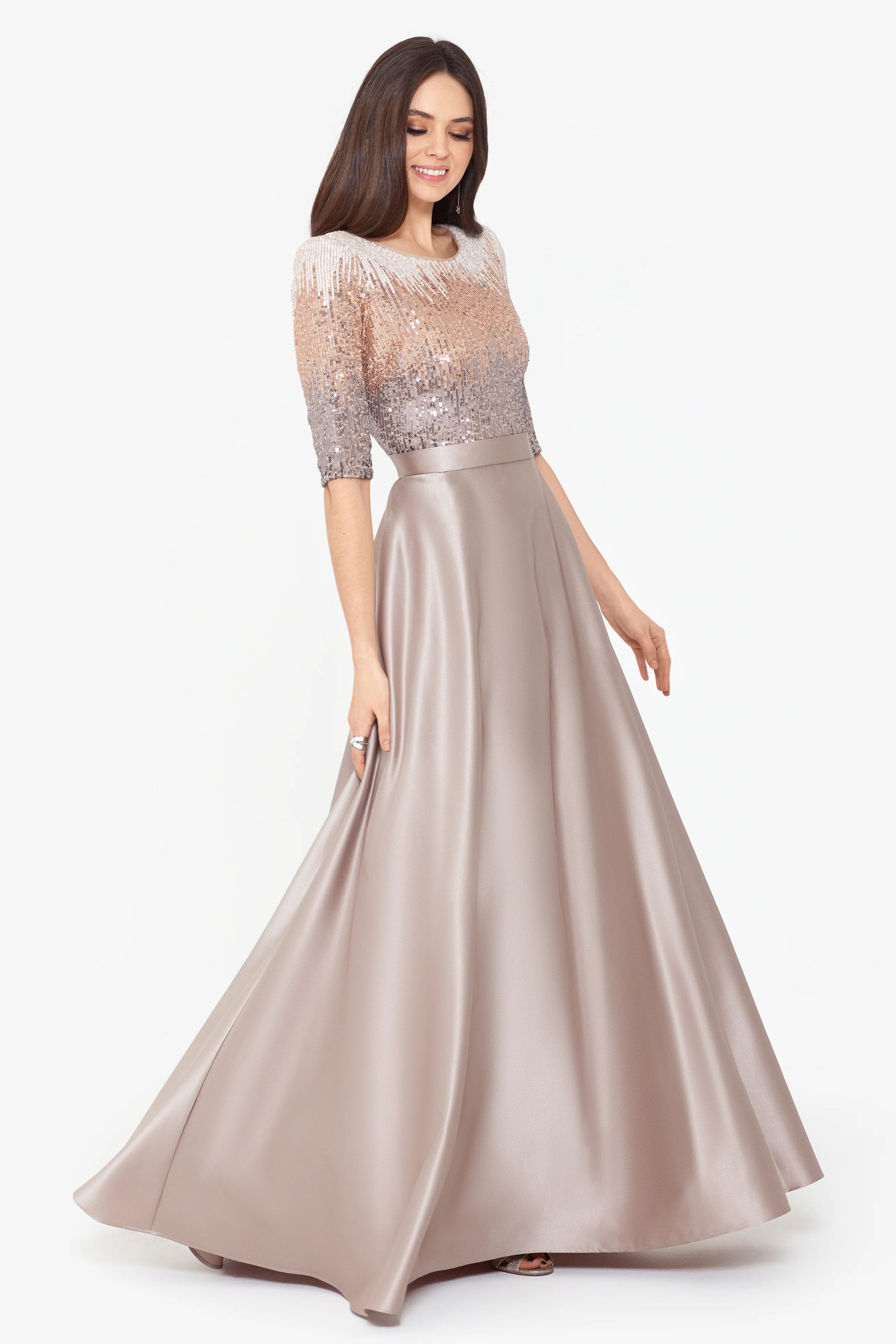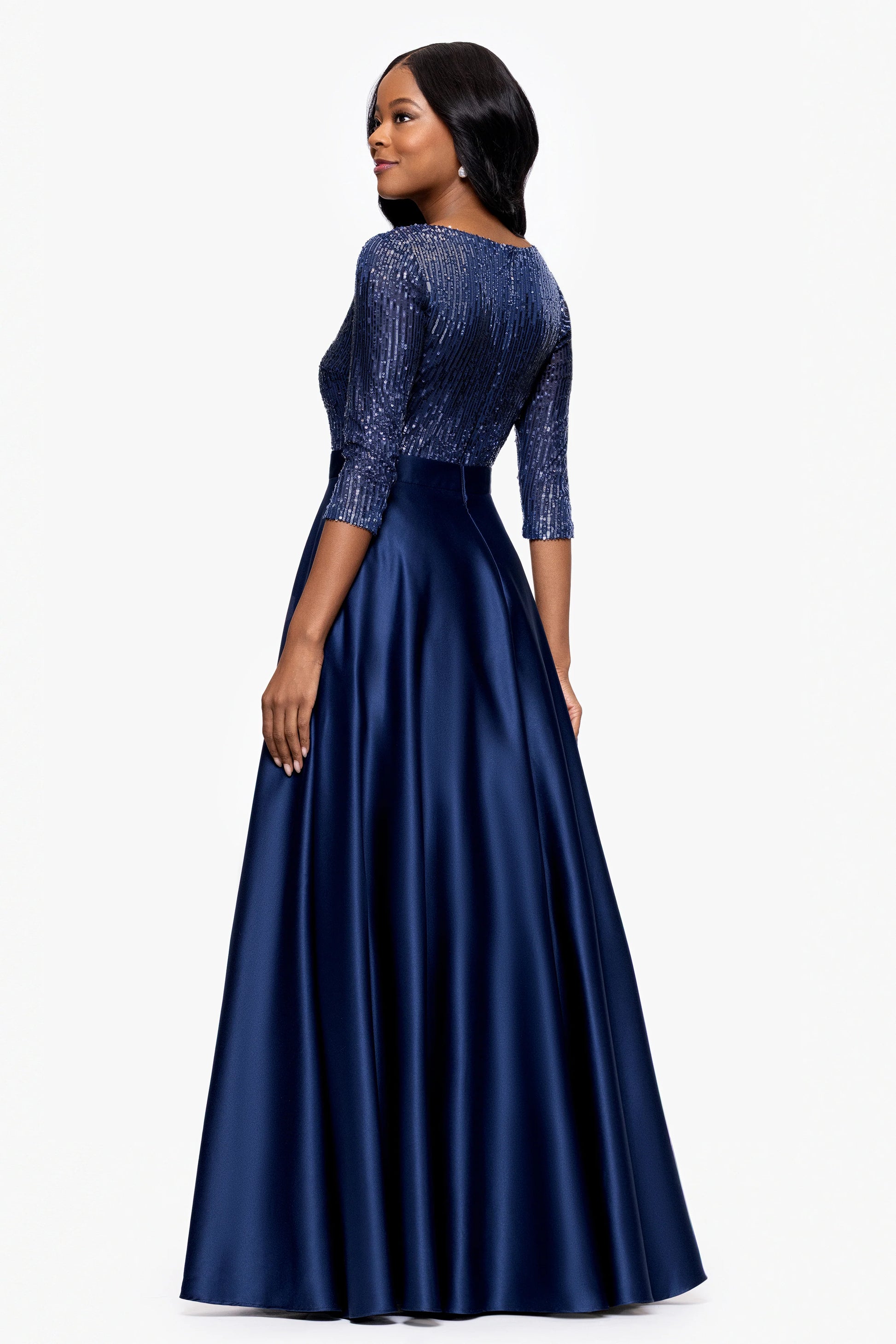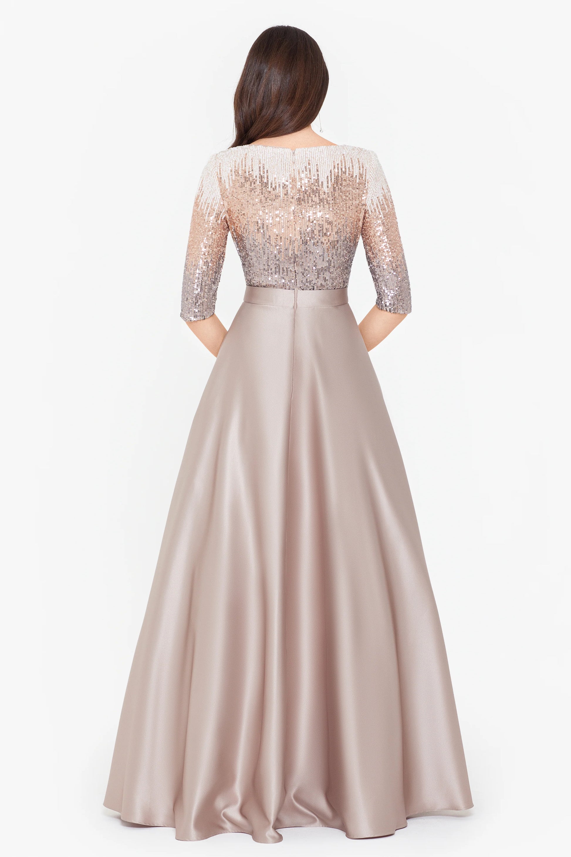 The "Quinn" Embellished Sequin Ballgown is a breathtaking ensemble that exudes timeless elegance and opulence. Adorned with shimmering sequins and intricate embellishments throughout, this gown sparkles with every movement, ensuring you command attention at any formal event or gala. Its voluminous ballgown silhouette creates a regal and majestic presence, making the "Quinn" gown a perfect choice for those seeking to make a grand entrance.