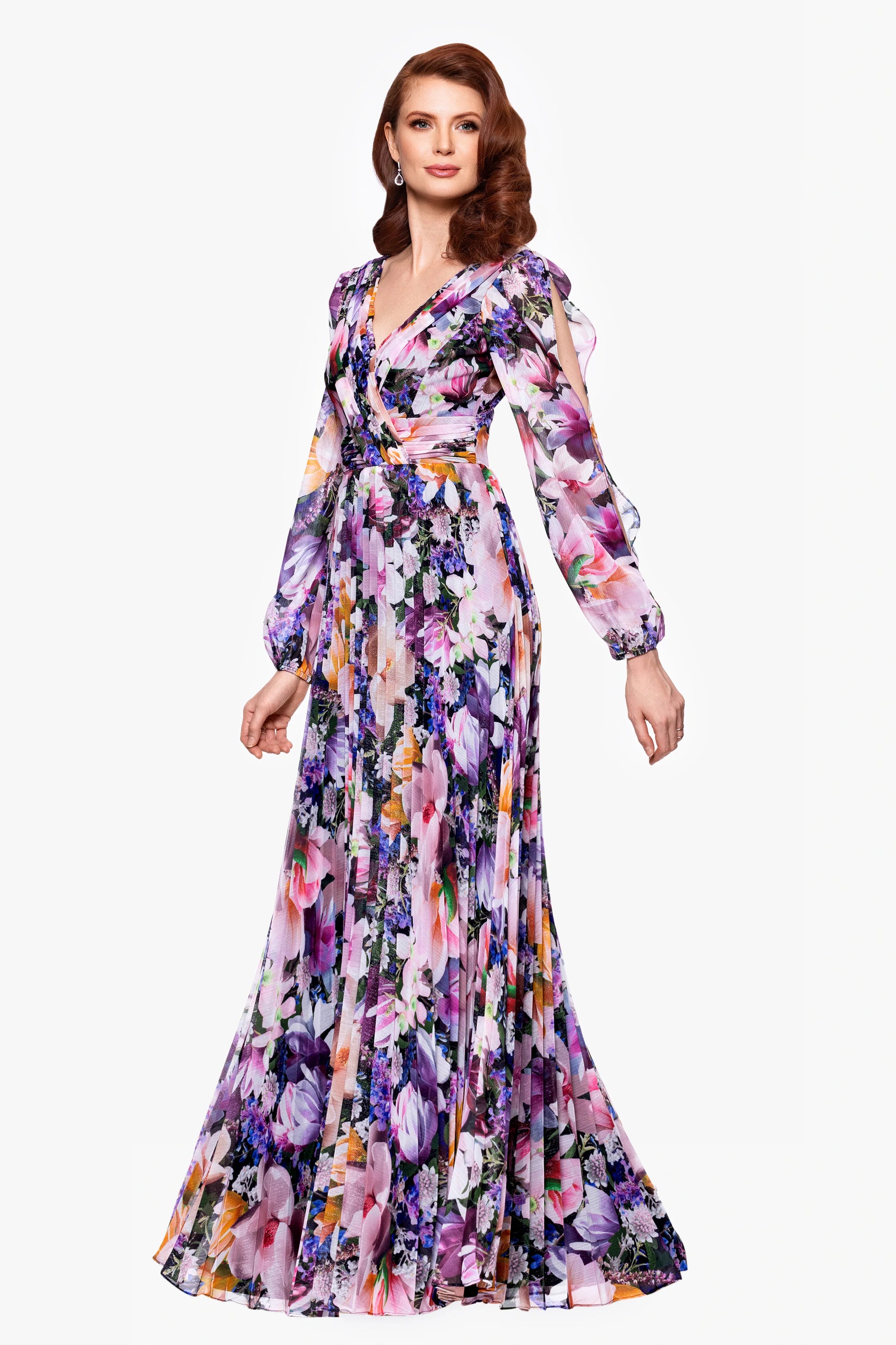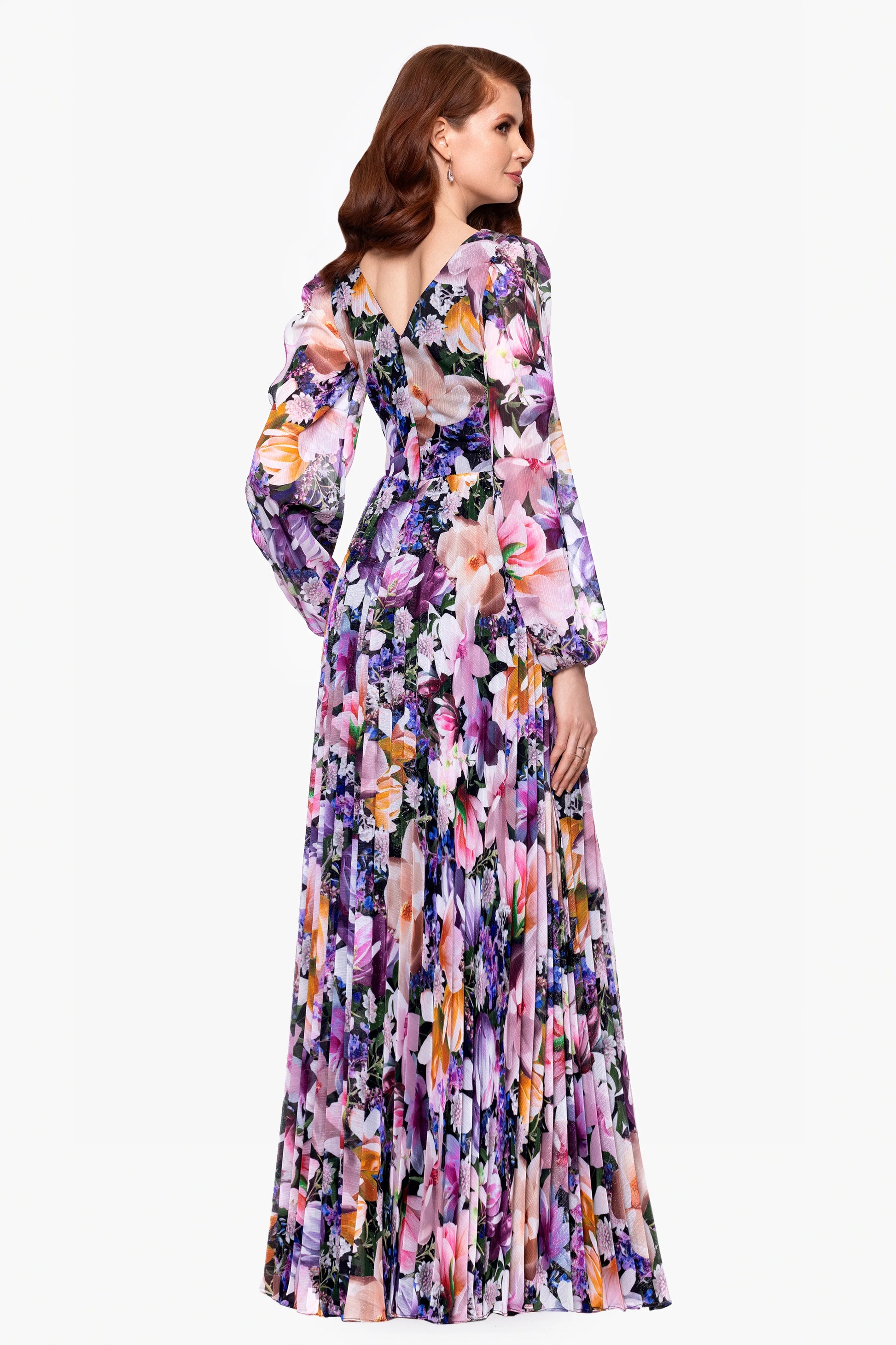 "Sammy" Chiffon Long Sleeve Floor Length Dress