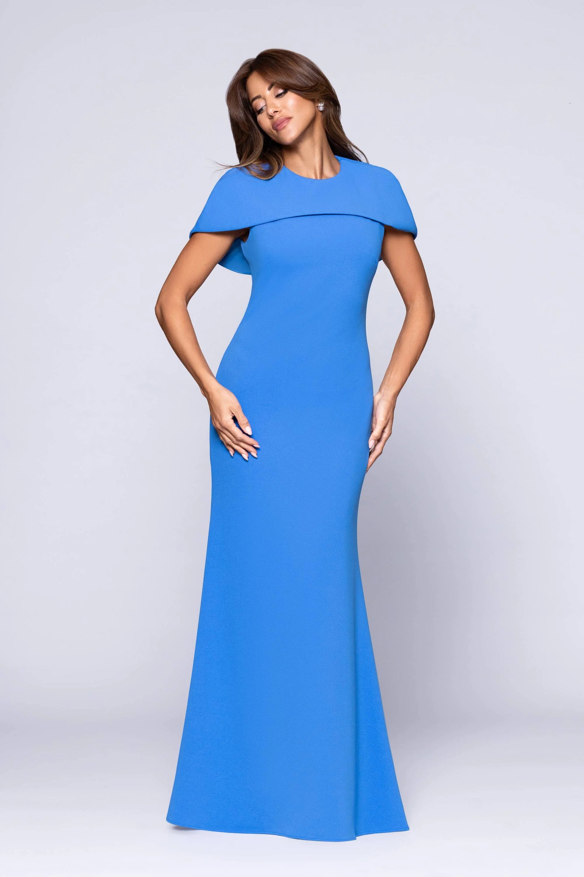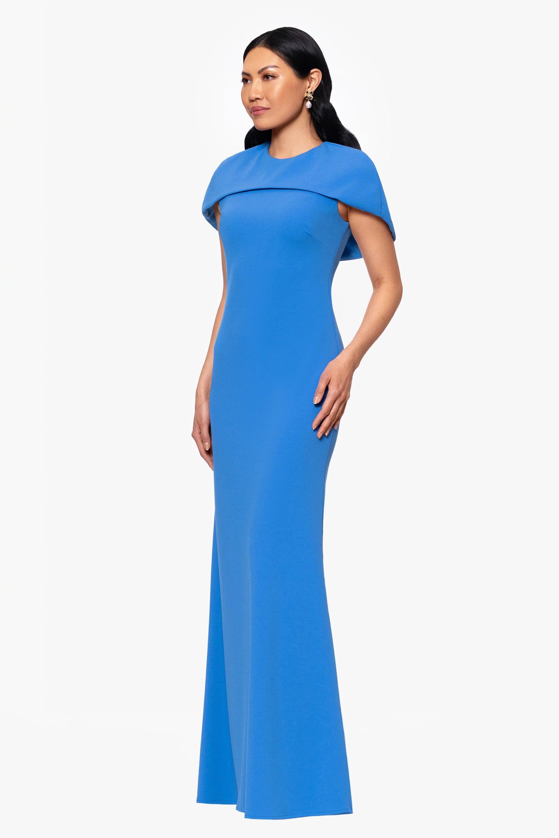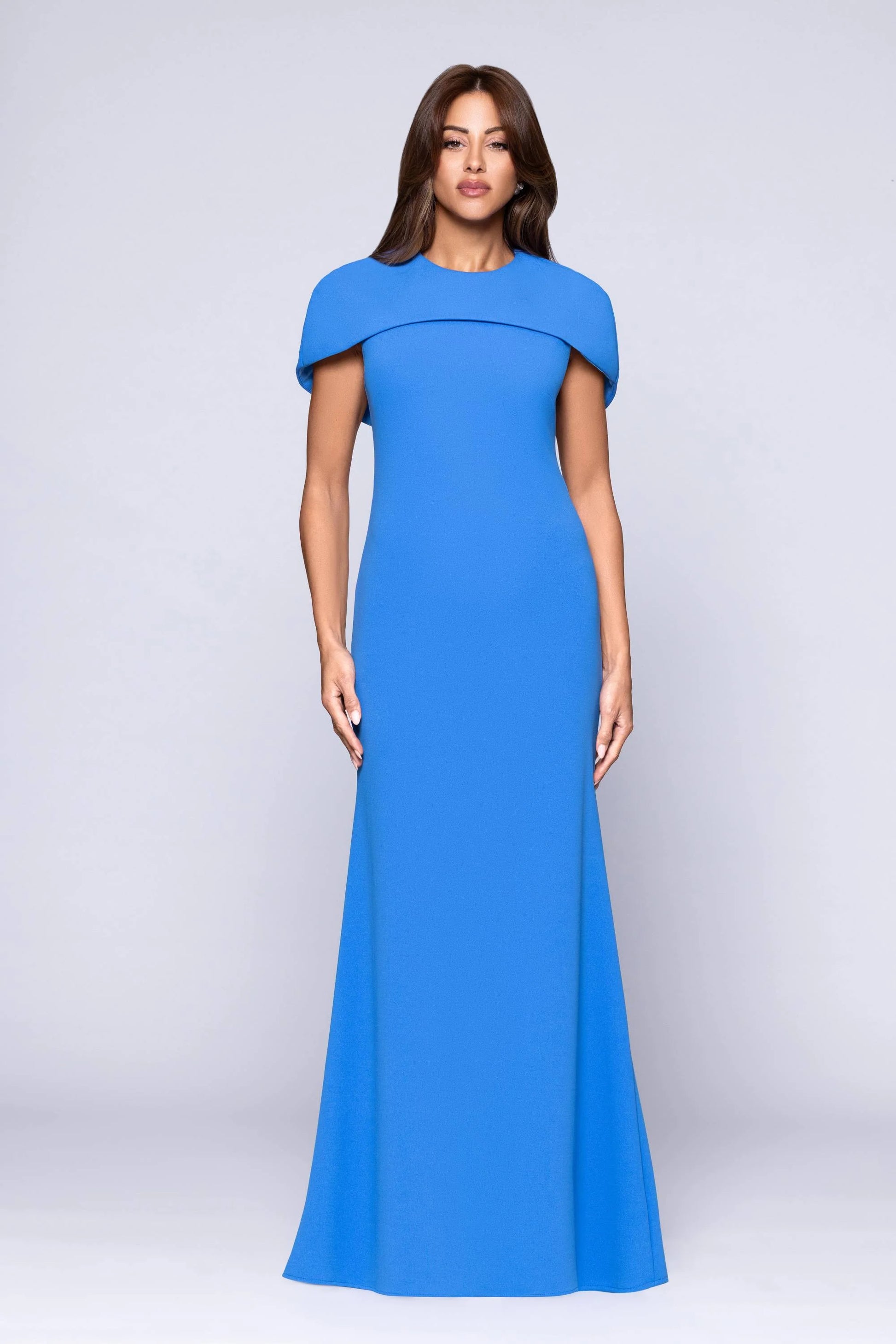 "Shanice" Scuba Crepe Short Cape Floor Length Dress