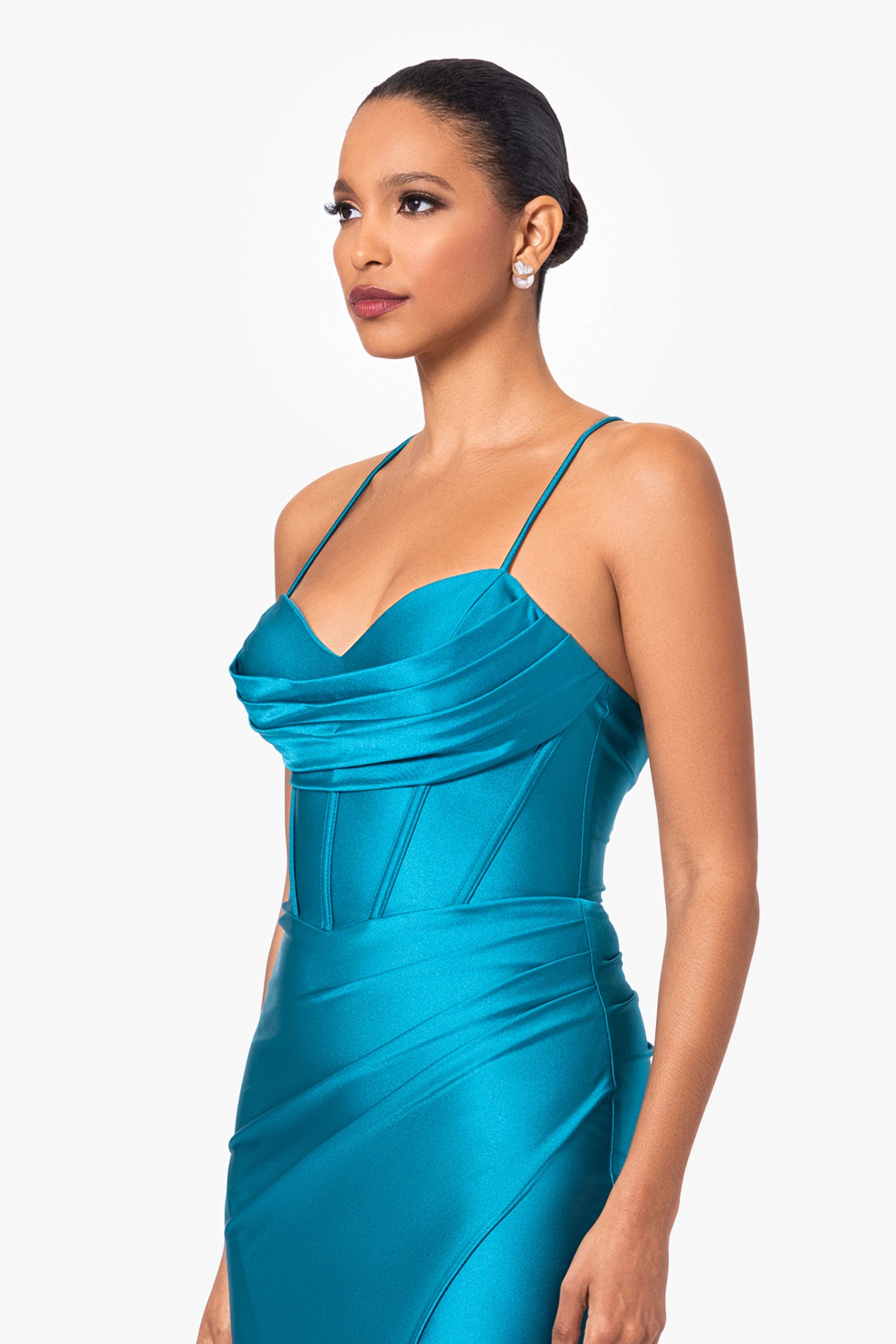 "Talia" Long Sateen Corset Lace Up Back Dress