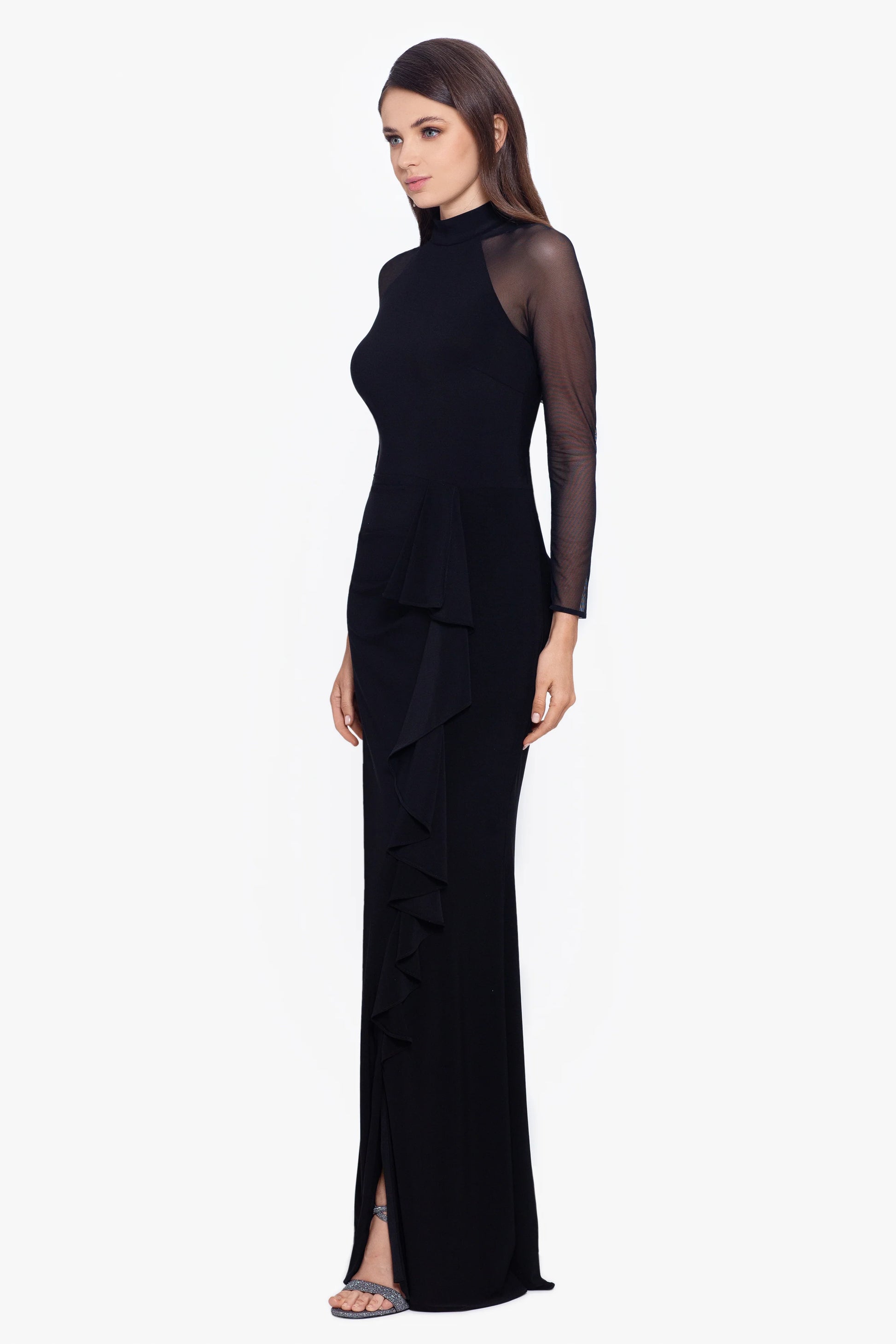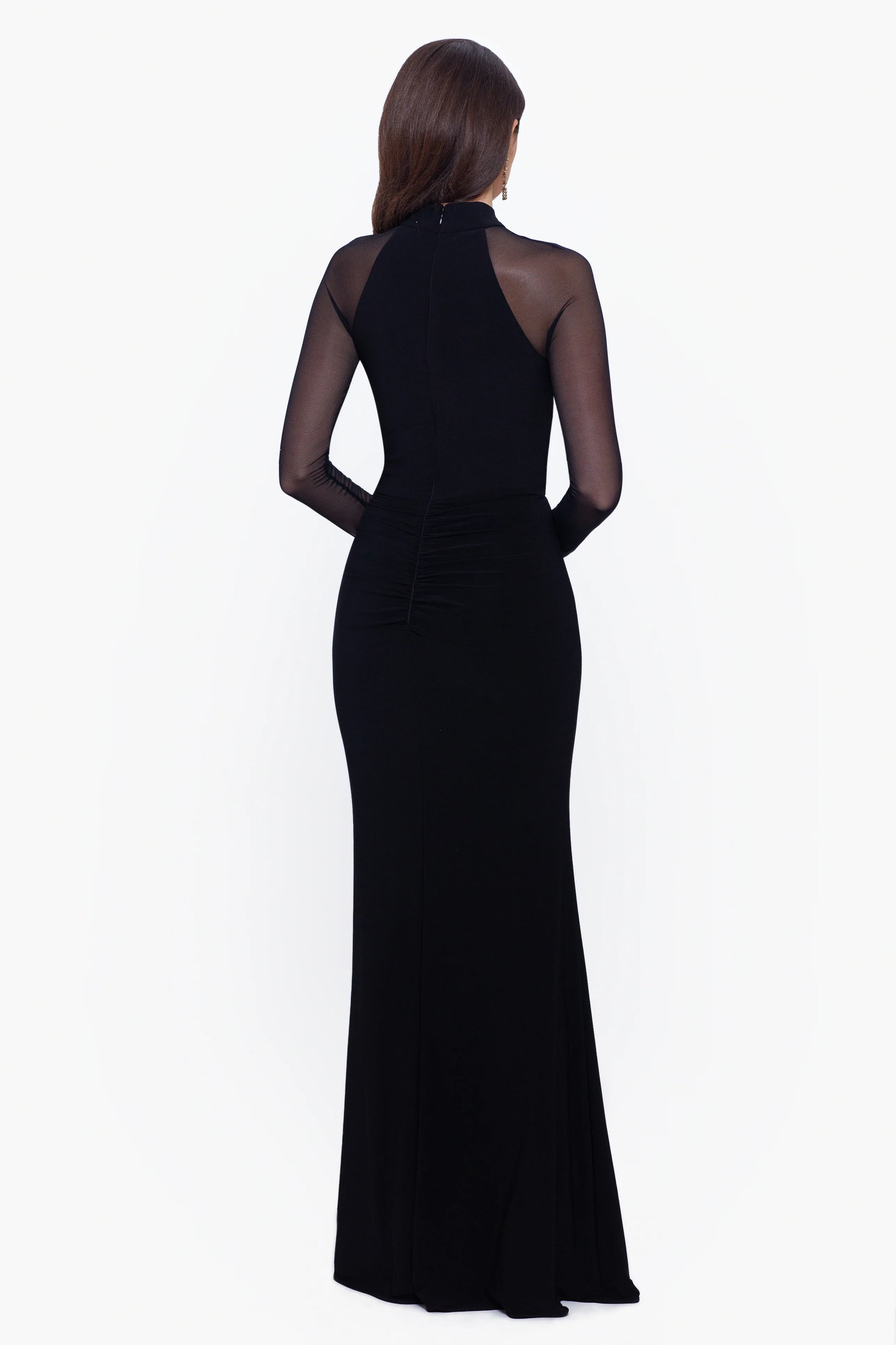 "Valerie" Long Mock Neck Mesh Long Sleeve Dress